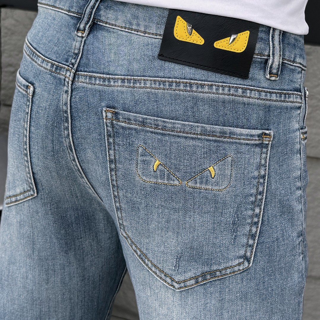 FENDI芬迪 2025ss春夏新款男士牛仔裤 精选进口丹宁牛仔面料 重工环保洗水 手感柔和 兼备耐磨性 版型小直筒 微弹力显瘦修身,细节完美,五金辅料精选高等品质,做工精细,绝非凡品,码数:28-38,隔天出货