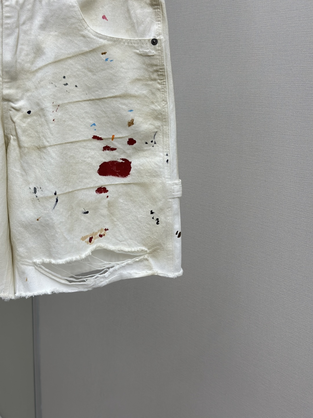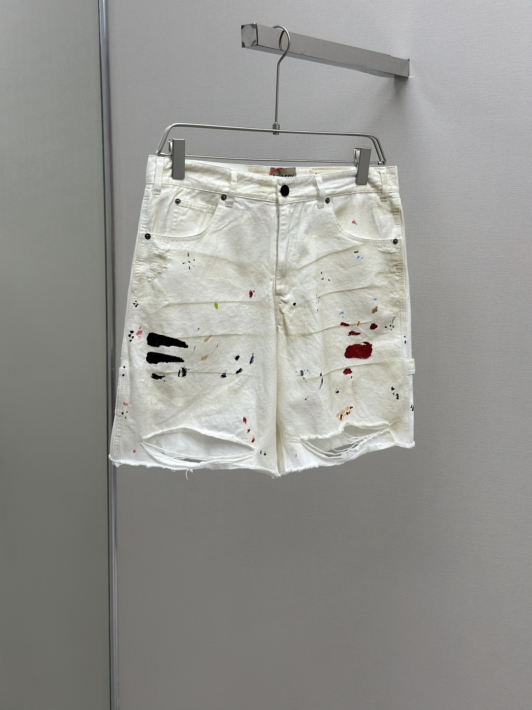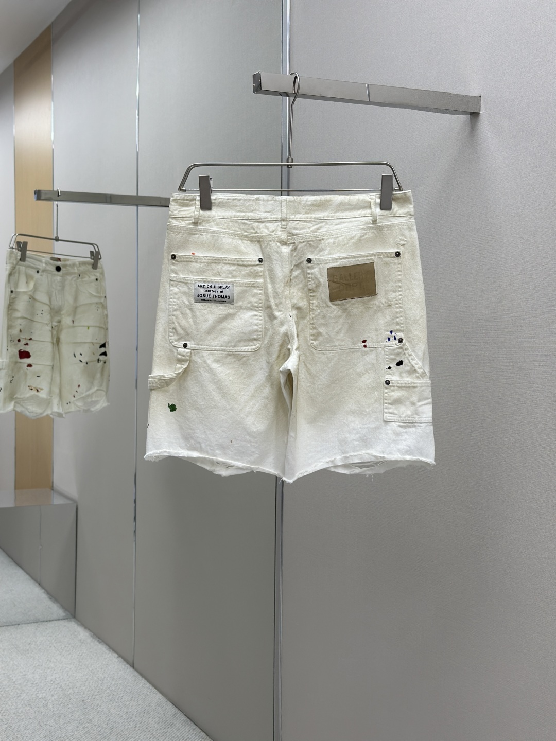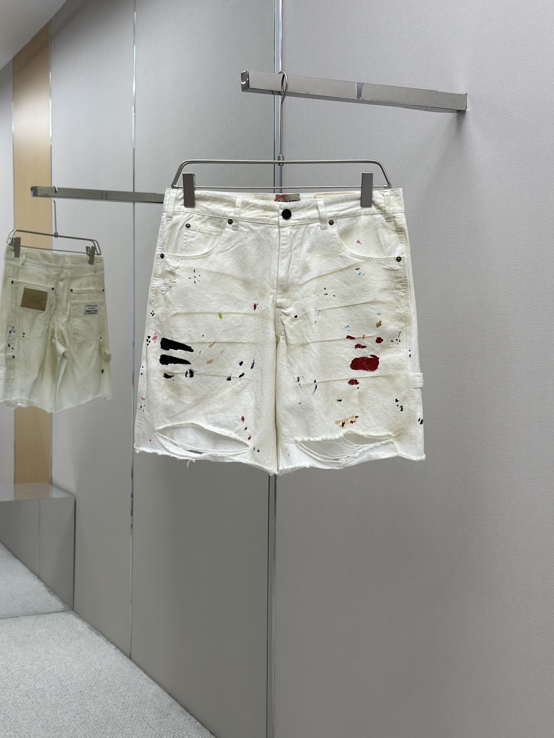 GALLERY DEPT. FLEA CARPENTER SHORTS 泼墨刀割泥染牛仔短裤,纯手工丙烯泼墨涂鸦,重洗水泥染做旧,刀割破洞猫须磨烂,定制全套带logo辅料 颜色:做旧白色 尺码:S M L XL
