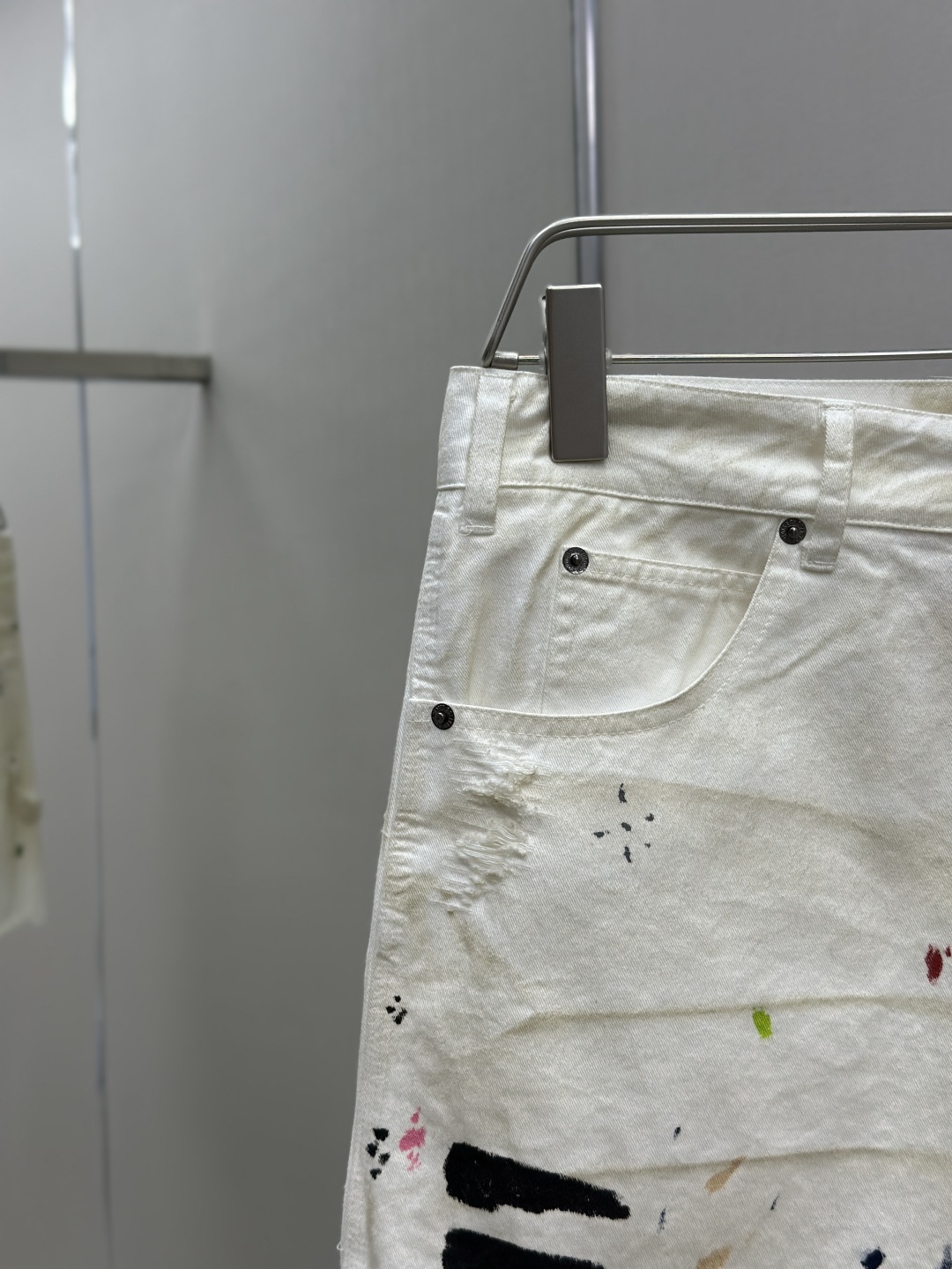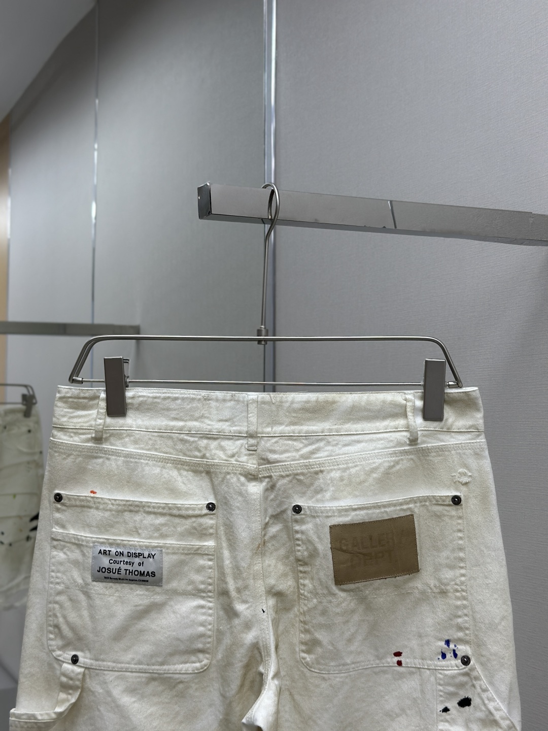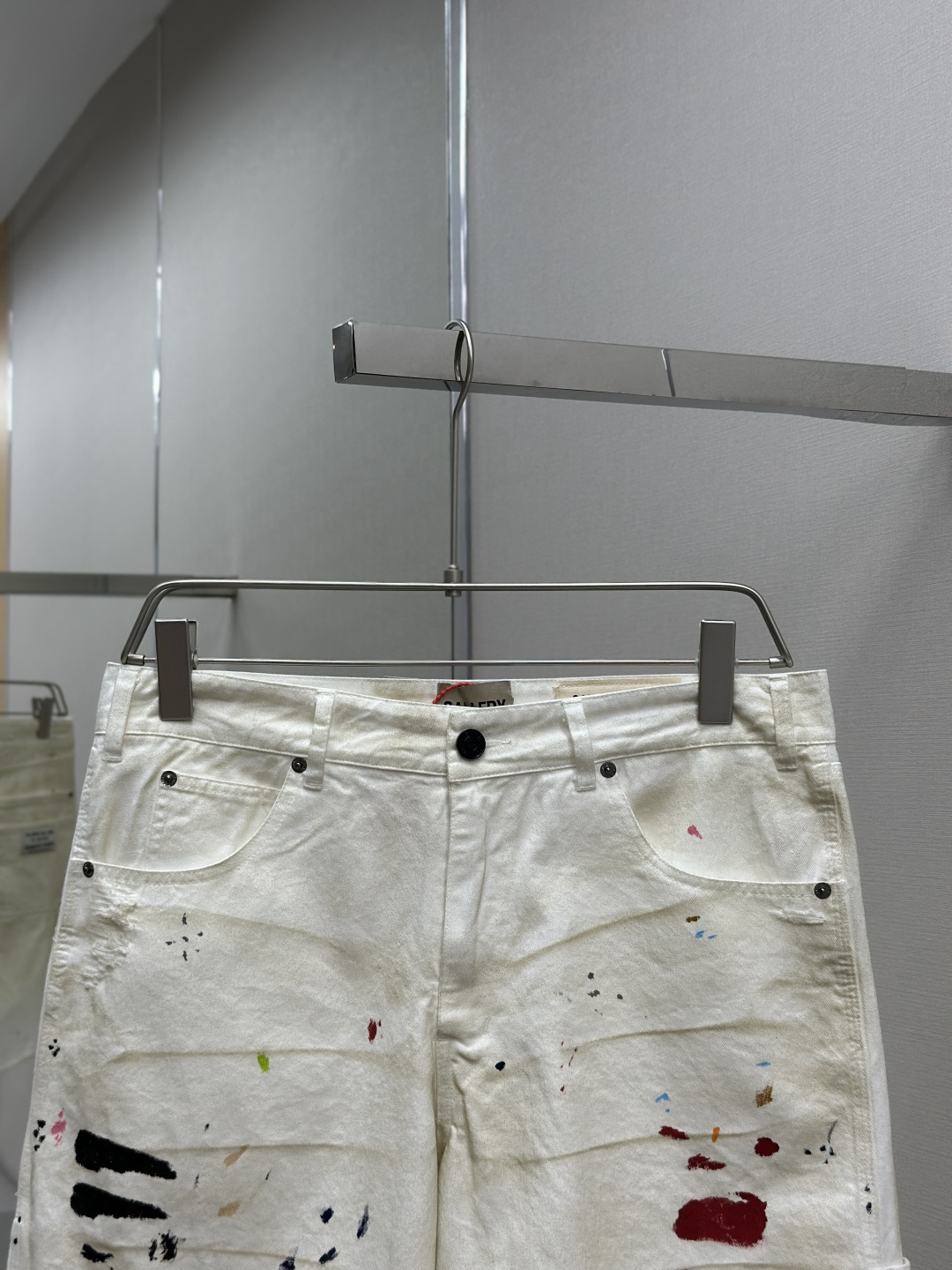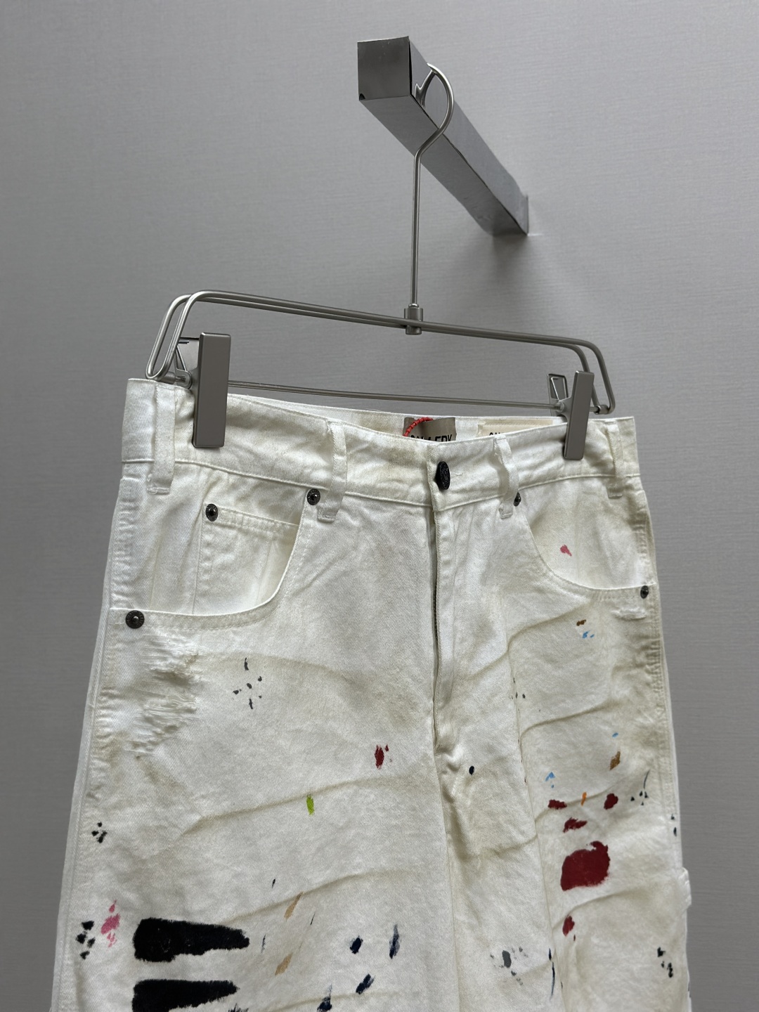 GALLERY DEPT. FLEA CARPENTER SHORTS 泼墨刀割泥染牛仔短裤,纯手工丙烯泼墨涂鸦,重洗水泥染做旧,刀割破洞猫须磨烂,定制全套带logo辅料 颜色:做旧白色 尺码:S M L XL