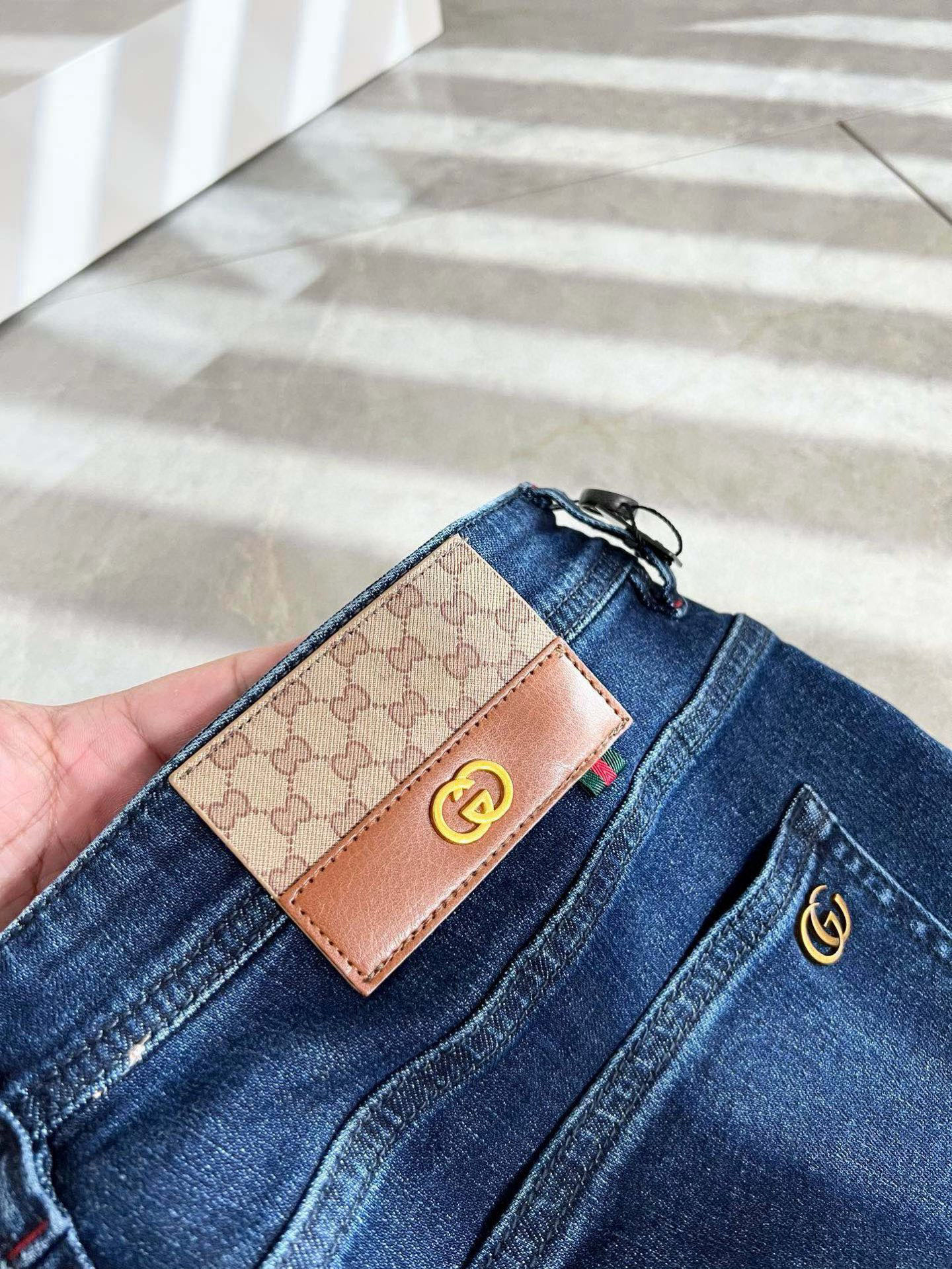 Guc*古奇 2025春夏新品男士高端休闲百搭四季通勤修身剪裁牛仔裤!对于粉丝来说,这样大气的经典设计足矣一眼种草,是今年所有牛仔裤当中最帅的一个系列,我只需要看一眼就知道,这绝对会是一个引起轰动的爆款,而且全网风靡,经典的修身立体剪裁版型打造,配置了最新的logo图案腰牌工艺设计!极具代表性腰牌修饰!简单轻松的彰显出品牌魅力所在,自然而然的呈现规格,档次,时髦以及新潮效果,搭配性能满分,轻松穿出高级感与高端效果!顶级的进口日本洗水牛仔棉质打造,并舒适透气感满分,且垂感自然,适合一年四季的穿搭所需!!此款牛仔裤采用了立体裁剪小直筒版型打造,其单配魔力与实穿性是无可厚非的,不管你是日常穿搭还是高街出镜都是不二之选,超具魅力!更是彰显了地地道道的的BUR原味,同时也是完美的展现了其规格和段位所在!很显然,这是一款绝对要收的重磅好货,此款你都必须要收,极力推荐的好货!尺码:30-40 ️37 39