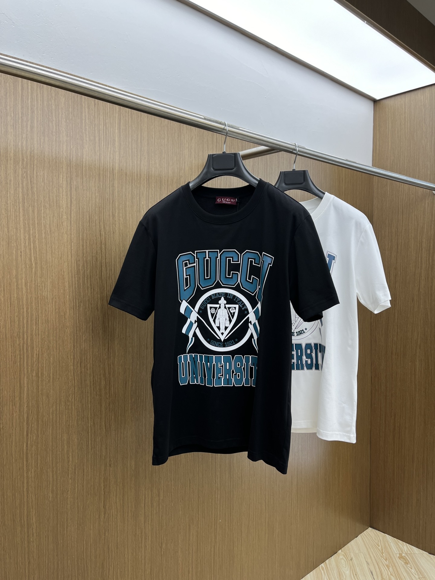 Guc 高端定制 25春夏新品印花圆领打底短袖T恤,正面胸前缀饰品牌字母设计,打造男士基本款单品,为男士衣橱注入新意。采用柔软棉质双面针织长绒棉+莫代尔棉面料制成,面料细腻、柔感垂顺、棉感十足、bmp上身舒适度极佳;黑色 白色 尺码:M-3XL