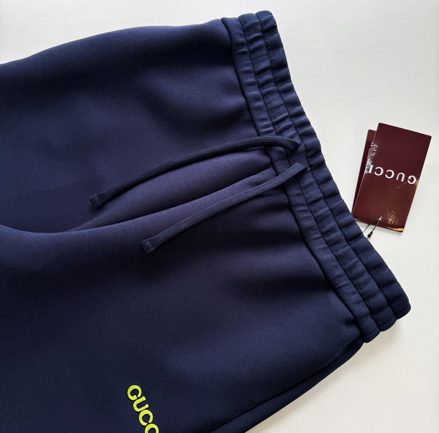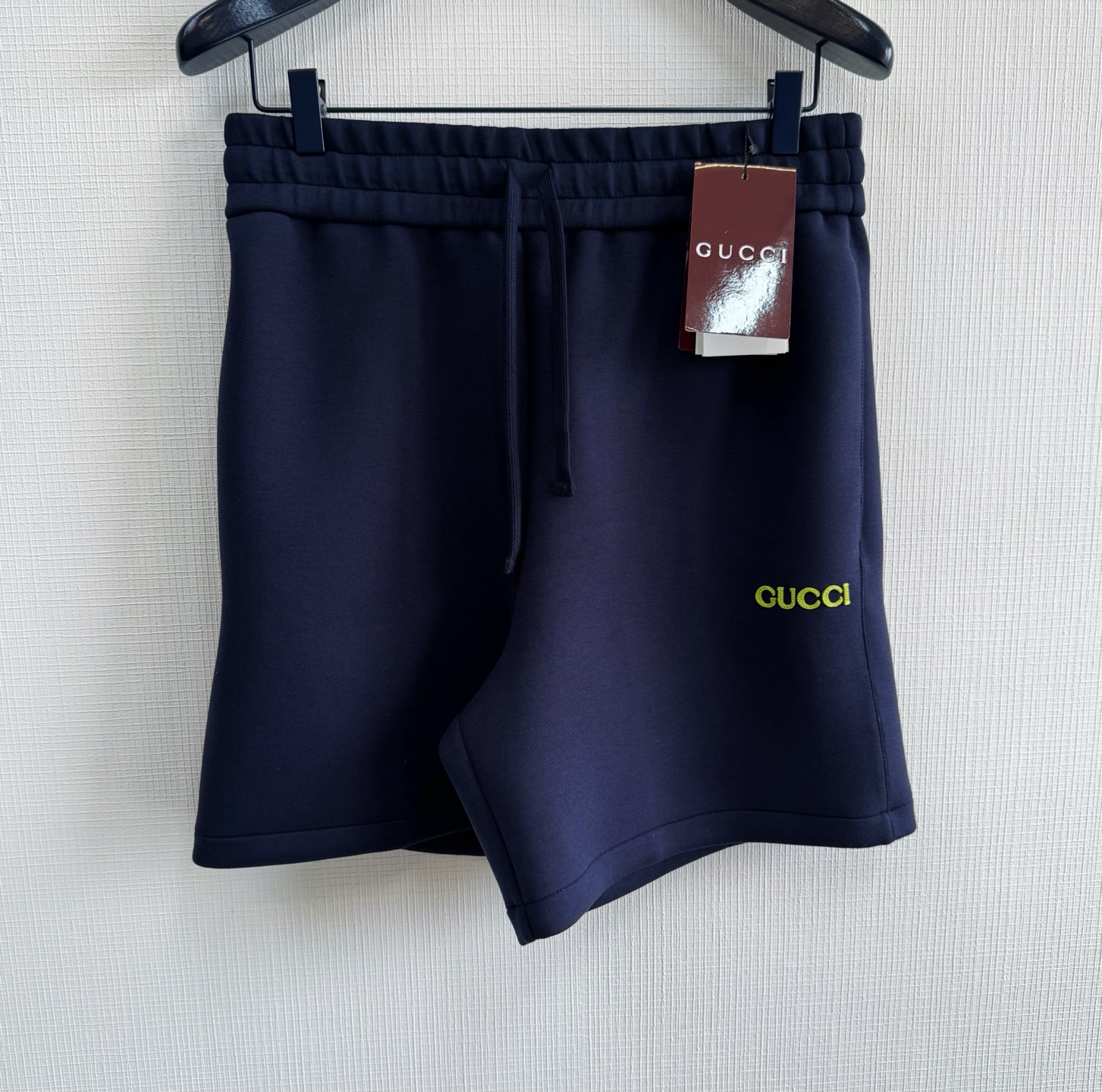 guc 25ss字母章仔刺绣短裤 太空棉95%再生黏胶纤维与5%氨纶,黏胶纤维结构具有天然的亲水性,可快速吸收并蒸发汗液。 LOGO刺绣贴饰采用0.3毫米超细聚酯绣线,经12小时激光切割定型工艺打造浮雕质感。每片贴饰经过5道抗皱处理,确保水洗后仍保持原有形态。 通过特殊纺织结构,在内部构建可控空气滞留空间,每立方厘米可锁住0.8-1.2ml静止空气。梯度密度结构引导湿气单向排出Size:s/m/l/xl