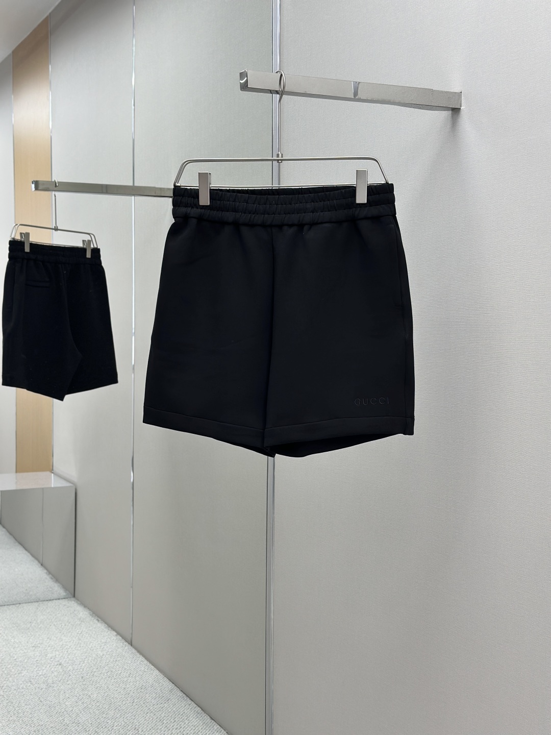 GUCC新款经典绣花针织短裤,这款短裤针织面料面料制作,腰头有松紧腰绳,前副配两个口袋配有后口袋配有拉链设计,经典腰绳搭配有刻有G家英文字母点缀,同时裤边绣有G家独特的英文绣花字母,颜色独特,款式新颖,上身舒适,属于衣橱的必备单品,强烈推荐! 颜色:黑色 豆绿色 码数:46 48 50 52