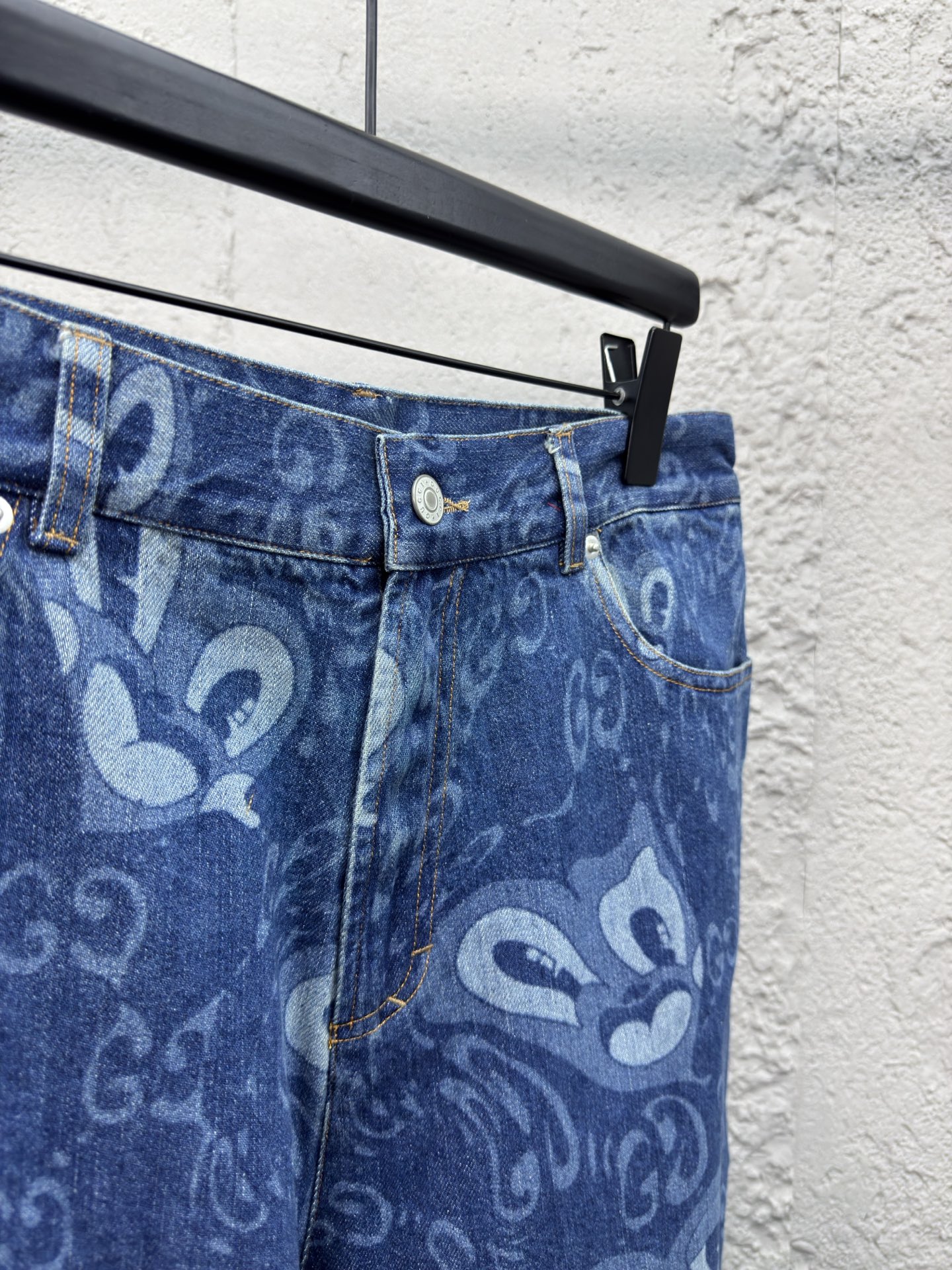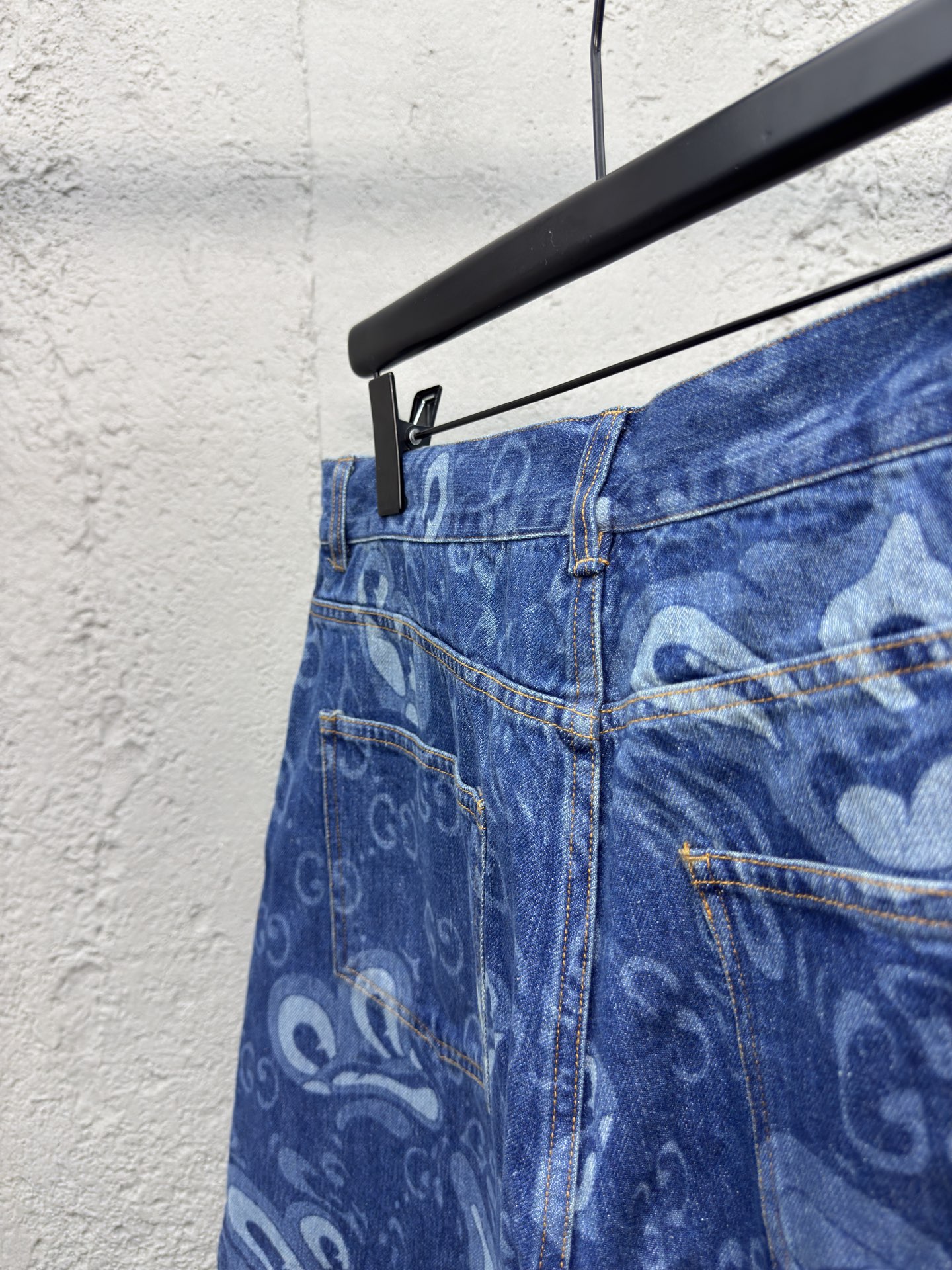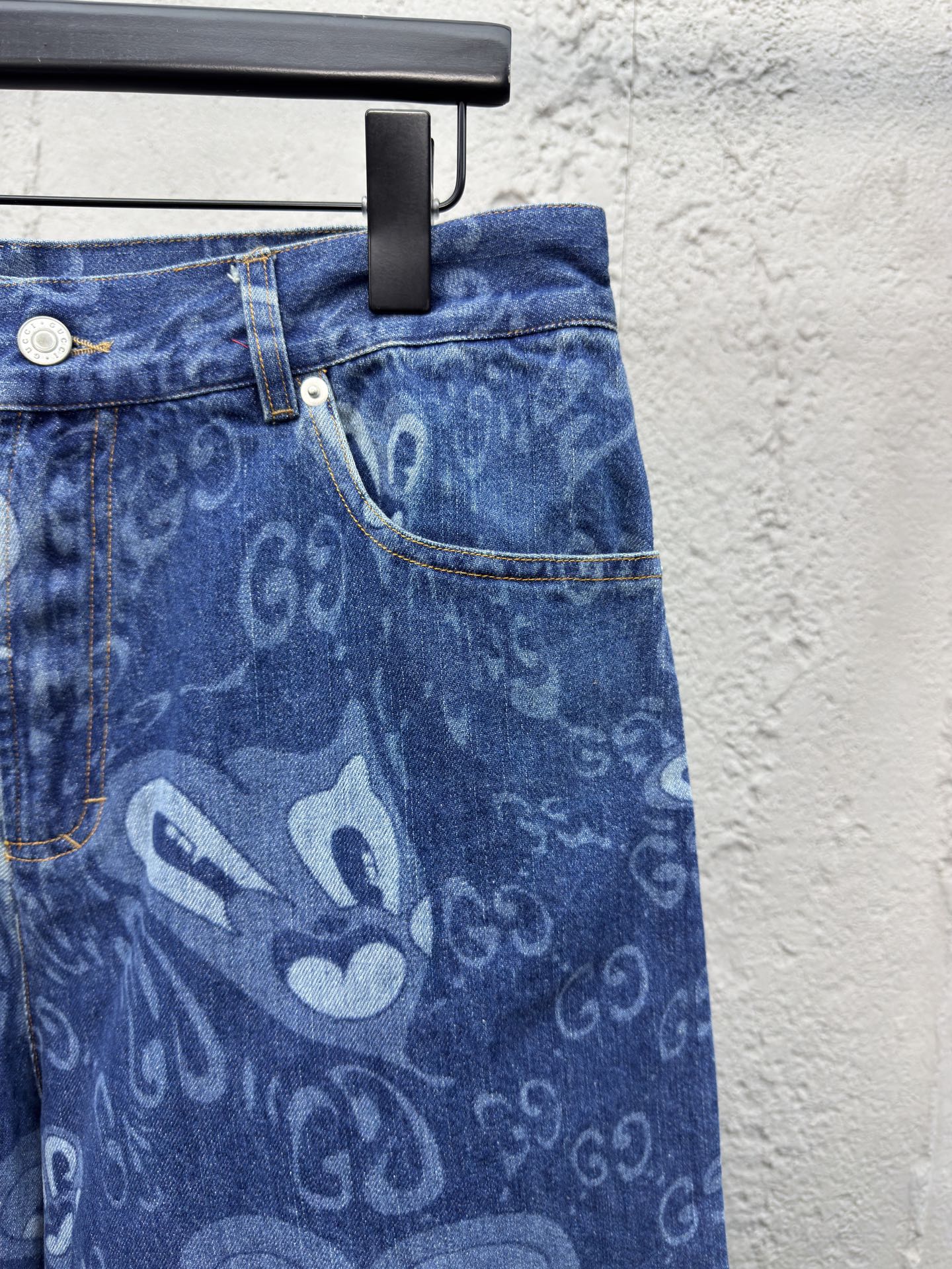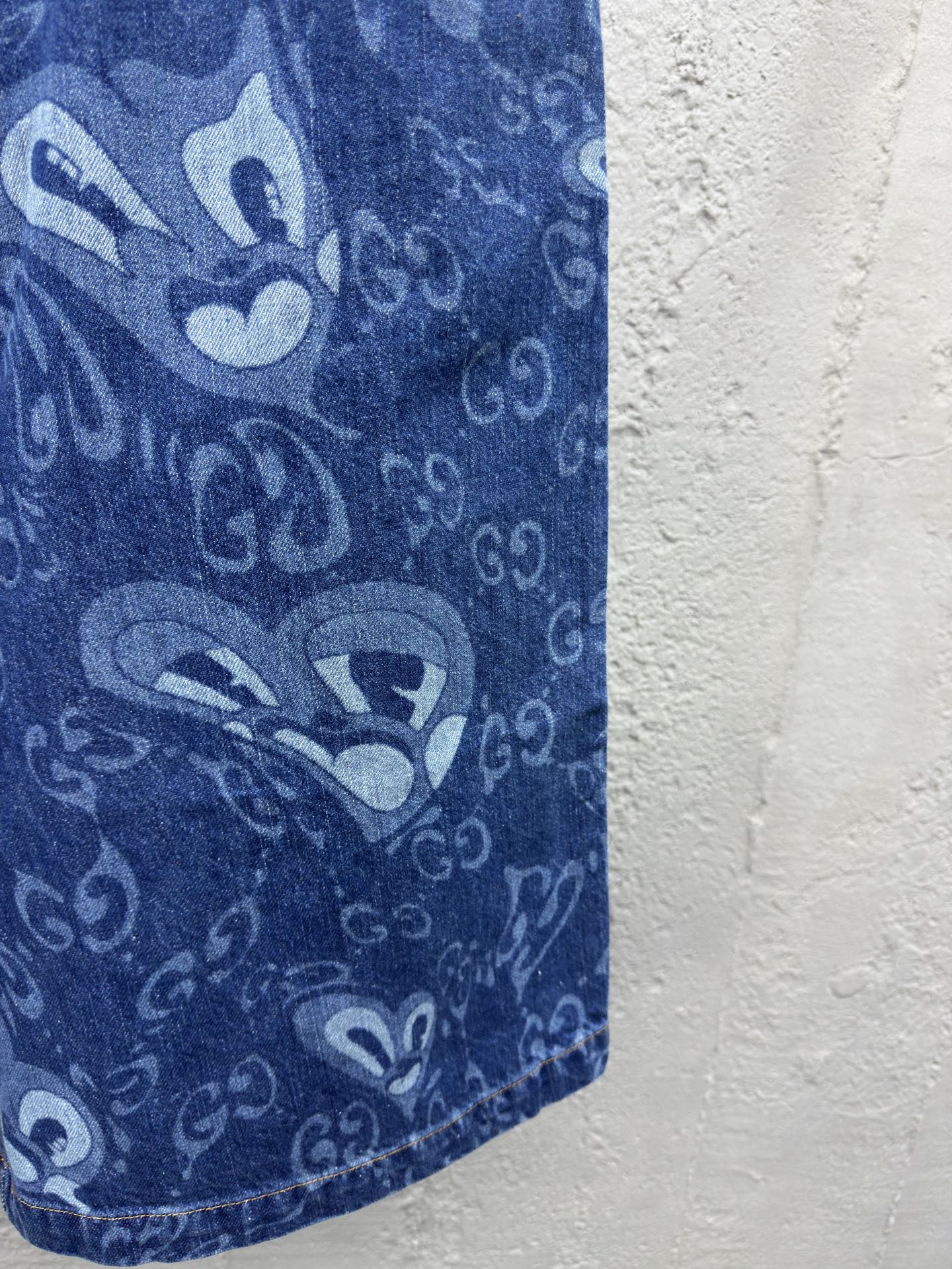 GUCCI 兔耳图案牛仔短裤 工艺说明:定织定染竹节 兔耳朵图案提花面料,红外线定位裁剪 全部对格对位,成衣水洗酵磨工艺,定制原版黄铜金属链条、工字扣、铆钉,专车全麦夹工艺,定制原版真皮皮标,整体走线平直细腻,面料舒适柔软,颜色一致无色差 能与同款搭配营造时尚造型,驾驭各种场合,定制辅料,三标齐全,男女同款! ⚠️颜色:蓝色 ⚠️Size:46/48/50/52