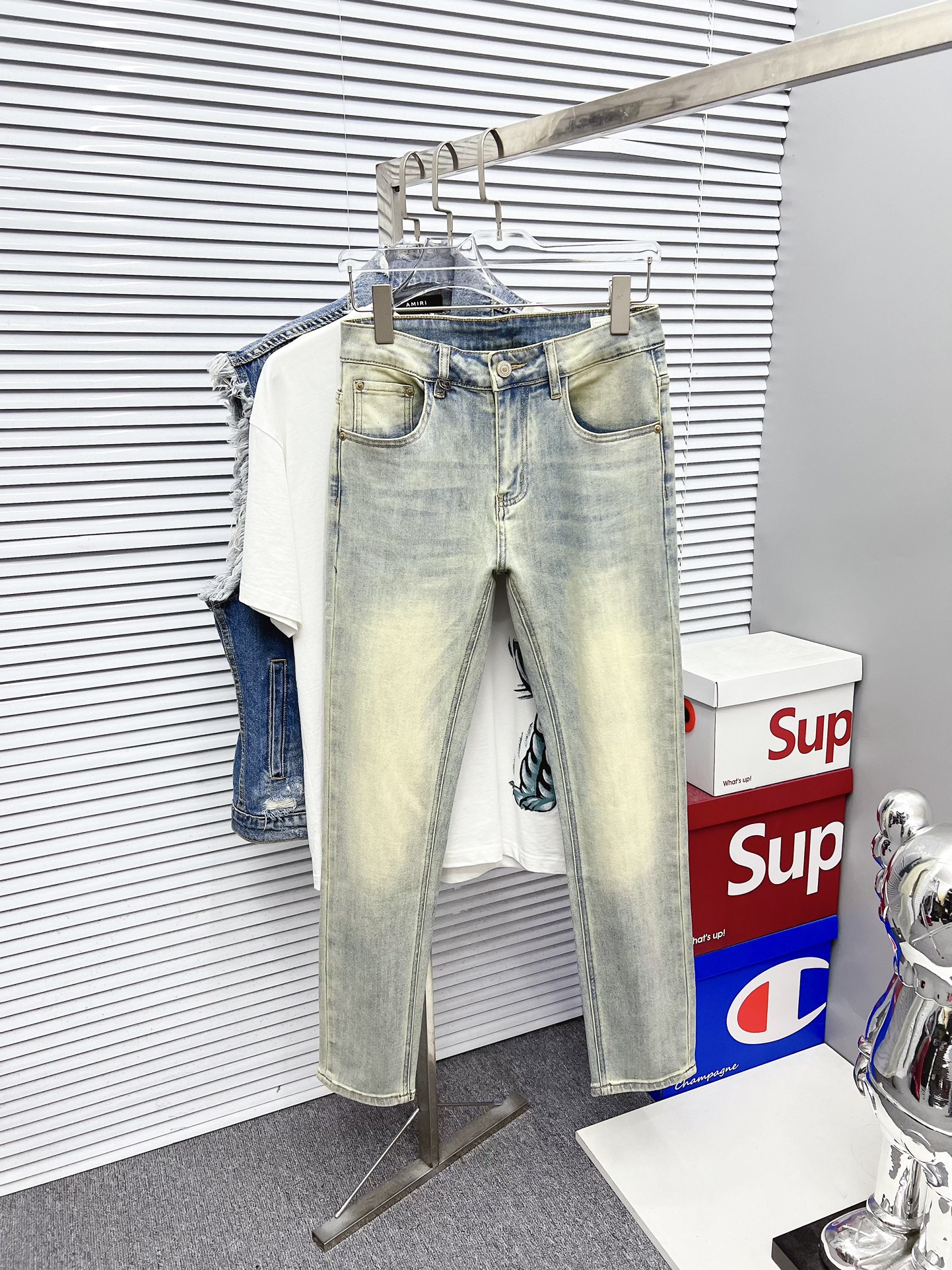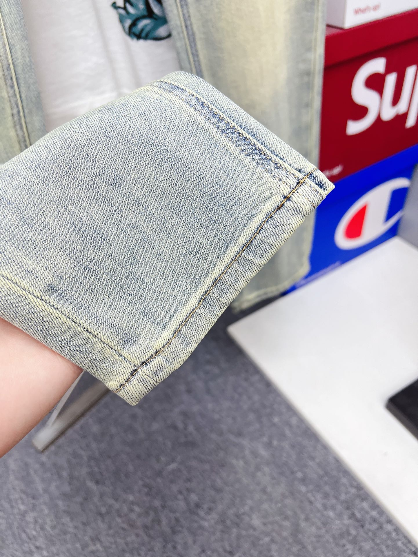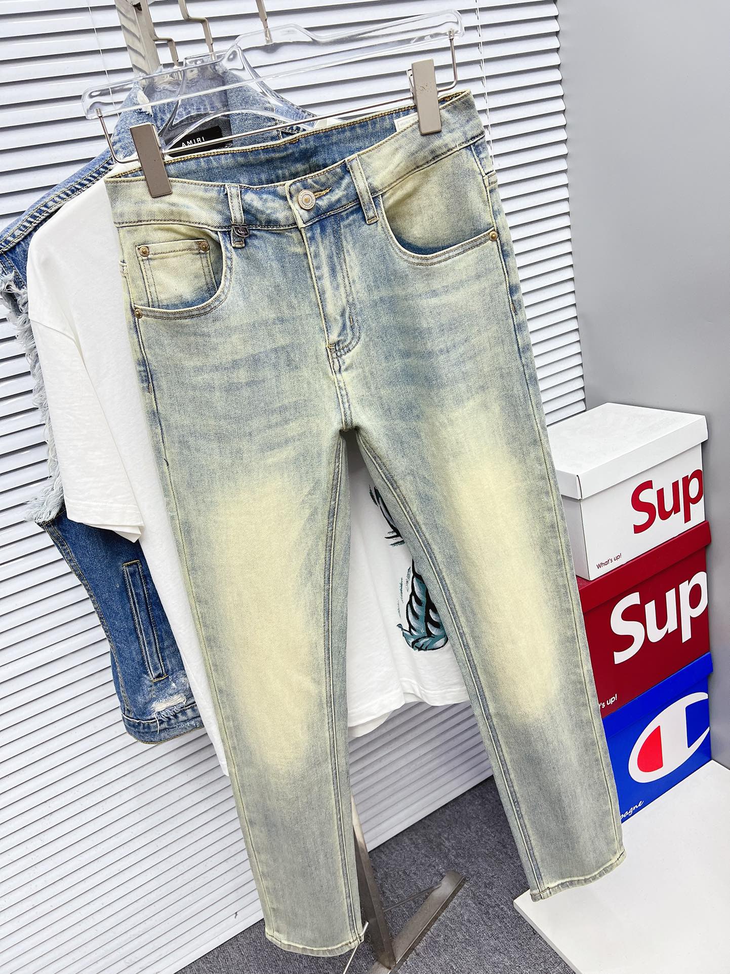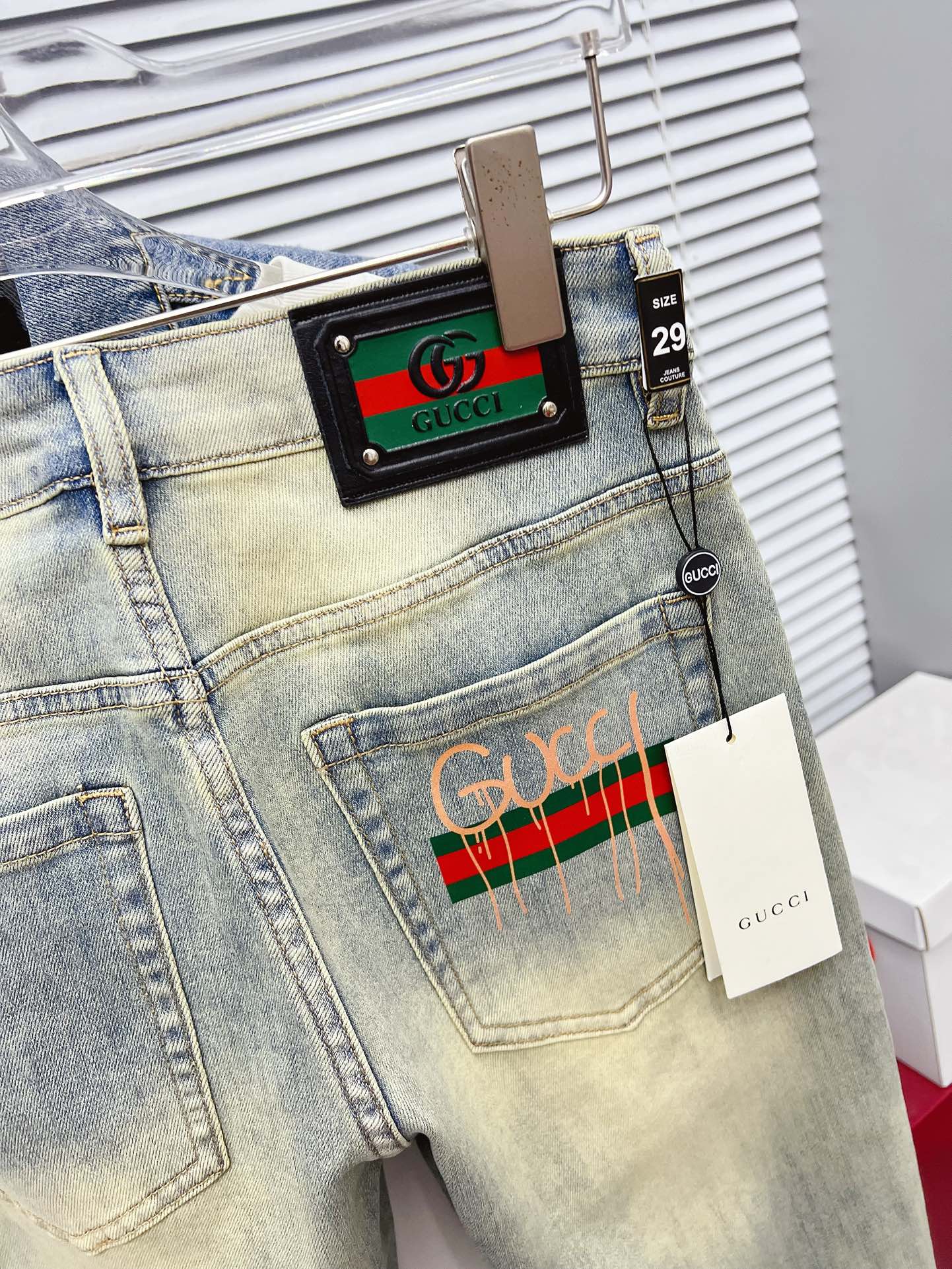 GUCCI 古奇 男士丹宁牛仔裤,官宣画册海报穿搭款! 客供高级进口的丹宁原色面料,特选日本冈山纯正13oz 盎司牛仔布料,重磅环保植物酵素水洗工艺,肌理有着淡淡的复古色彩,相当漂亮,极符合秋冬的配色,面料经过水洗后柔软细腻,但筋骨感极强,且略带弹力,提供了绝佳的舒适体验,通身无任何工艺元素破坏,保留了最纯粹的丹宁本色!通身细节完美如斯,精湛且考究,最新的腰部皮标彰显了品牌特质,五金配件、皮标、走线无不体现出匠心工艺!版型剪裁完美,提臀修身效果绝佳,可轻松横扫衣橱任何的上装搭配,兼容性广泛,满足于日常各种穿搭,上身型款十足,于品质控及1V迷控者必入型裤装!