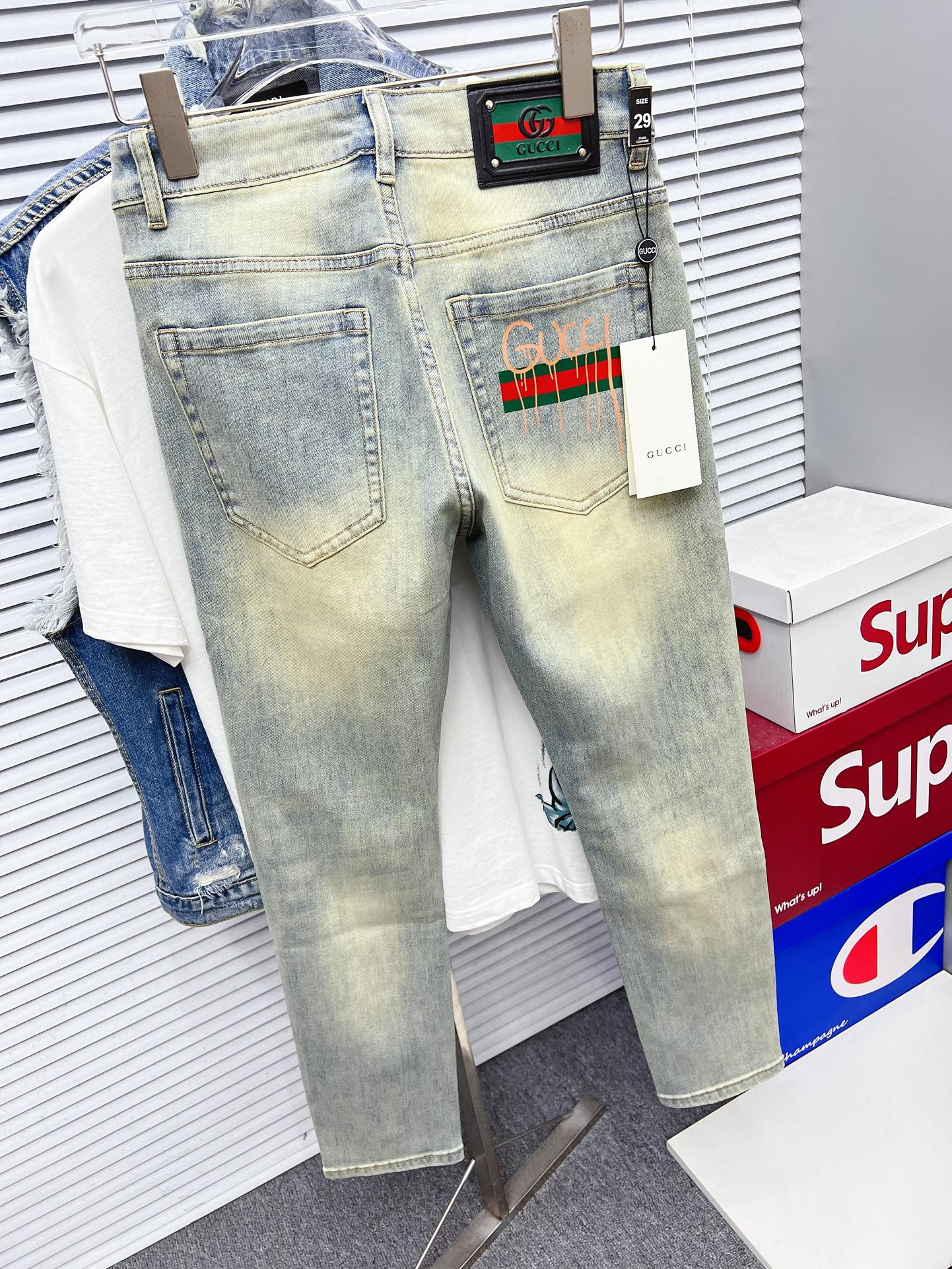 GUCCI古奇男士丹宁牛仔裤官