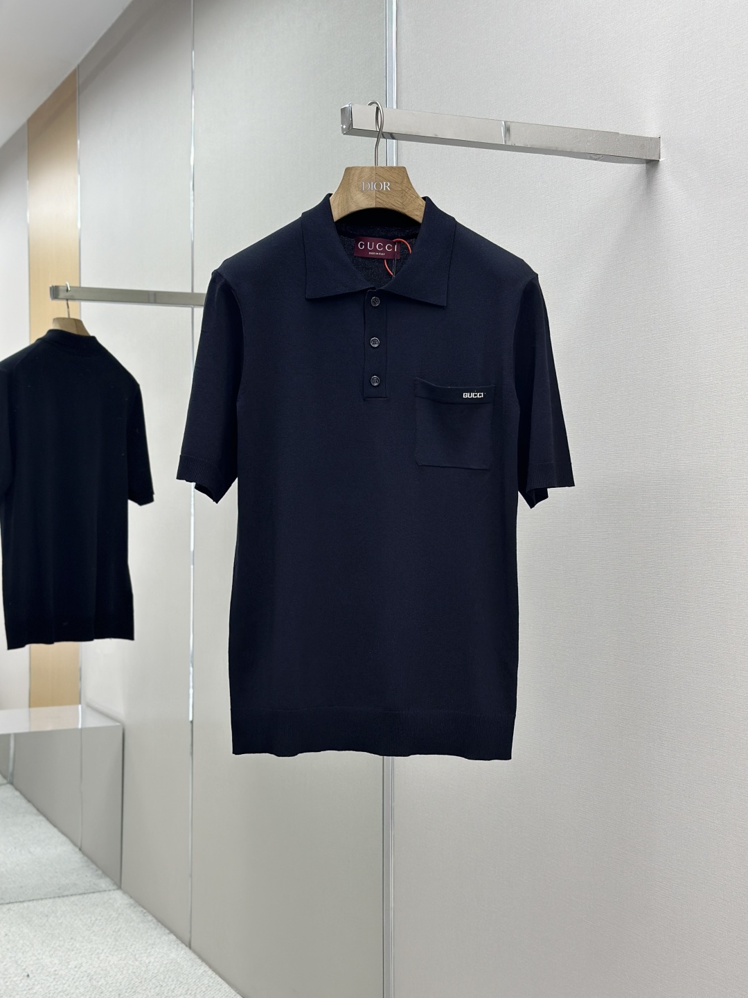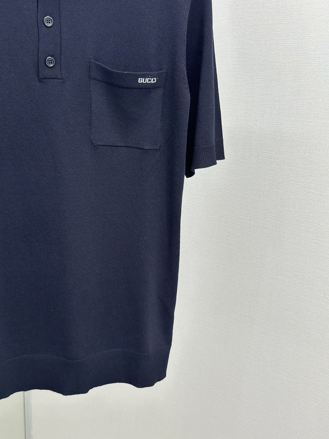 定制冰漾超细60支针织绸,胸前口袋饰以熠熠生辉的Gucci嵌花巧妙点缀,以标识毛衣和Polo衫结合为升华。