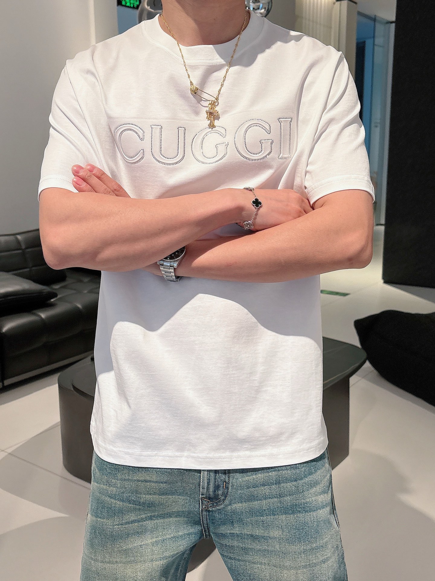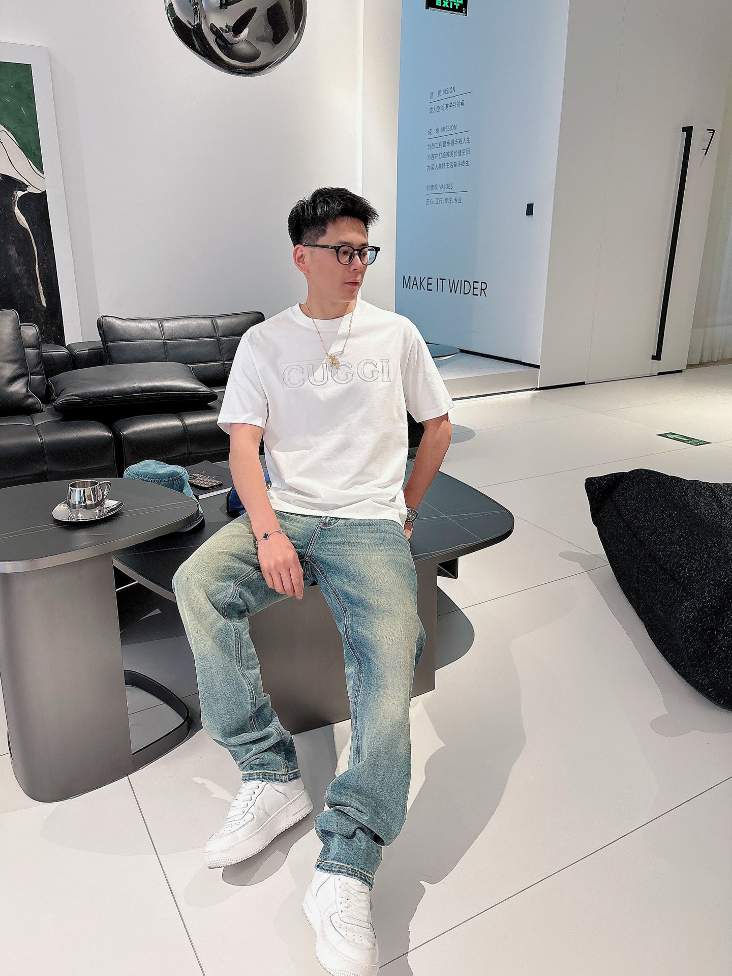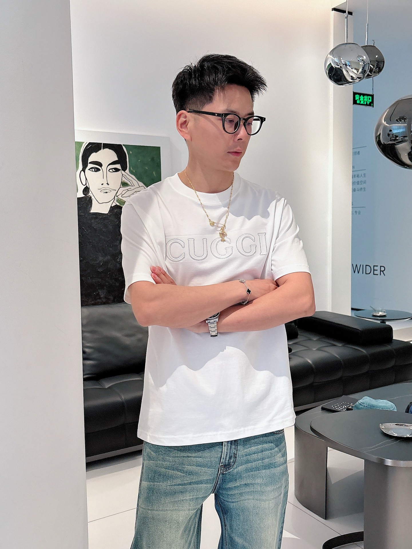 Gucci新品2025ss早春系列浮雕压花➕烫钻字母短袖 T 桖 选用客供定制针织100%纯棉面打造,面料手感细腻,厚实有质感的纯棉布高密度的机织工艺,如棉絮般柔紧致舒适