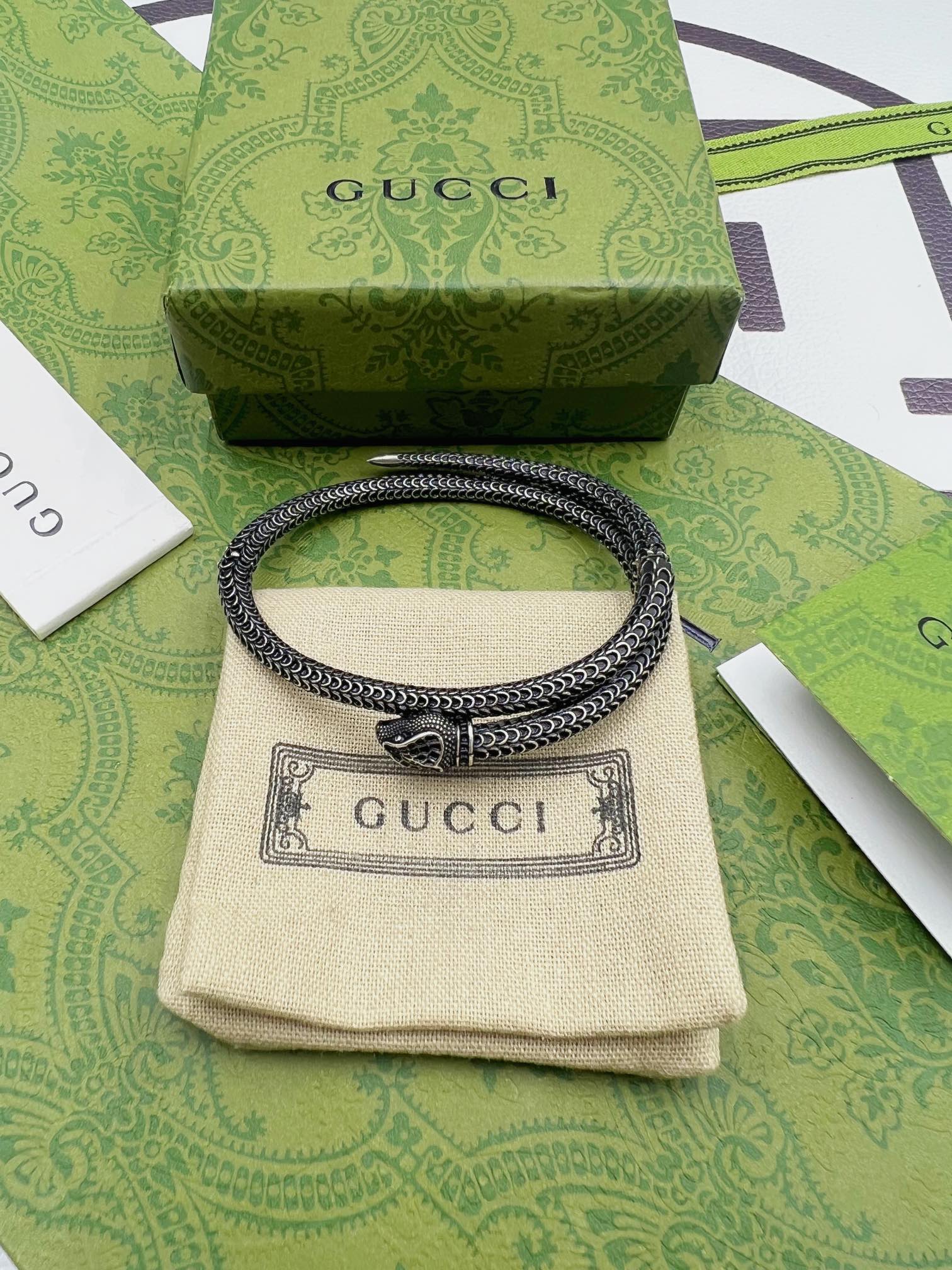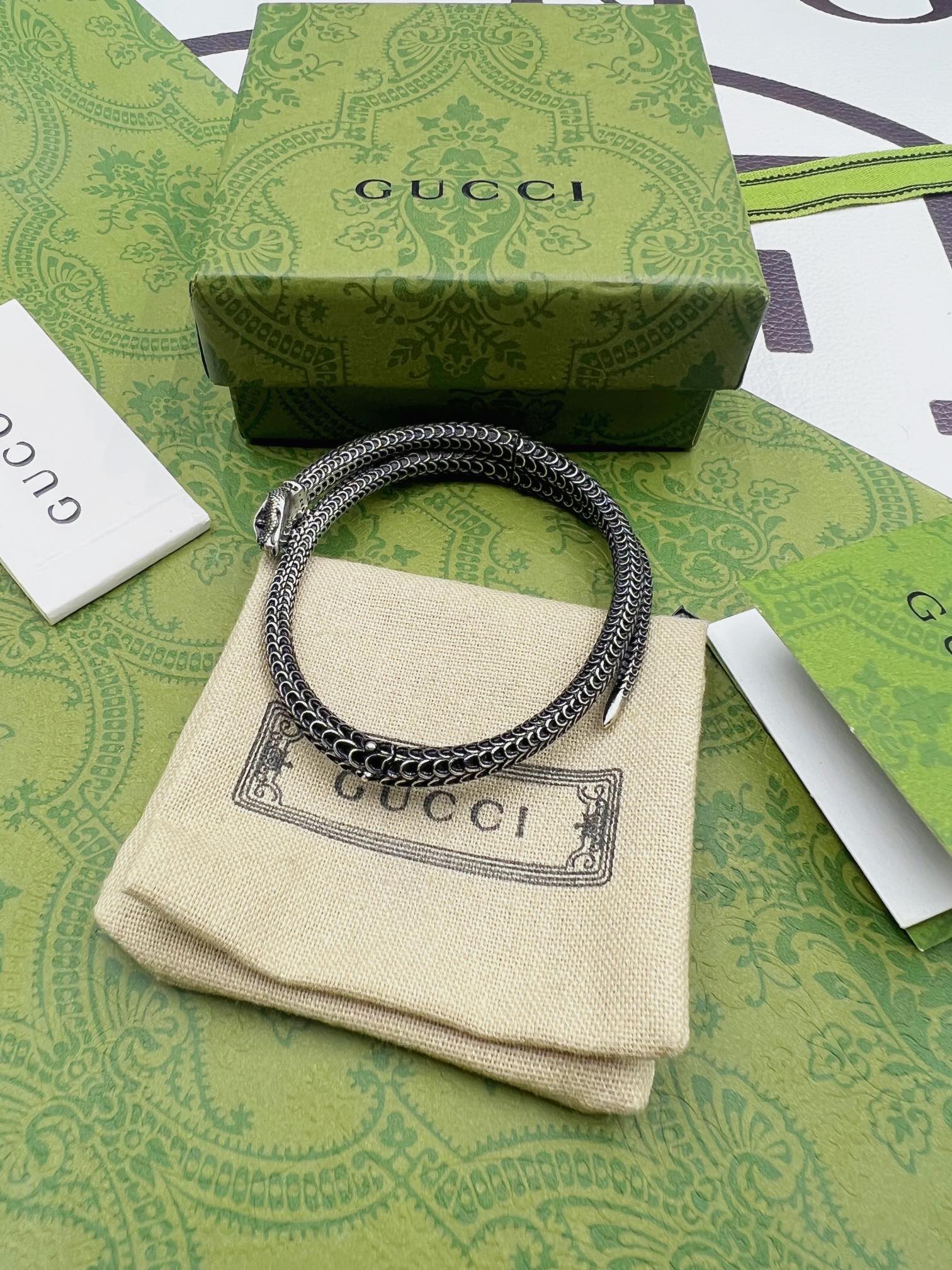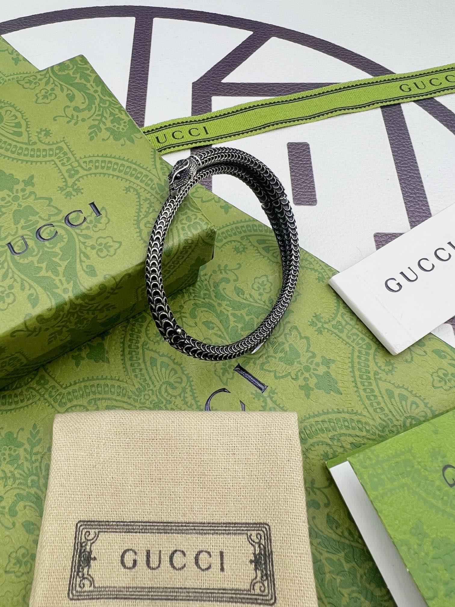 Gucci灵蛇手镯 栩栩如生 尺寸:16 18cm内圈周长 材料:925纯银 34.4 46克 细节:原版开版,尺寸1比1原版,还原原版克重,拒绝偷工减料。 独家专属:可备注定制刻字,加上属于自己的专属字母➕ 独家实拍 自己工厂1比1制作 需要图片包装➕
