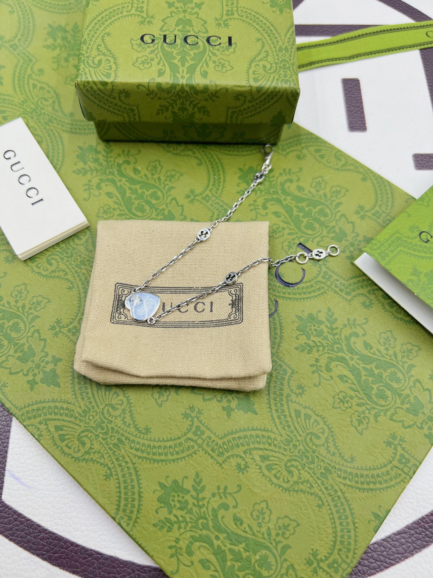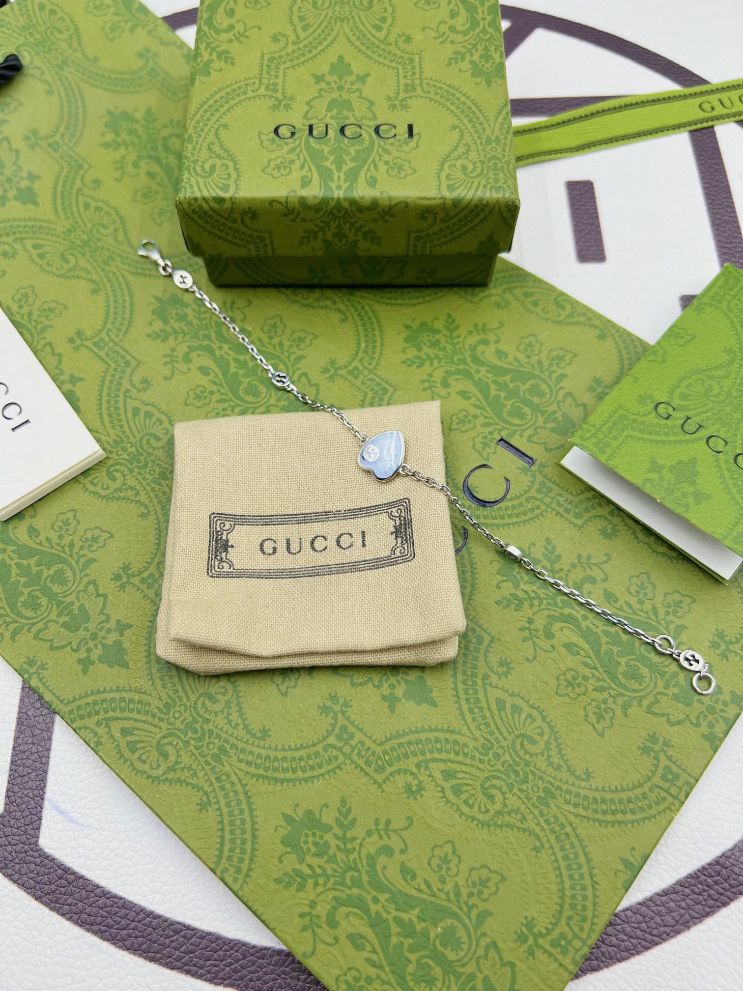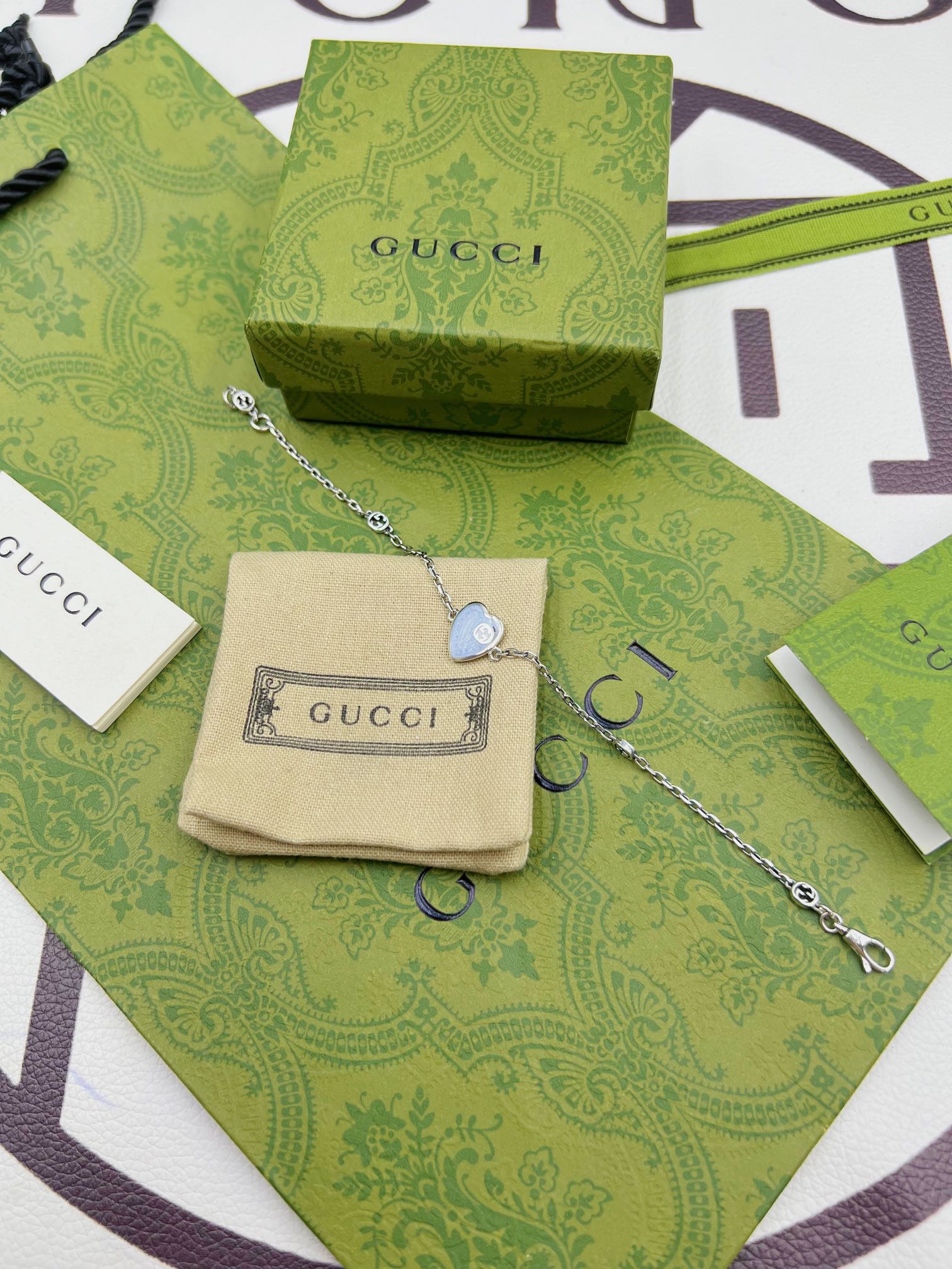 Gucci爱心珐琅蓝色手链 双色款 长度:16-18-20cm(可定制加长) 材料:925纯银 4克 细节:原版开版,尺寸1比1原版,还原原版克重,拒绝偷工减料。 独家专属:可备注定制刻字,加上属于自己的专属字母➕ 独家实拍 自己工厂1比1制作 需要图片包装➕