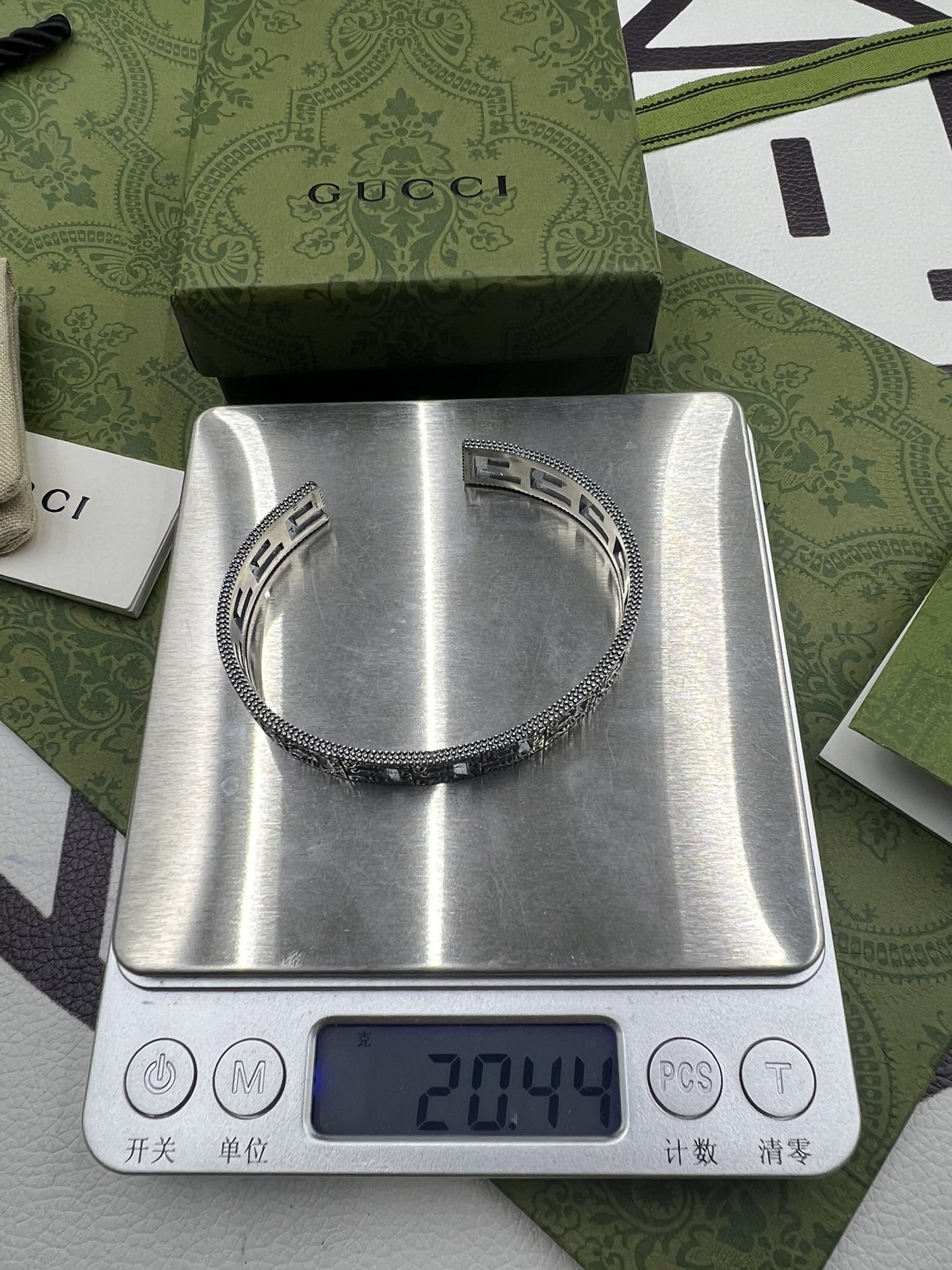 Gucci 镂空花纹做旧手镯 宽版细节实拍 微距细节实拍 原版克重 (轻款) 刻字1比1实拍。