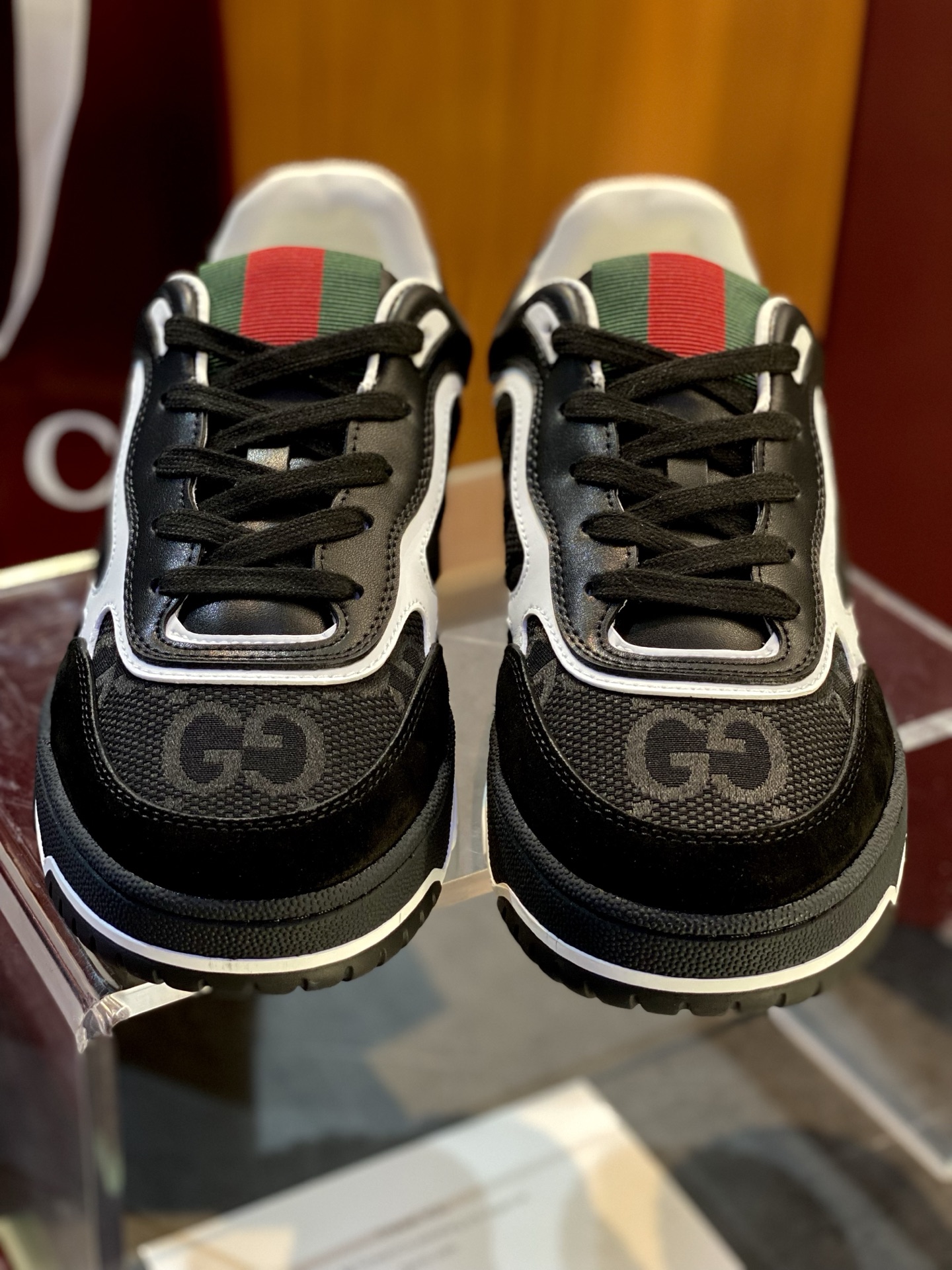作Sabato De Sarno为Gucci打造的首款运动鞋,Re-Web系列焕新演绎品牌经典条纹,以大胆不羁的别致细节衬映现代感十足的廓形设计。这款运动鞋以标志性细节为亮点,采用米色和乌木色Original GG帆布打造,饰红绿织带的鞋舌更添亮眼点缀。