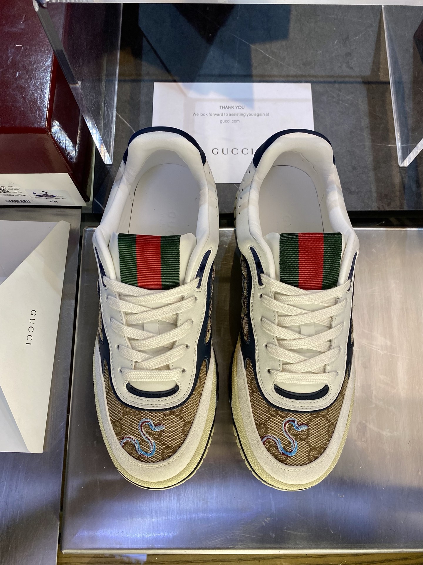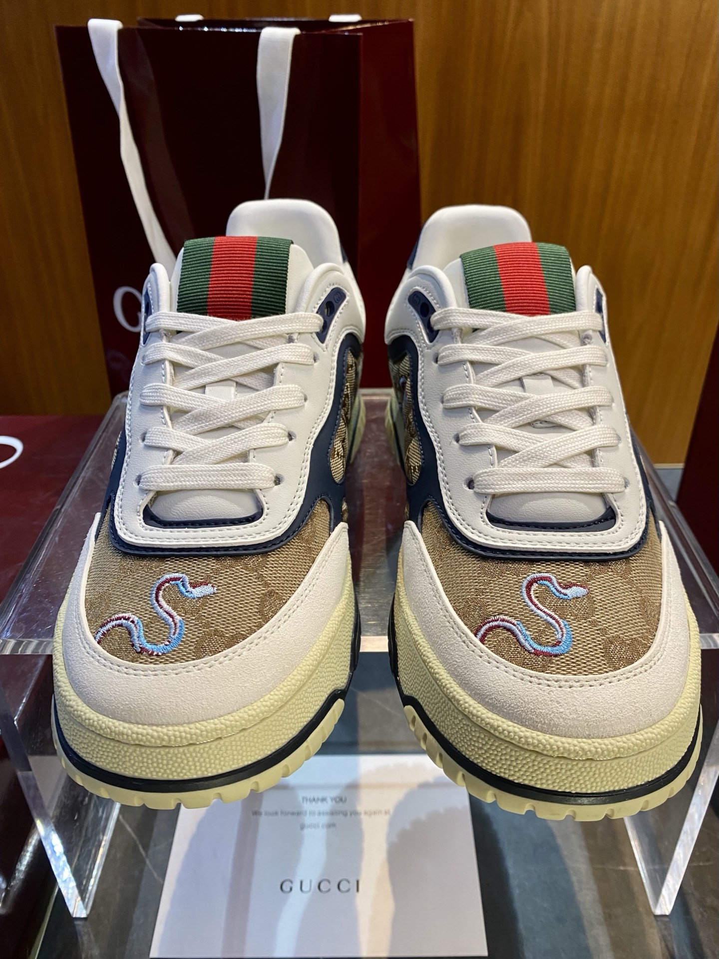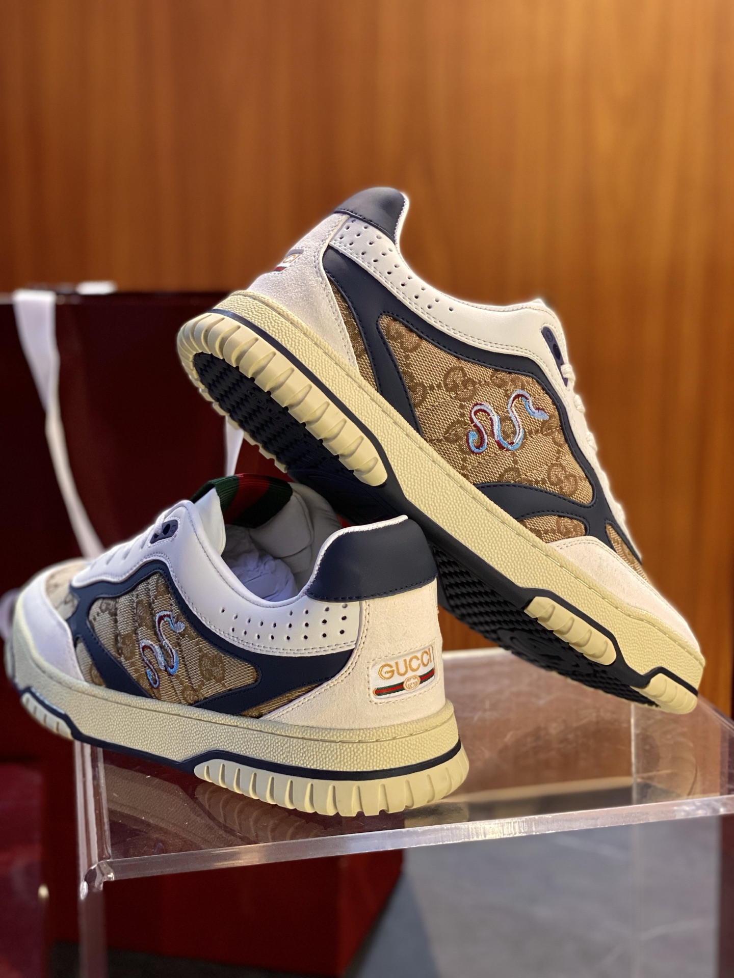 作Sabato De Sarno为Gucci打造的首款运动鞋,Re-Web系列焕新演绎品牌经典条纹,以大胆不羁的别致细节衬映现代感十足的廓形设计。这款运动鞋以标志性细节为亮点,采用米色和乌木色Original GG帆布打造,饰红绿织带的鞋舌更添亮眼点缀。