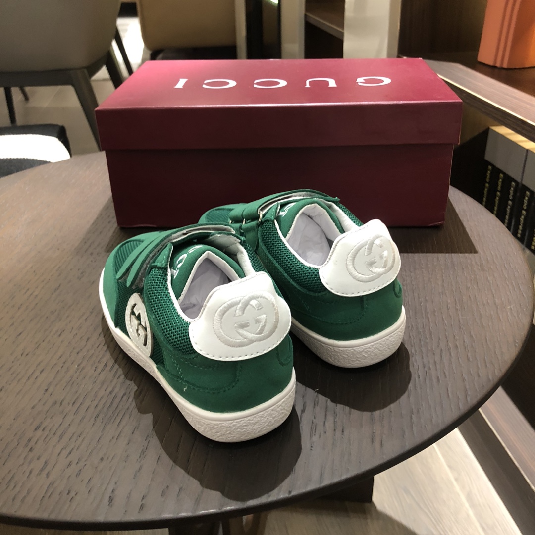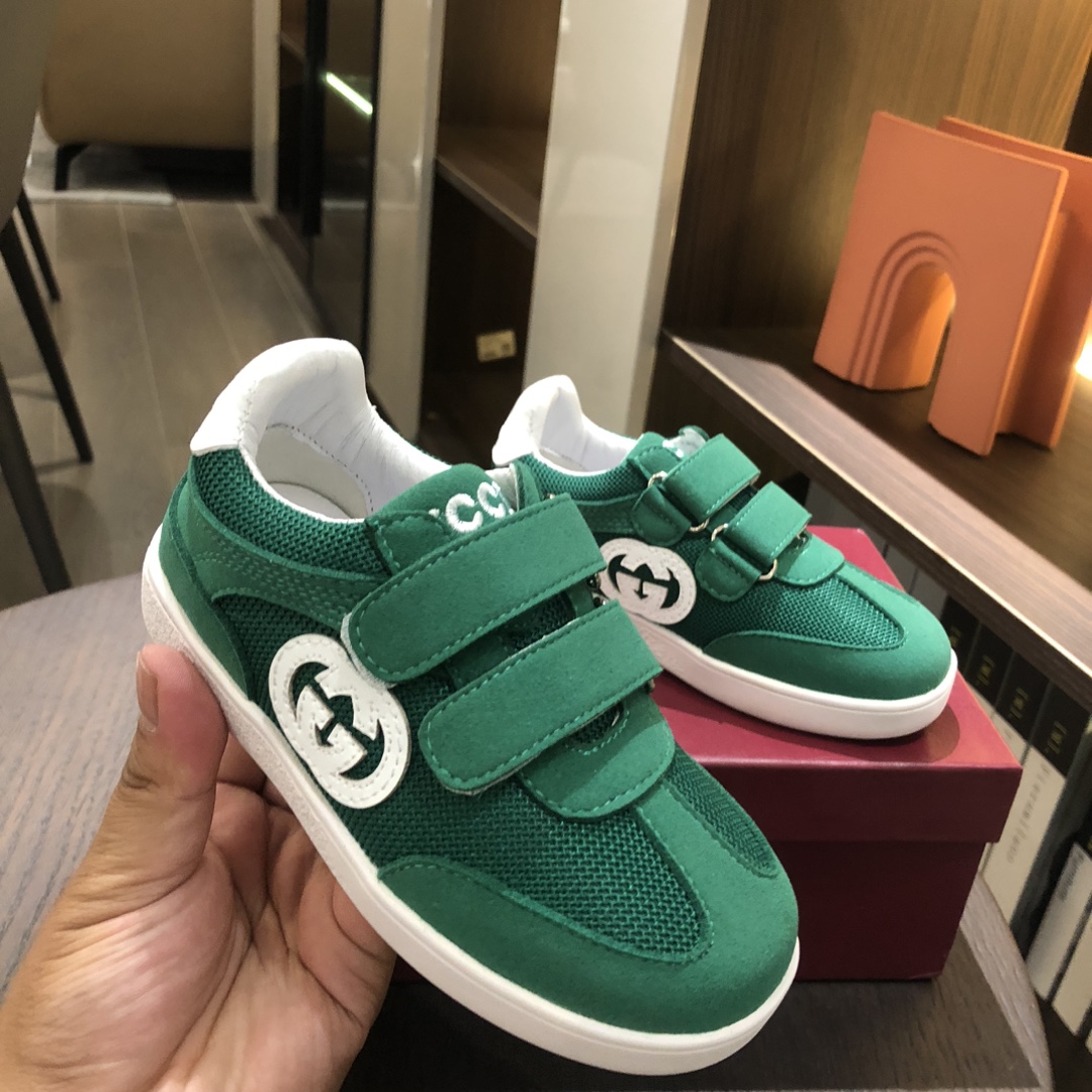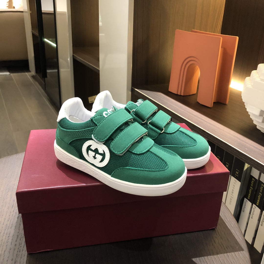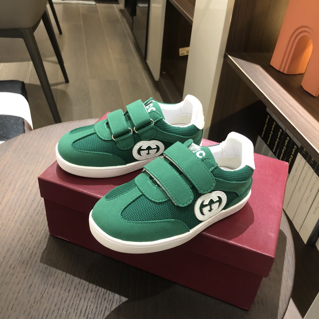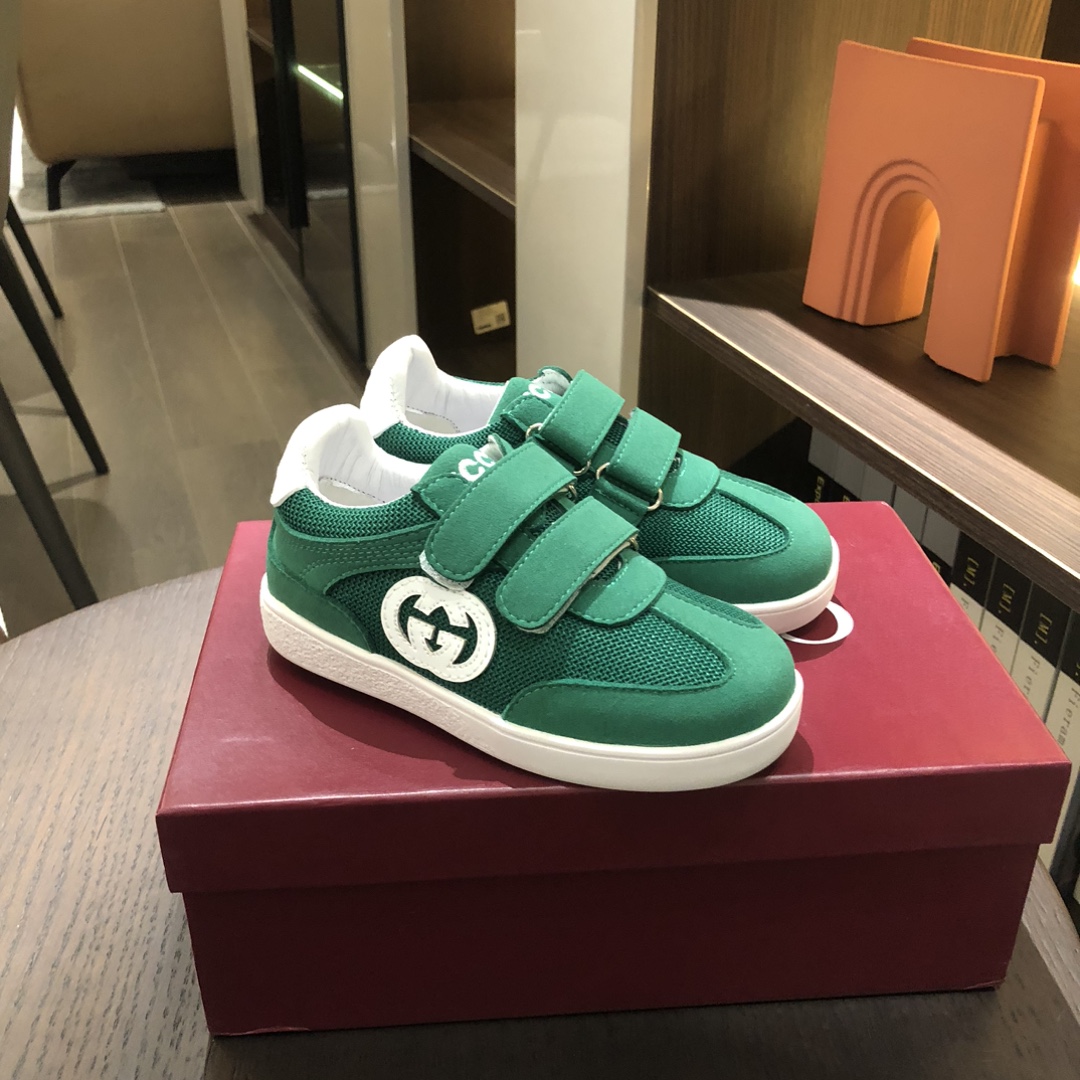 Gucikinds 2025最新款 阿甘鞋 儿童德训鞋 休闲鞋 复古时尚 魔术贴设计 上脚非常轻便舒适 丝绒皮面 网面拼接 配真皮内里 橡胶原版大底 四色 黑色 绿色 红色 白色