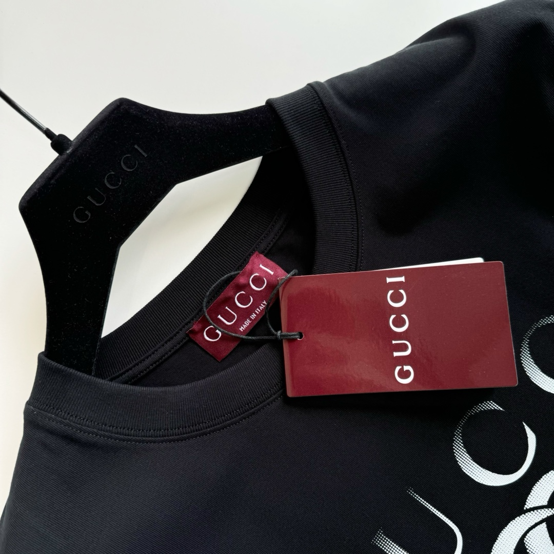 guc ss24 双G Firenze 1921印花短袖 230g 32s双纱全棉平纹布 前幅八爪机丝网印花,进口环保胶浆,对版调颜色,激光刻画圆点菲林,总共四套网板,不同尺寸的圆圈组合印花,视觉效果上达到由深到浅的颜色渐变过度经典圆领宽松原直筒版型 圆领短袖,新款红色辅料配套 size:xs/s/m/l