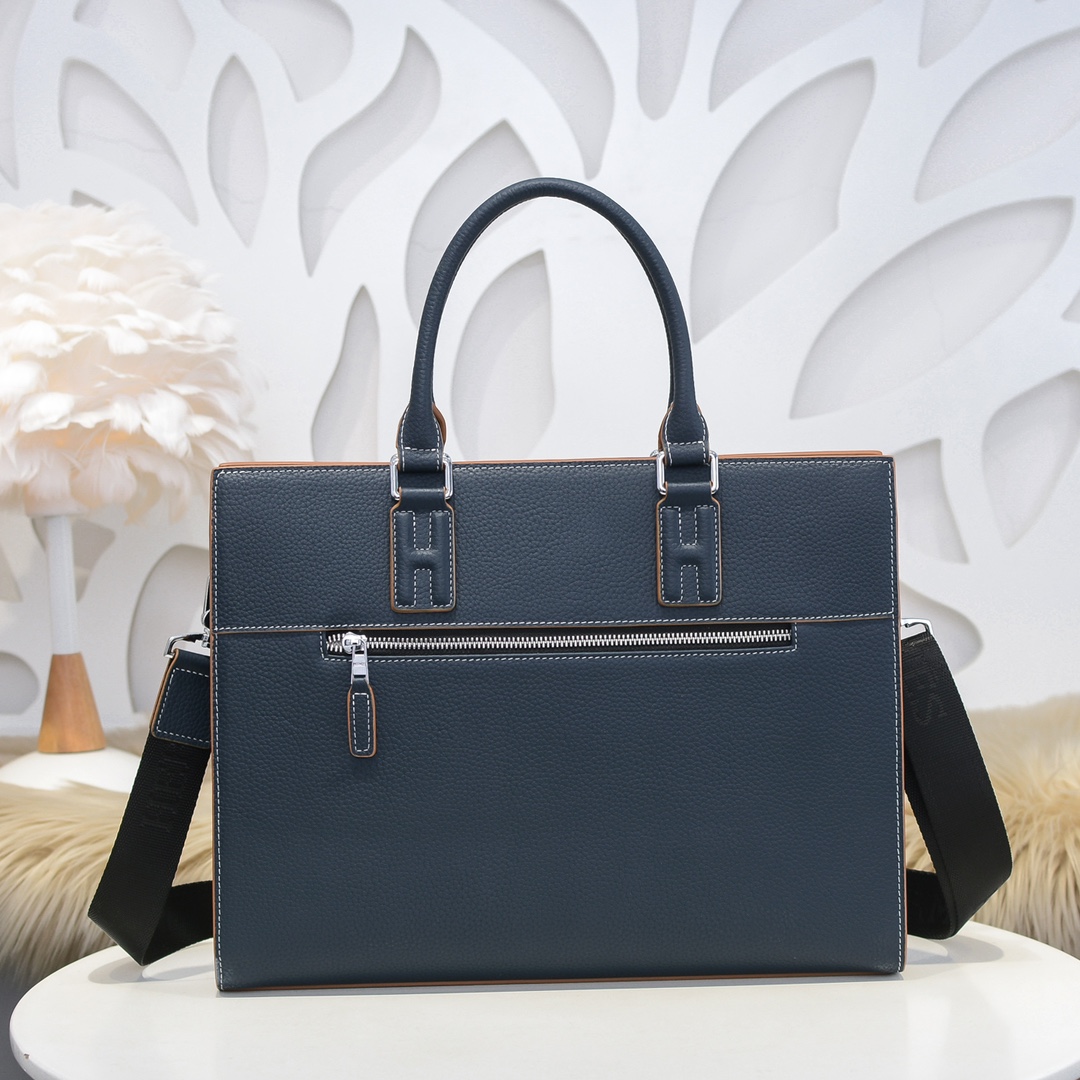 Hermes-爱马仕最新款男士公文包 采用原版小牛皮 皮质柔软 手感超赞 高端五金拉链头 做工细节精致 爱马仕专用里布 时尚休闲 高档实用 尺寸:39.30.7cm 型号33244 蓝色