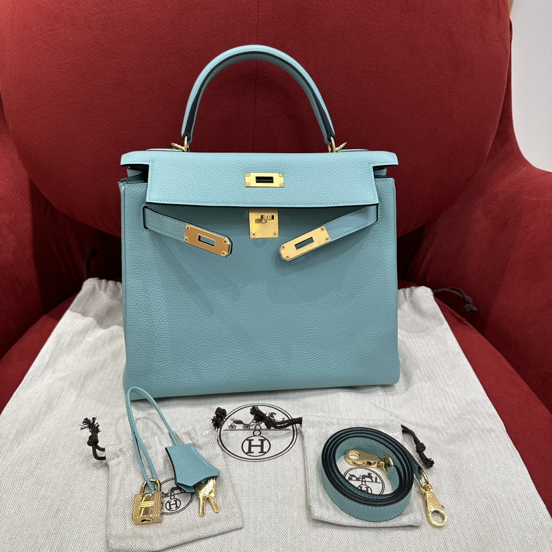 凯莉28cm,马卡龙蓝,小牛皮,金扣,高级全手工专属定制‼️