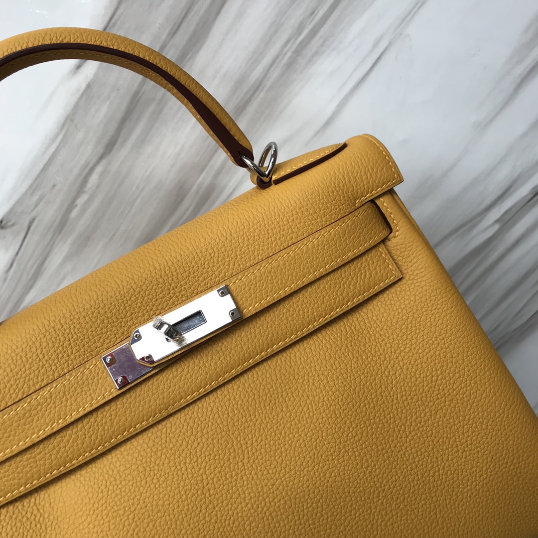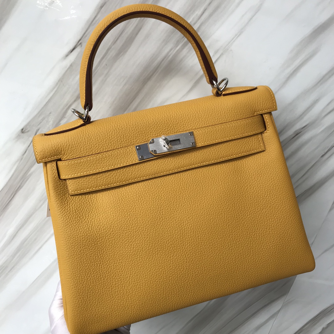 Kelly28cm 原厂小牛皮 togo 9D 琥珀黄 Ambre 银扣 顶级手缝
