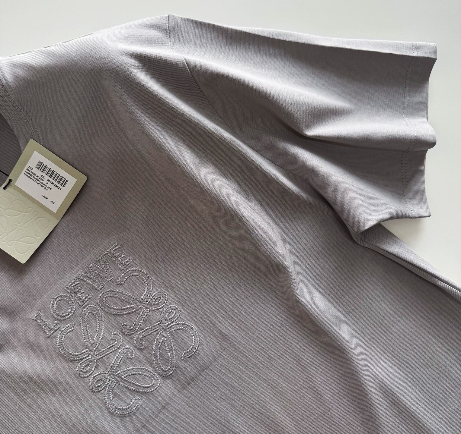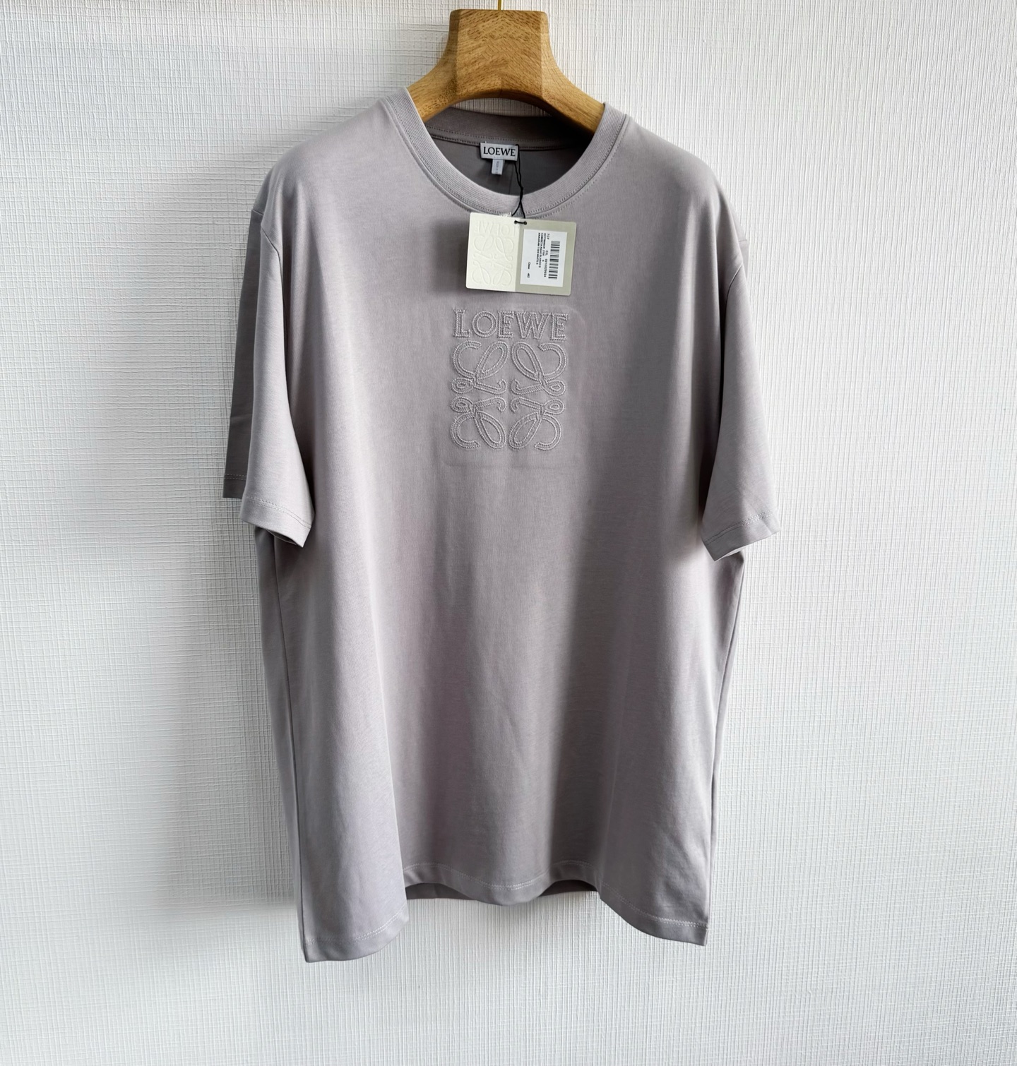 Loe 25ss Anagram刺绣短袖 230g 15S精棉平纹,胸前饰有激光切割贴花, 成衣后炒砂做旧工艺,成衣环保新工艺转染染色、洗水做旧 简约垂直圆领短袖版型size:xs/s/m/l