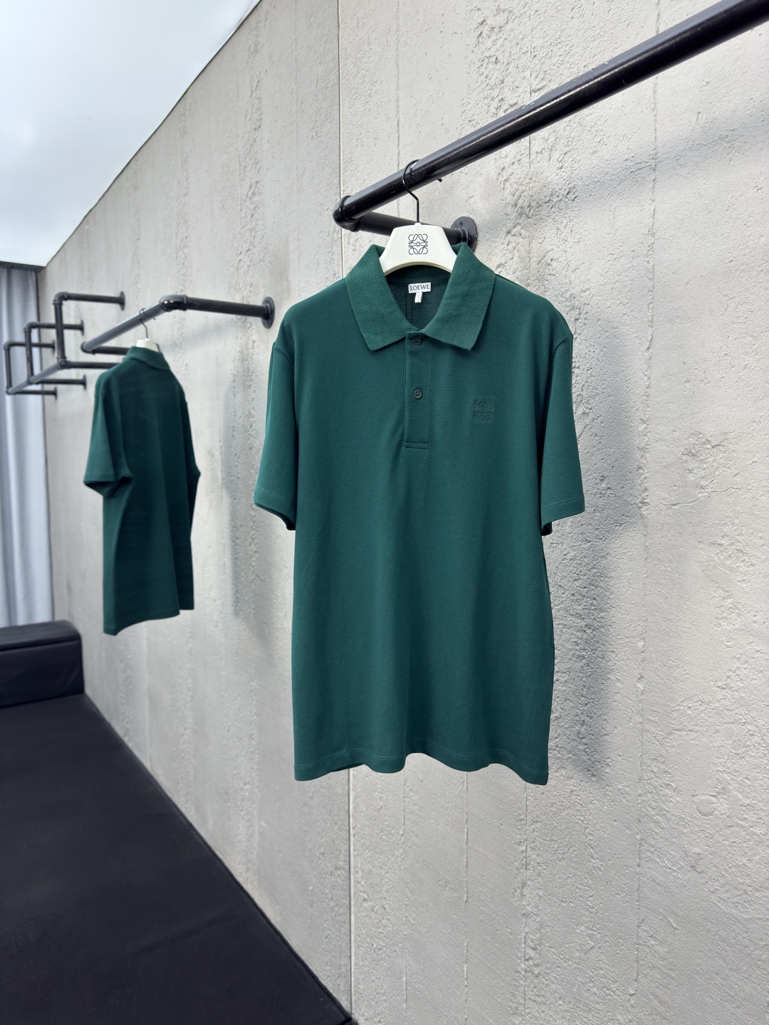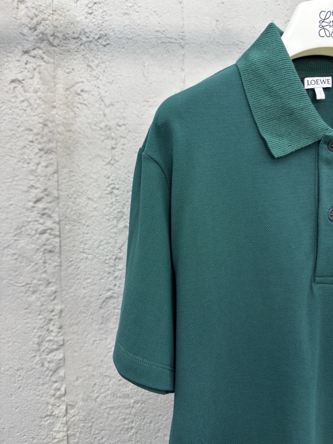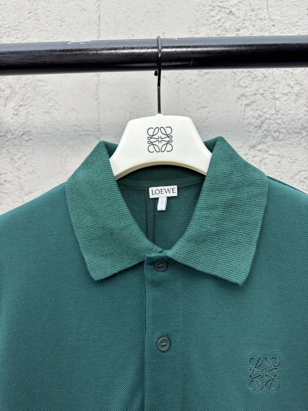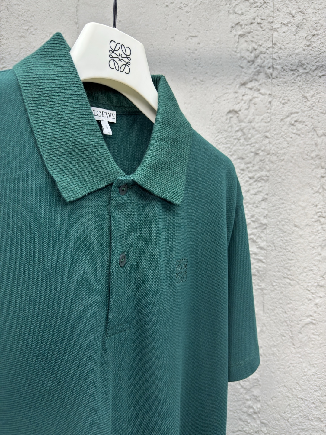 LOEWE 棉质刺绣POLO衫 工艺说明:采用100%纯棉珠地布,在传统珠地布基础上,采用更细的棉纱和更轻薄的编织工艺。立体编制结构使面料更具弹性,不易变形和起皱。以羊毛为主要原料通过罗纹针织工艺使领口具备自然的伸缩性,适应不同颈部曲线,避免紧绷和松垮,穿着更舒适。胸口处通过进口绣花机先进的计算机控制系统和精密的机械部件形成高精度的Anagram刺绣。整体走线平直细腻,面料舒适柔软,颜色一致无色差 能与同款搭配营造时尚造型,驾驭各种场合,定制辅料,三标齐全,男女同款! ⚠️颜色:绿色 ⚠️Size:S/M/L/XL