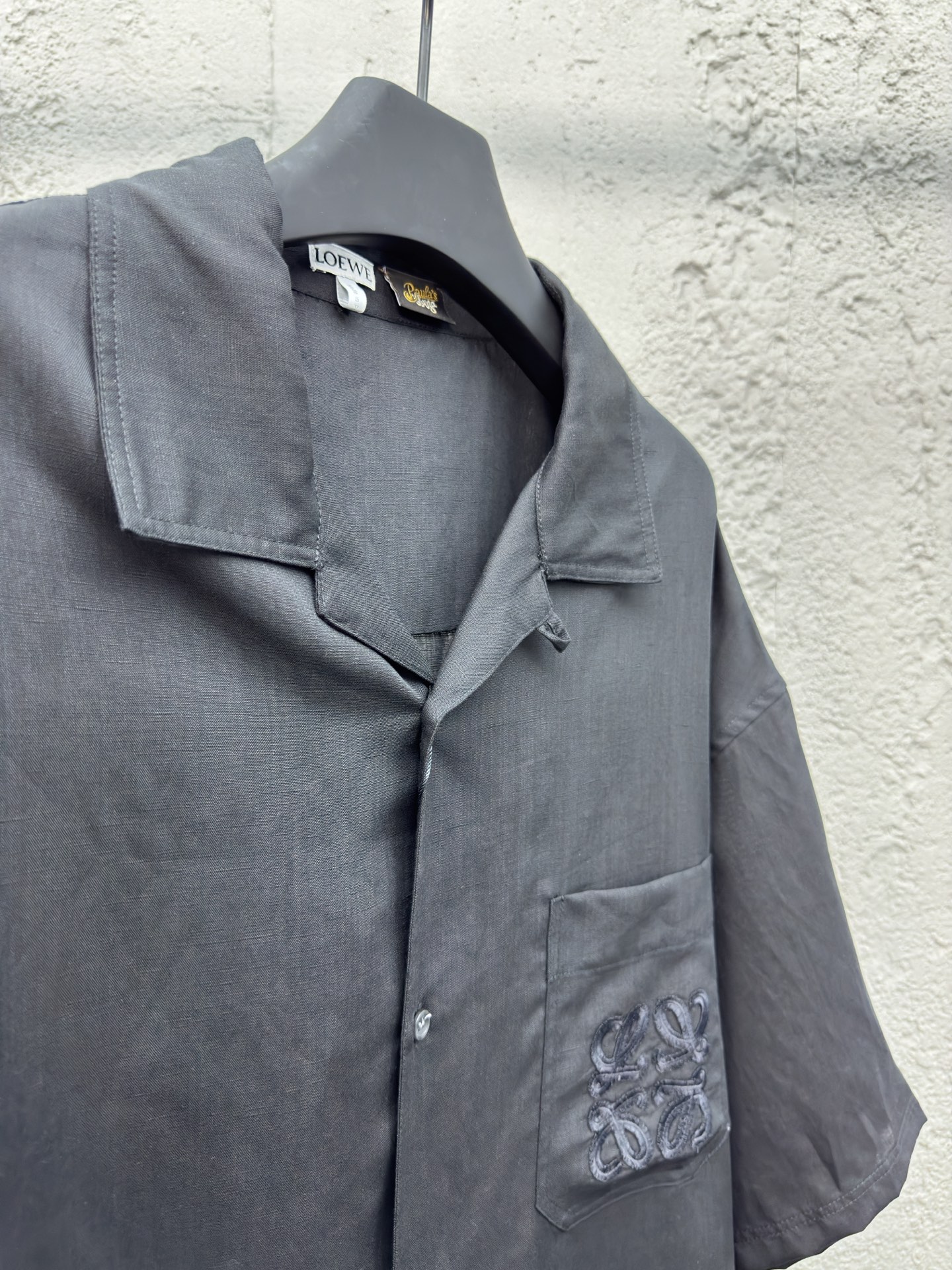 LOEWE绣花亚麻短袖衬衫工艺说