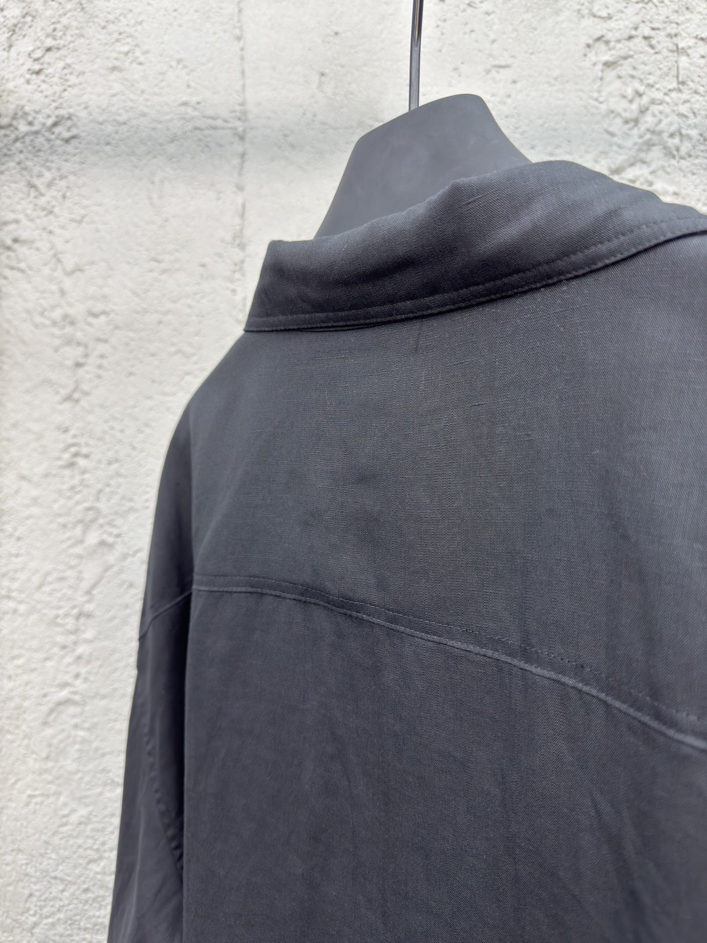 工艺说明:以粘胶纤维与亚麻融合,通过气流纺纱技术实现纤维互锁,粘纤的柔滑垂坠感中和亚麻的粗粝肌理,亚麻的骨感支撑力弥补粘纤易变形的短板。胸前贴袋的Anagram图腾,采用隐式勾针刺绣工艺,以极细丝线在亚麻基底上演化出320针/CM²的精密矩阵,与布料天然纹理同频共振。整体走线平直细腻,面料舒适柔软,颜色一致无色差 能与同款搭配营造时尚造型,驾驭各种场合,定制辅料,三标齐全,男女同款!