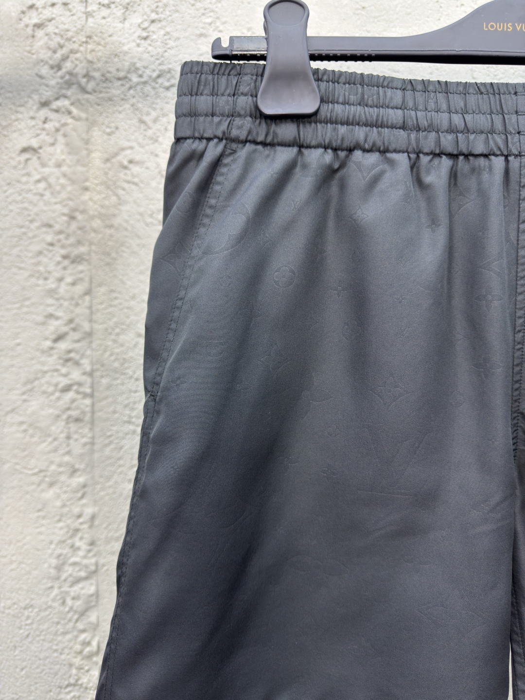 LOUIS VUITTON沙滩满印休闲短裤 工艺说明:采用60高密平纹锦纶面料,满天星聚酯纤维网布 定制面料 布匹钢印 定制1:1五金,整体走线平直细腻,面料舒适柔软,颜色一致无色差 能与同款搭配营造时尚造型,驾驭各种场合,定制辅料,三标齐全,男女同款! ⚠️颜色:黑色 ⚠️Size:S/M/L/XL
