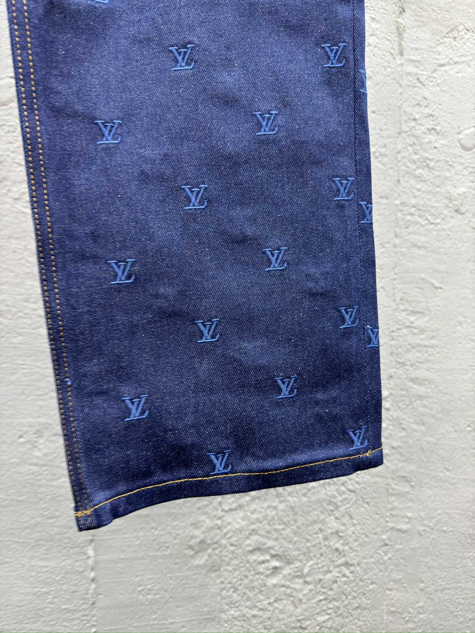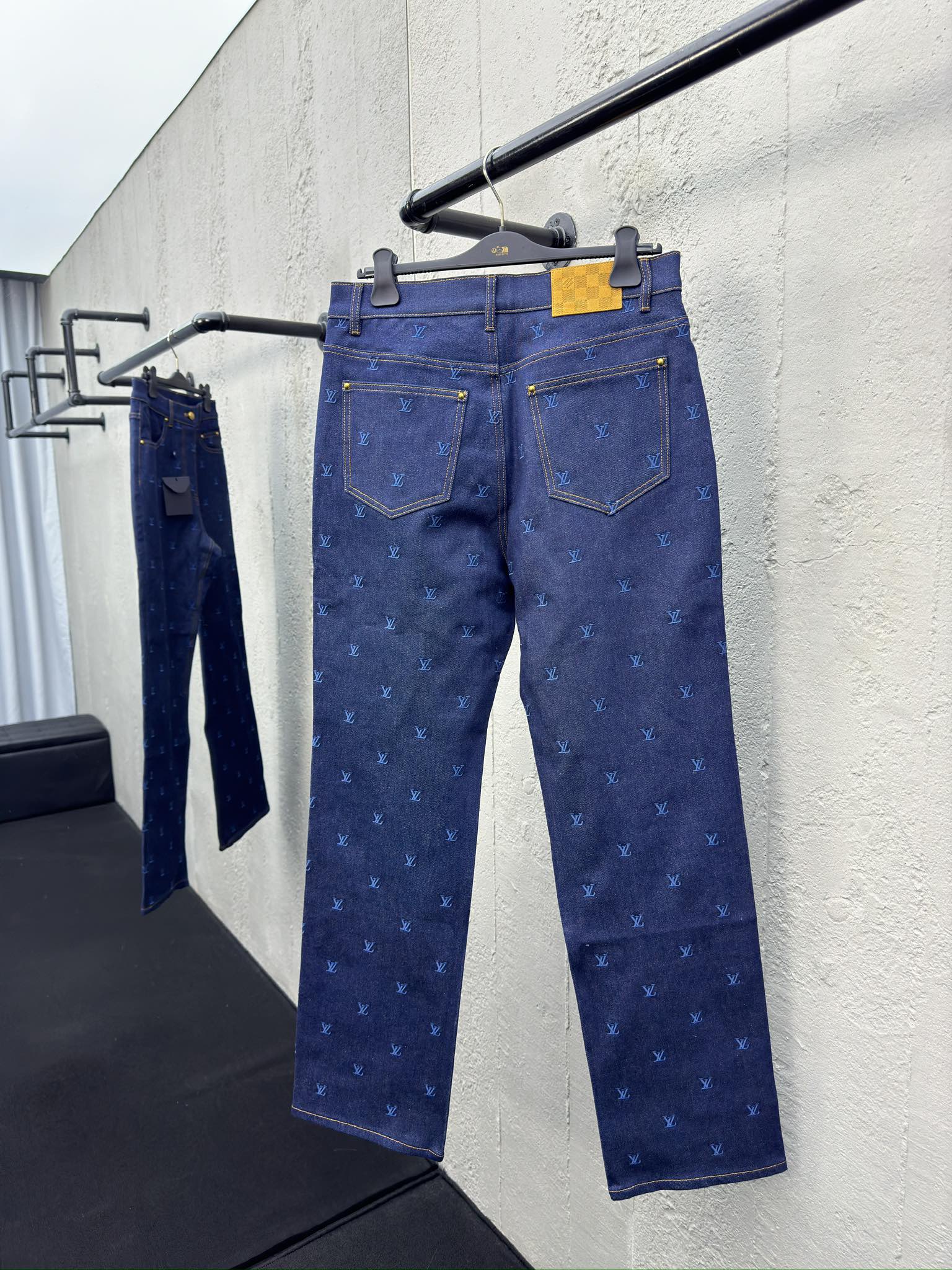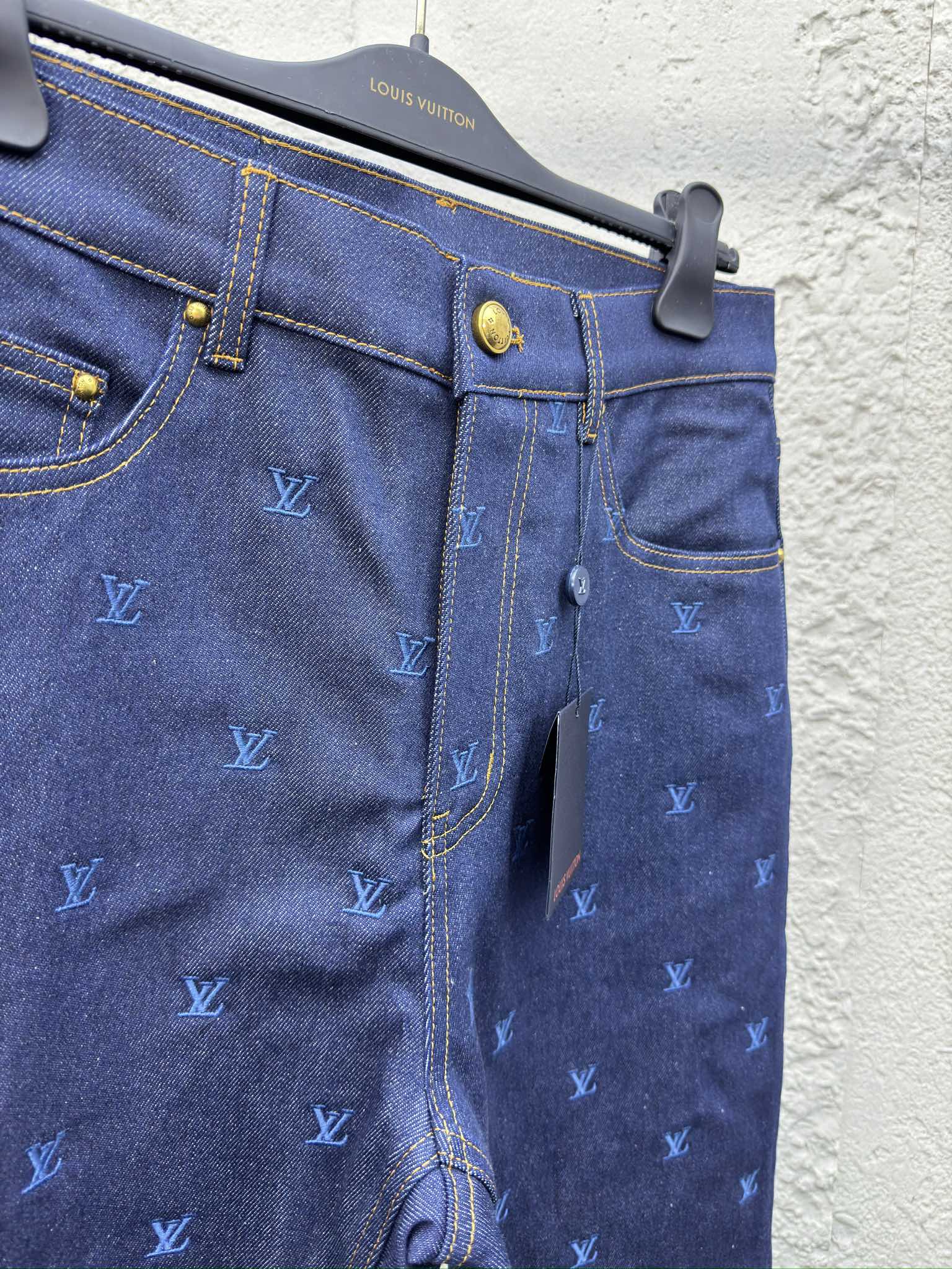 LOUIS VUITTON 刺绣logo牛仔裤 工艺说明:面料采用430克牛仔布料,洗水后手感透气舒适,每一处细节YB订制,对位对花,订制五金纽扣,皮牌高度还原,媲美原版,能与同款搭配营造时尚造型,驾驭各种场合,定制辅料,三标齐全,男女同款! ⚠️颜色:蓝色 ⚠️Size:29/30/31/32