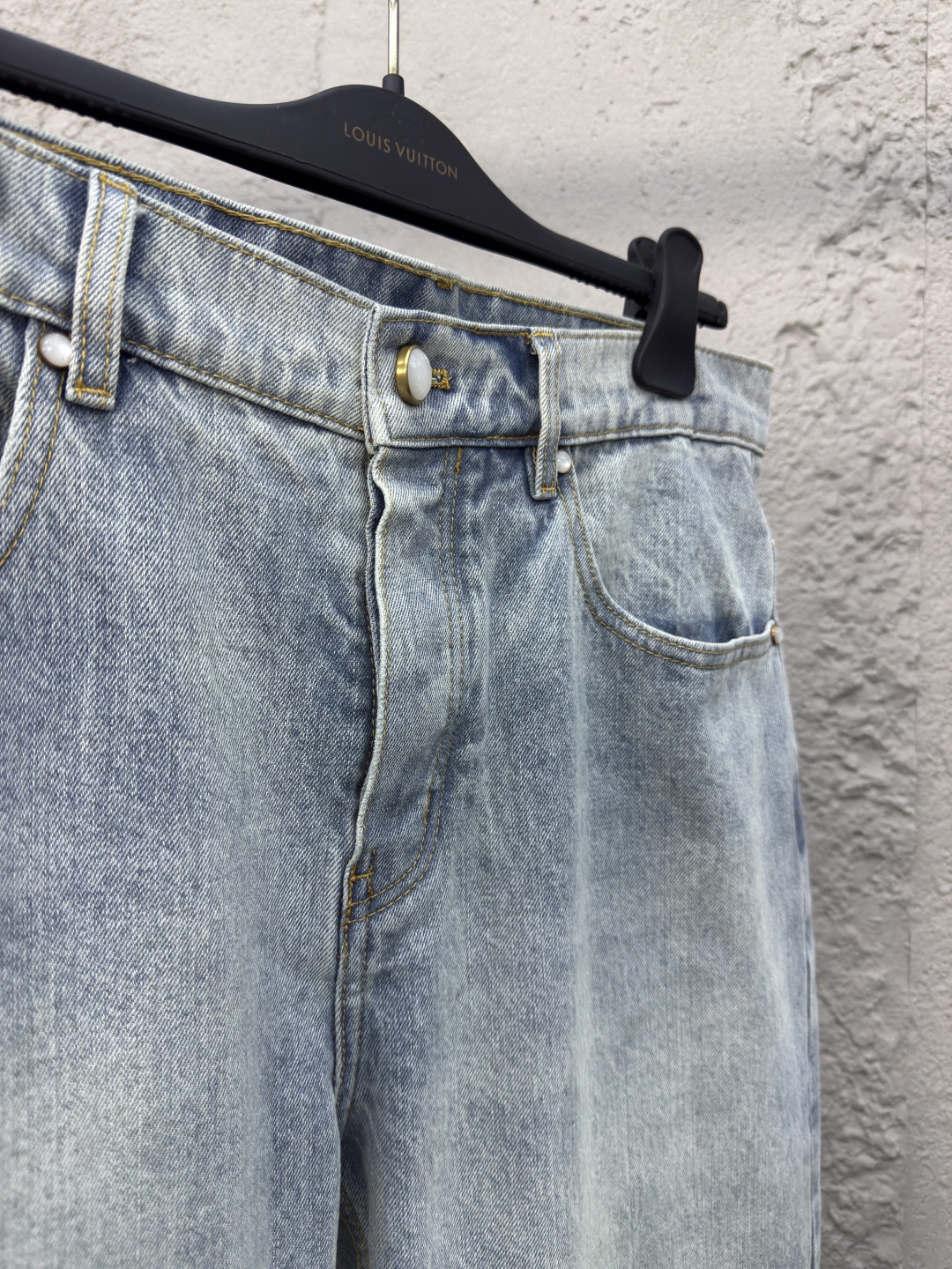 工艺说明:面料采用取材日本水洗丹宁布,以别致阔腿廓形轻松点亮各式造型。醒目明线、后袋LV标识刺绣,以及票袋和腰部的正绒面革贴饰一道印证品牌精湛匠艺,整体走线平直细腻,面料舒适柔软,颜色一致无色差 能与同款搭配营造时尚造型,驾驭各种场合,定制辅料,三标齐全,男女同款!