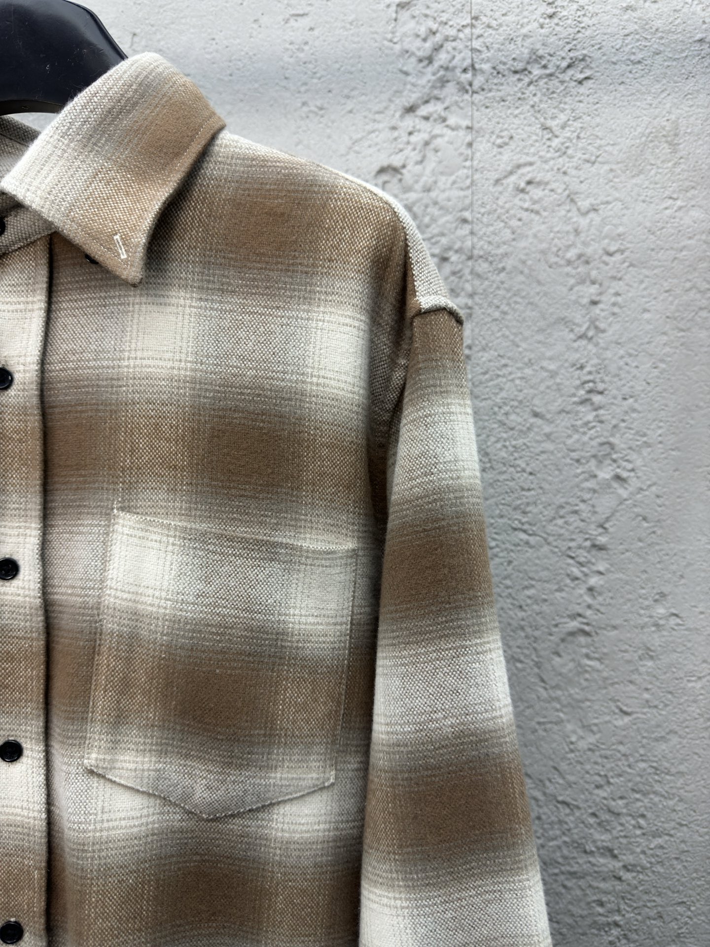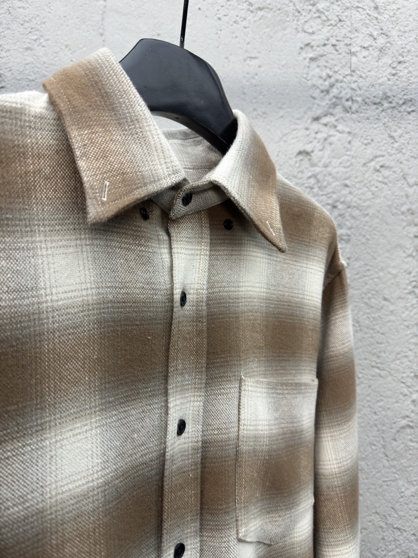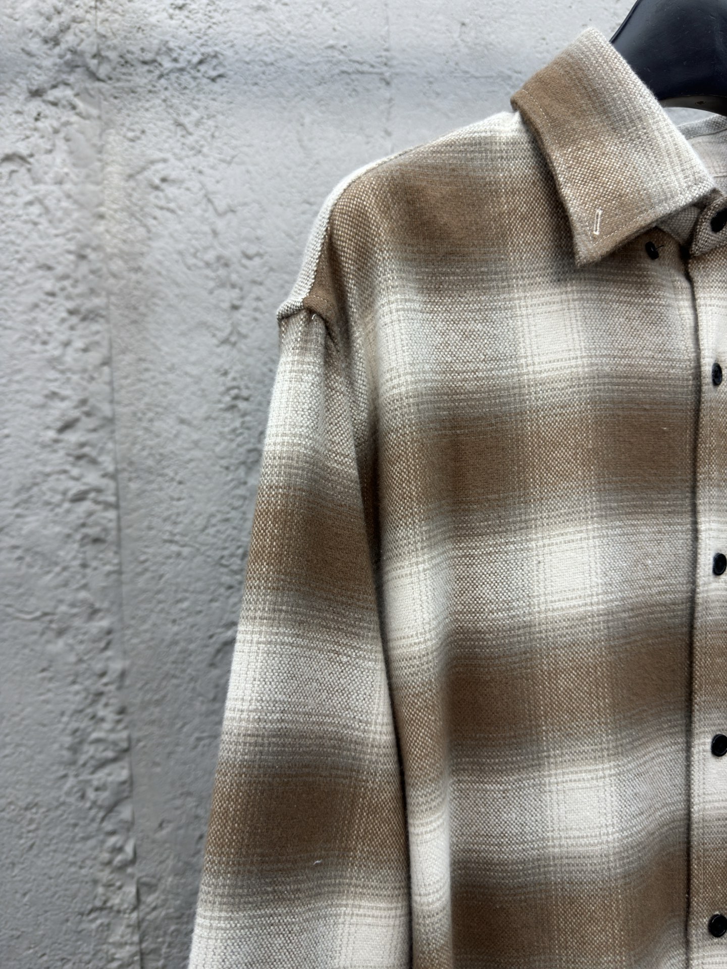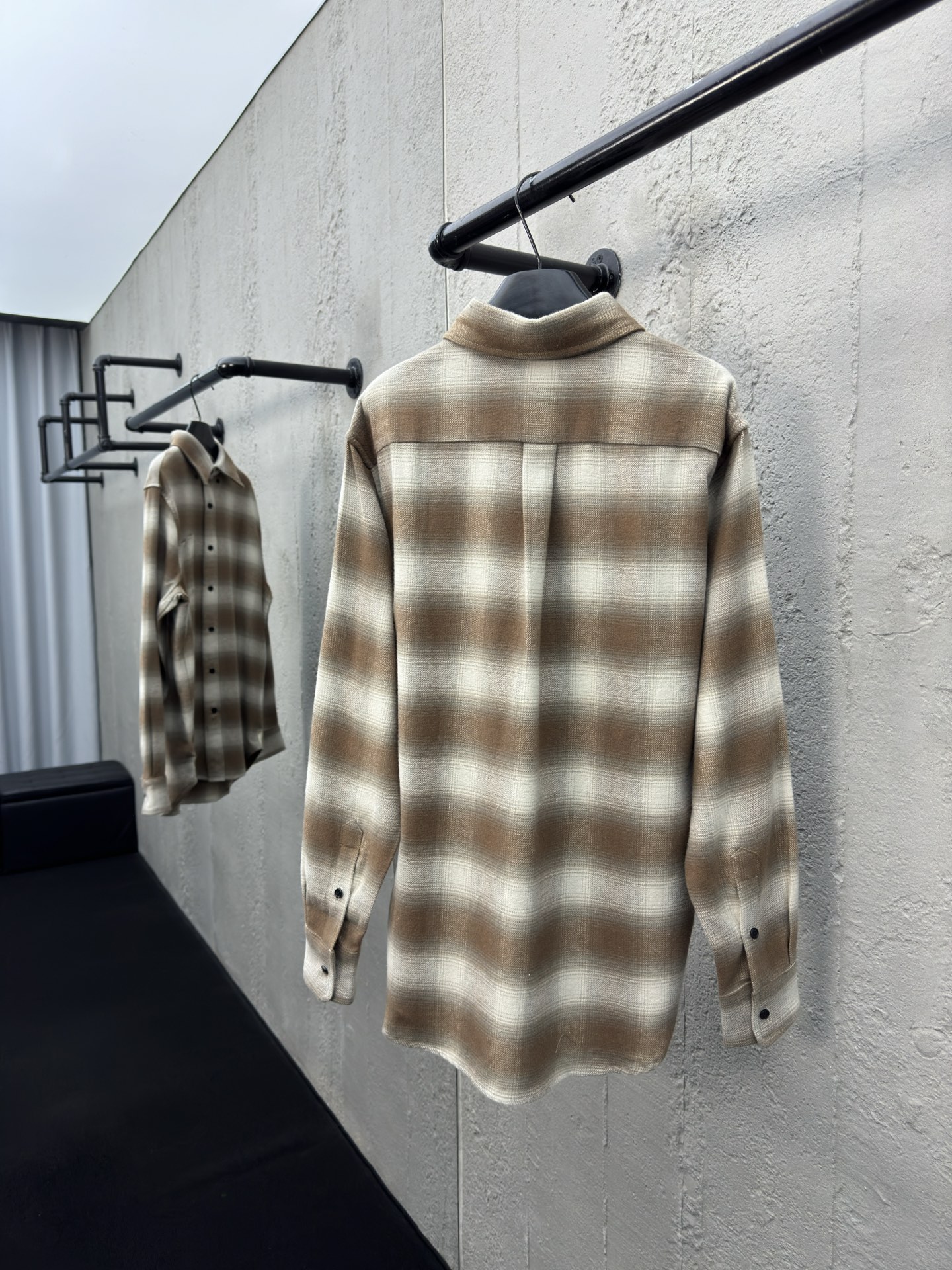 LP 法兰绒格子衬衫 工艺说明:定制100%全棉色织法兰绒格纹面料,整体走线平直细腻,面料舒适柔软,颜色一致无色差 能与同款搭配营造时尚造型,驾驭各种场合,定制辅料,三标齐全,男女同款! ⚠️颜色:咖色 ⚠️Size:S/M/L/XL