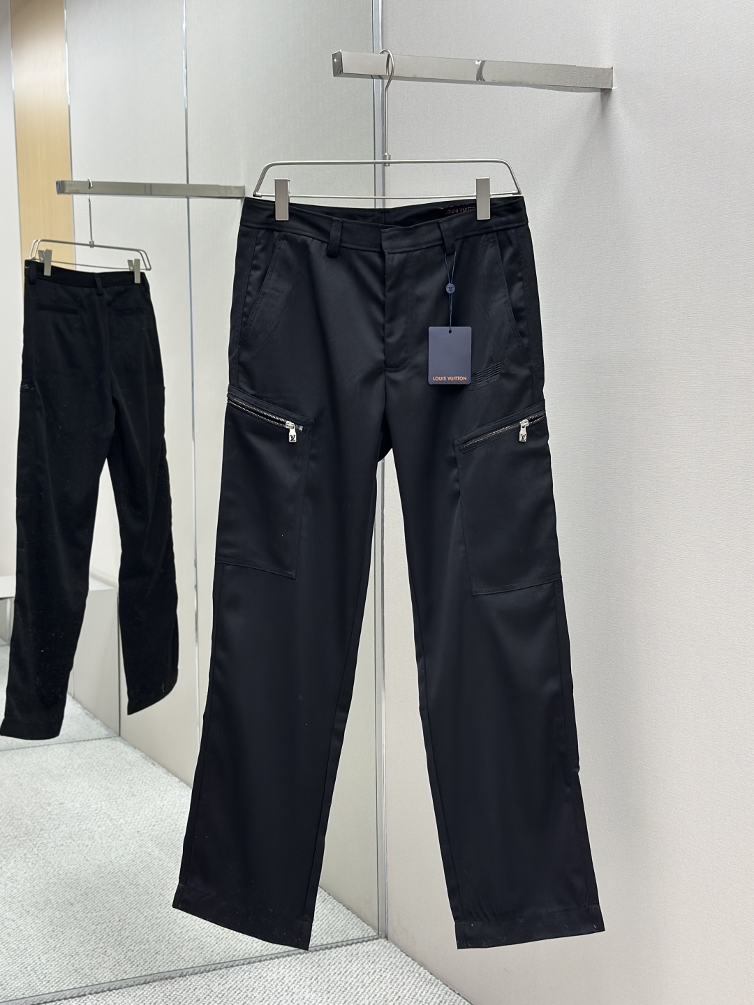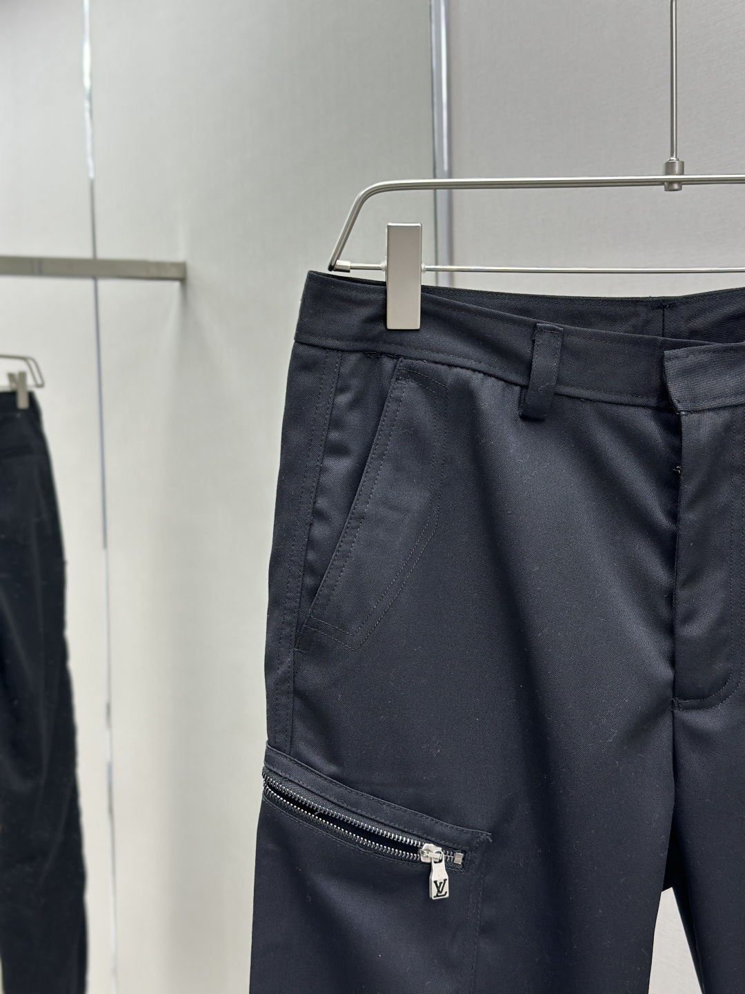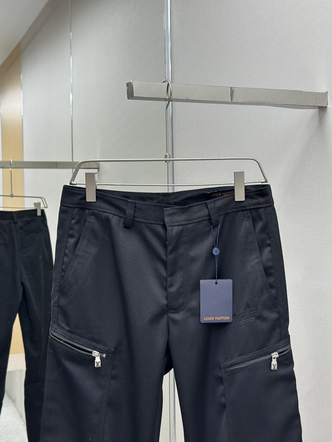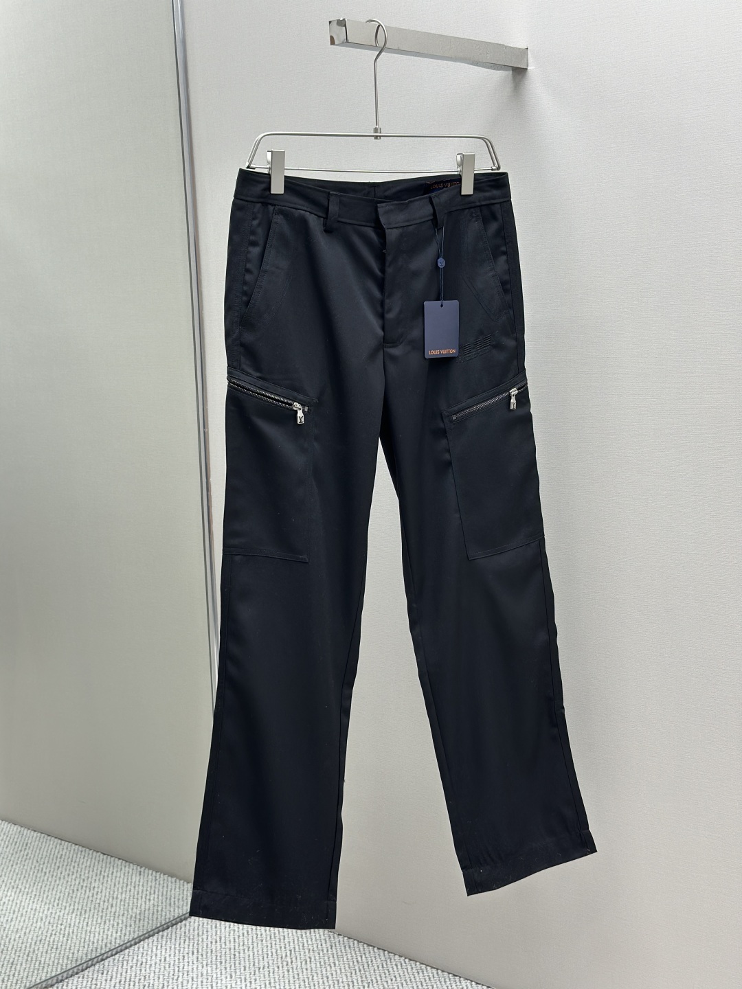 定制臻绒精纺羊毛缎纹织,经典以一袭纯粹黑色 勾勒现代男士的沉稳格调,两侧拉链口袋设计独具匠心,以lv字母刺绣为点缀,以经典标识诠释身份感,低调中透出奢华格调。