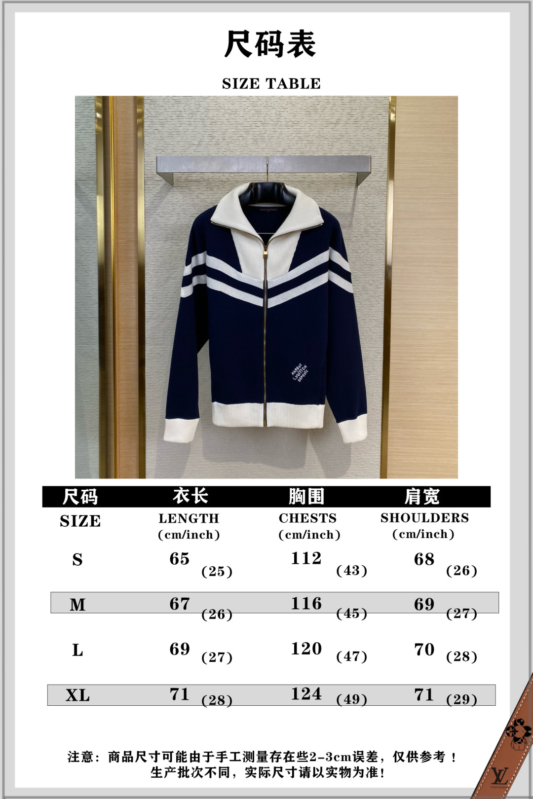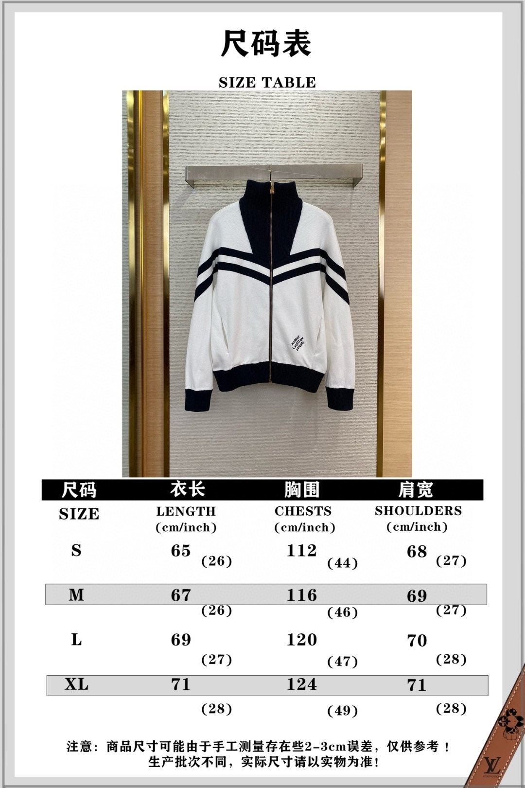 LV路易威登刺绣拉链毛织立领外套【尺码表】