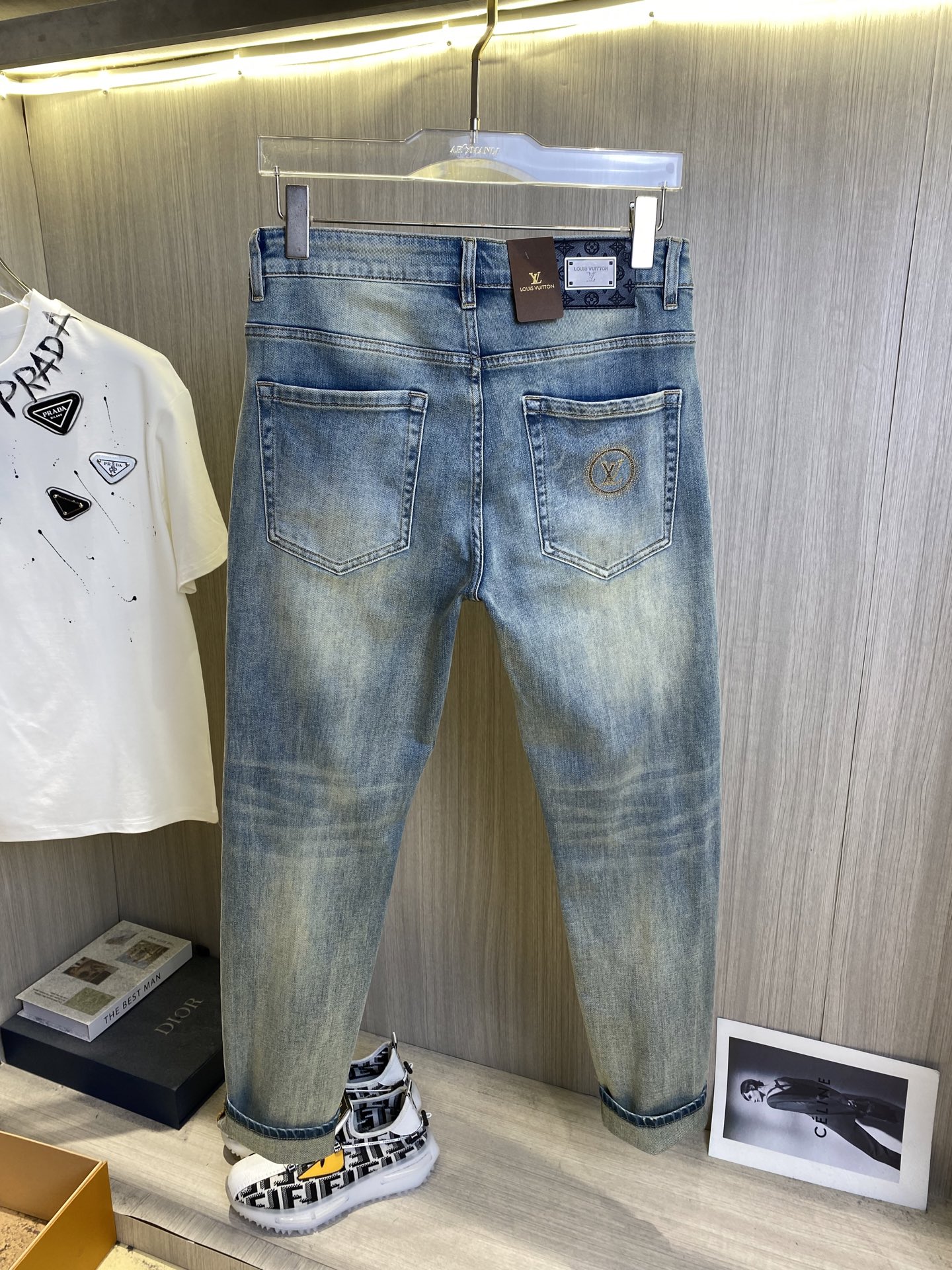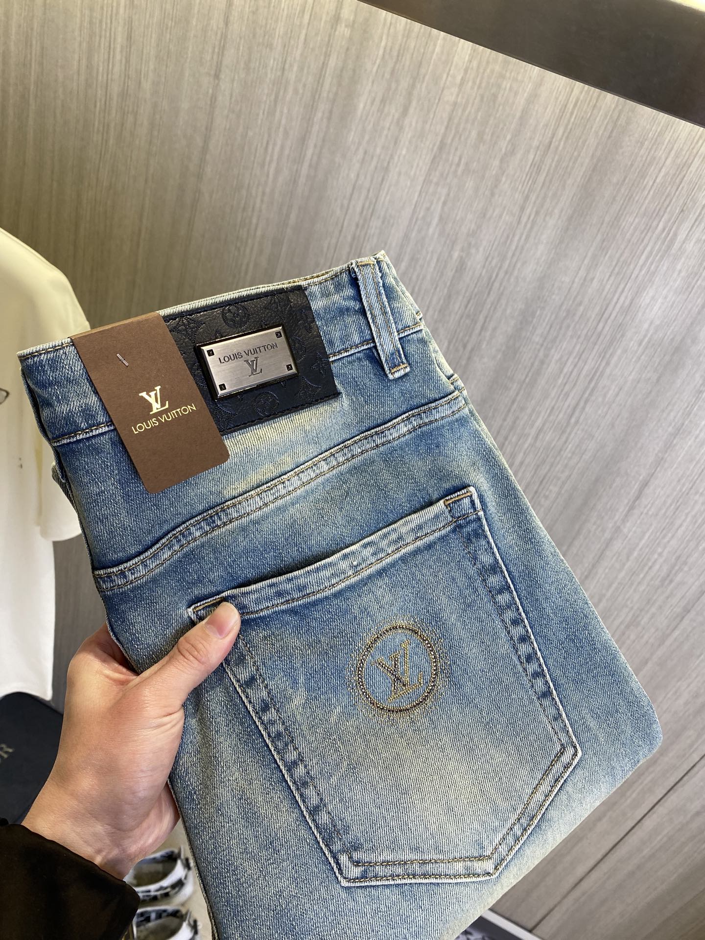 LV路易威登 2025新品男士牛仔裤 面料弹性好。独家发售 官网同步 时尚优雅 重工艺设计。采用原色酵母水洗工艺 精选进口重磅丹宁牛仔面料 配专柜五金装饰 真皮皮牌 精致车线 大牌风范 值得拥有。码数:28-38,隔天出货