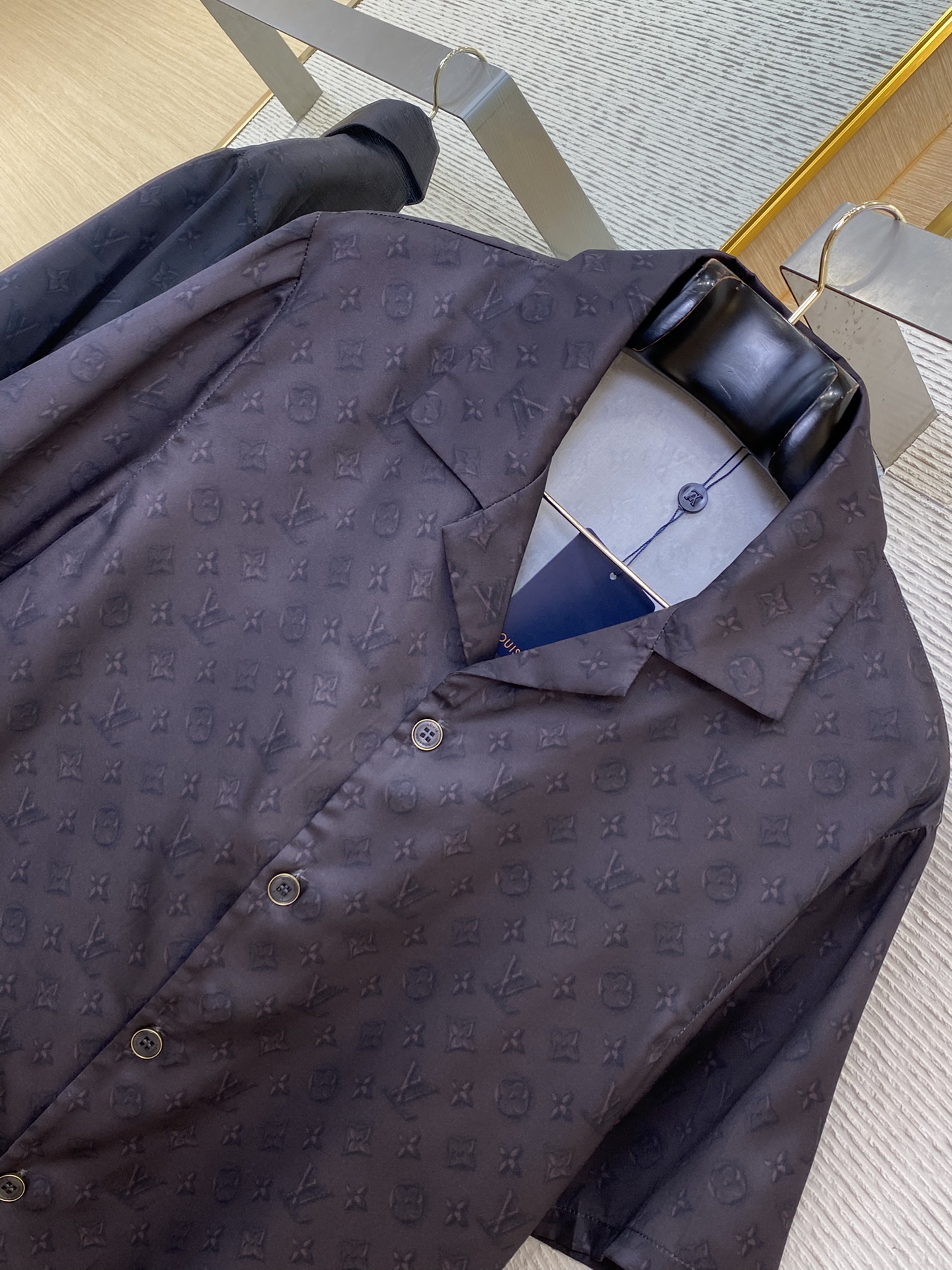 YB购入打版,采用定制面料,面料的纺织密度高,成衣挺括有型,不易变形,不管是日常穿着还是搭配正装,都能轻松驾驭,满身的立体Monogram Macro D印花太惊艳了!从色调由浅转浓,呈现出独特的层次感和立体感,仿佛一幅流动的艺术画卷,满满的高级感,色彩过渡自然流畅,每一处细节都处理得恰到好处,印花的耐久性强,经过多次穿着和洗涤,依然能保持鲜艳的色彩和清晰的图案,门襟的刻字纽扣开合设计,不仅方便穿脱,还为整件衬衣增添了一份精致感。标准版型剪裁,不挑身材,轻松适配各种身形,男女同款!