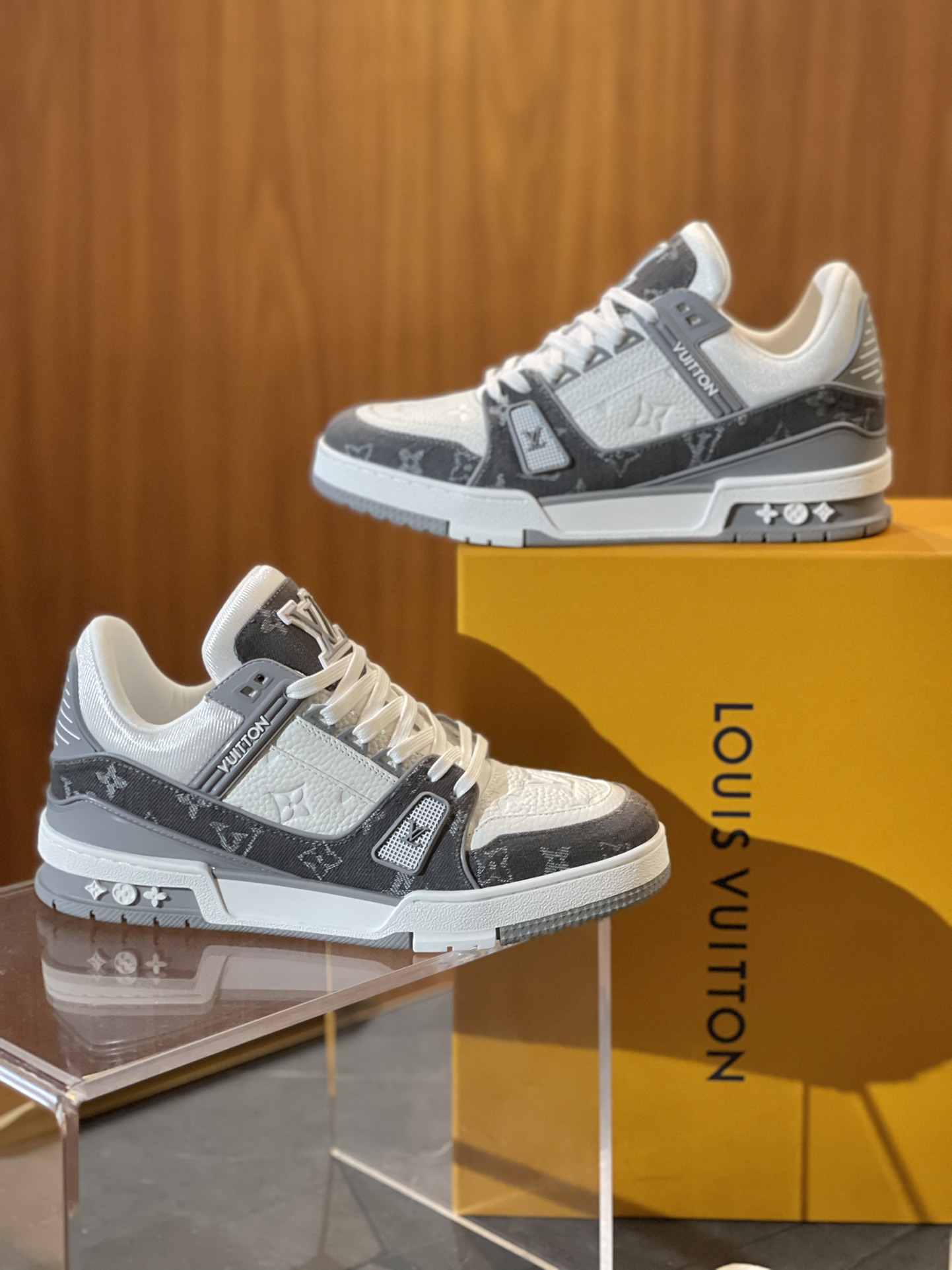 LV TRAINER 运动鞋 ♞size;39~44 (38.45定制) 本款 Trainer 运动鞋取材 Monogram 丹宁布和 Monogram 压纹 粒面牛皮。原版构型出自 Virgil Abloh 之手。繁复鞋面和多样品牌元素提升辨识度。