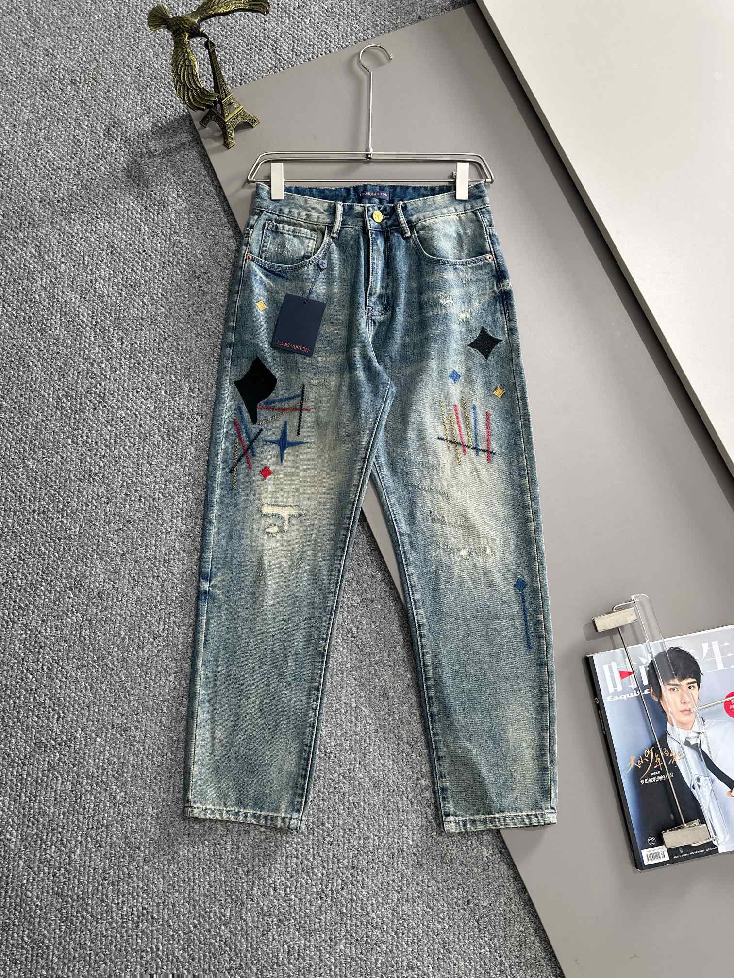 LV2025四季款经典牛仔裤直筒长裤,潮流中的潮流!众多潮流博主上身驾驭 水采用进口客供日本Denim平纹棉质牛仔面料梭织生产,三标齐全,柔软细腻舒适透气,色泽拥有现代时尚的沧桑感,上身百搭时尚!轻奢主义 日常通勤穿搭必备单品! 码数:28-40(下单报身高体重)