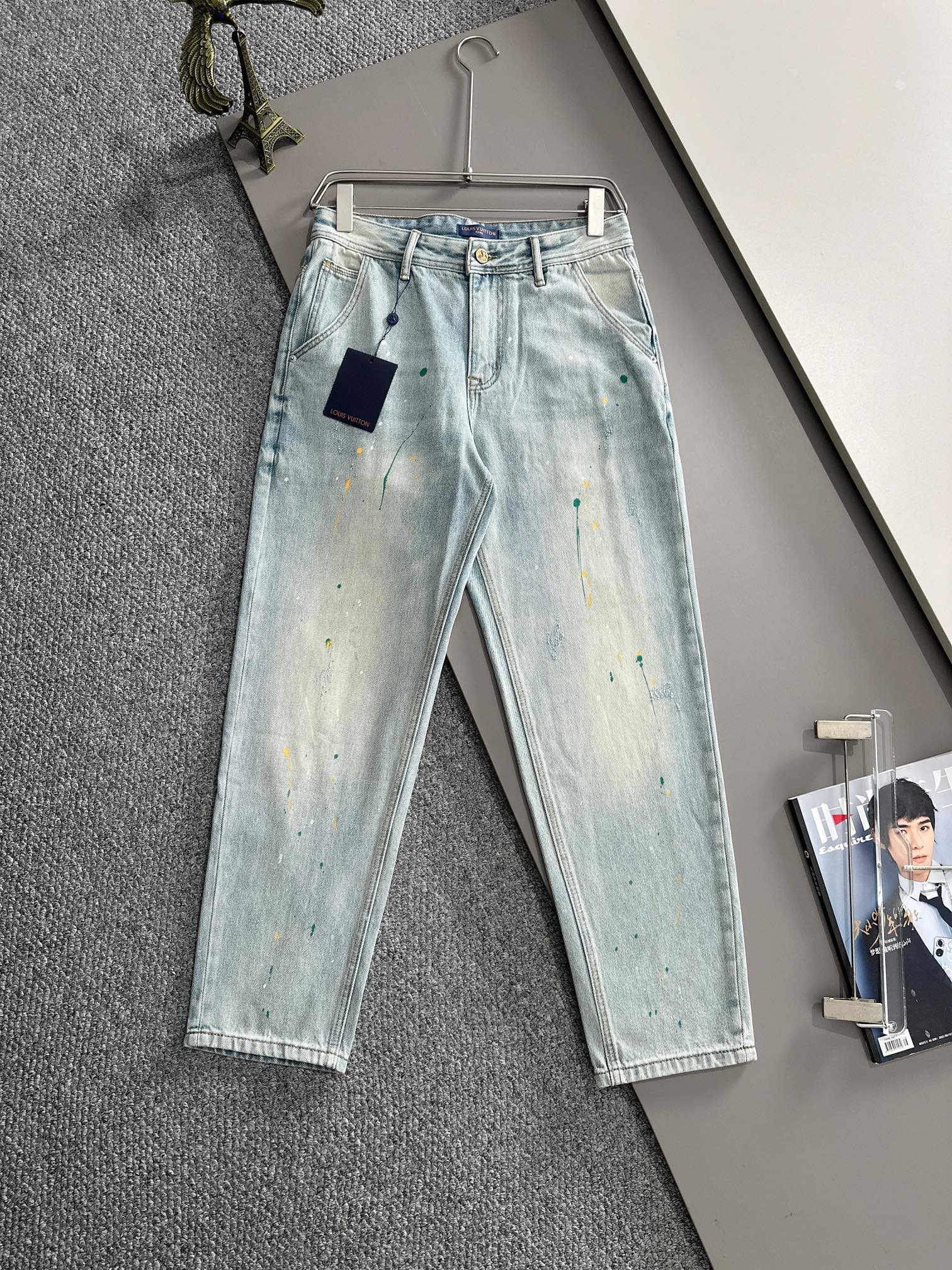 LV2025四季款经典牛仔裤直筒长裤,潮流中的潮流!众多潮流博主上身驾驭 水采用进口客供日本Denim平纹棉质牛仔面料梭织生产,三标齐全,柔软细腻舒适透气,色泽拥有现代时尚的沧桑感,上身百搭时尚!轻奢主义 日常通勤穿搭必备单品!