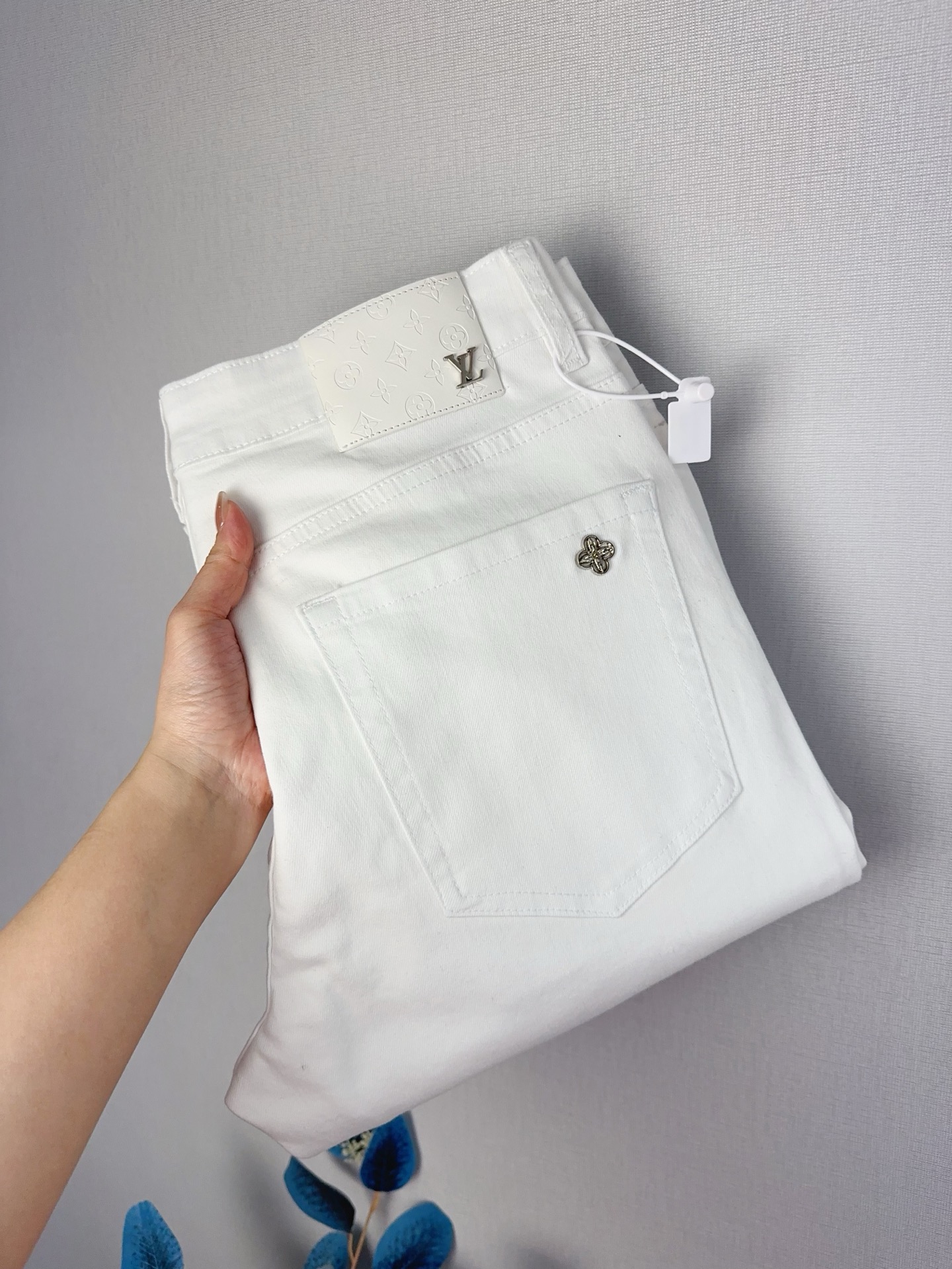 LV2025 高级薄款时装牛仔裤,精选弹力超柔软舒适纯棉面料,修身小直裤闭眼入剪裁修饰腿型百搭显身材,高级洗水工艺技术尽显裤子档次。!码数28——38。