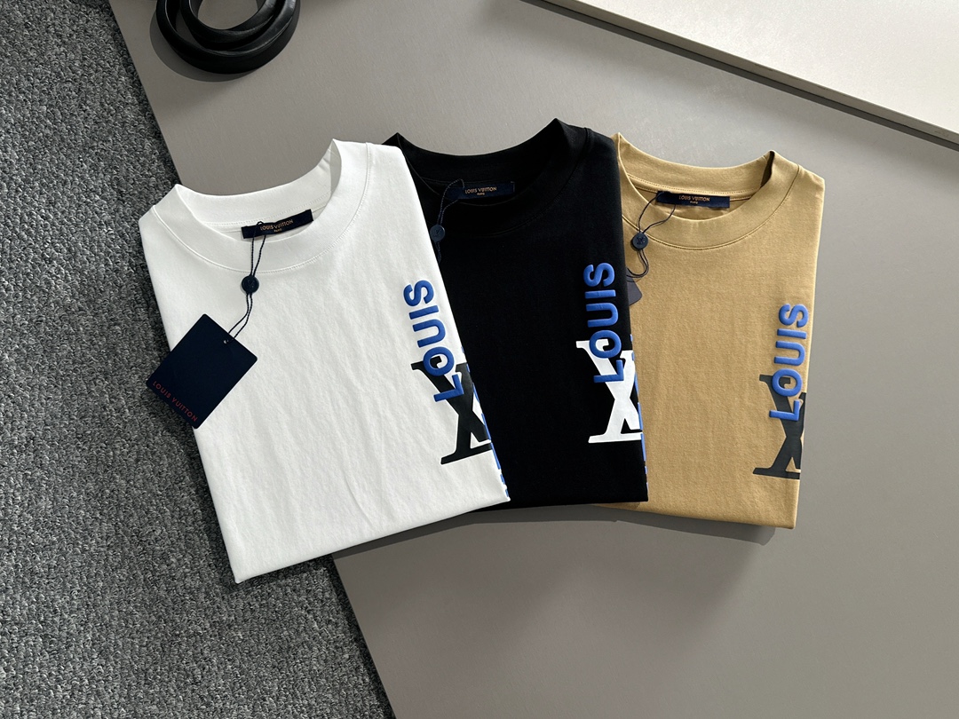 LV 2025ss春夏新款棉质圆领短袖T恤 胸前印花工艺 顶级丝光棉面料定制 标准版型 黑 白 卡其 三色 男女同款 码数:S M L XL XXL