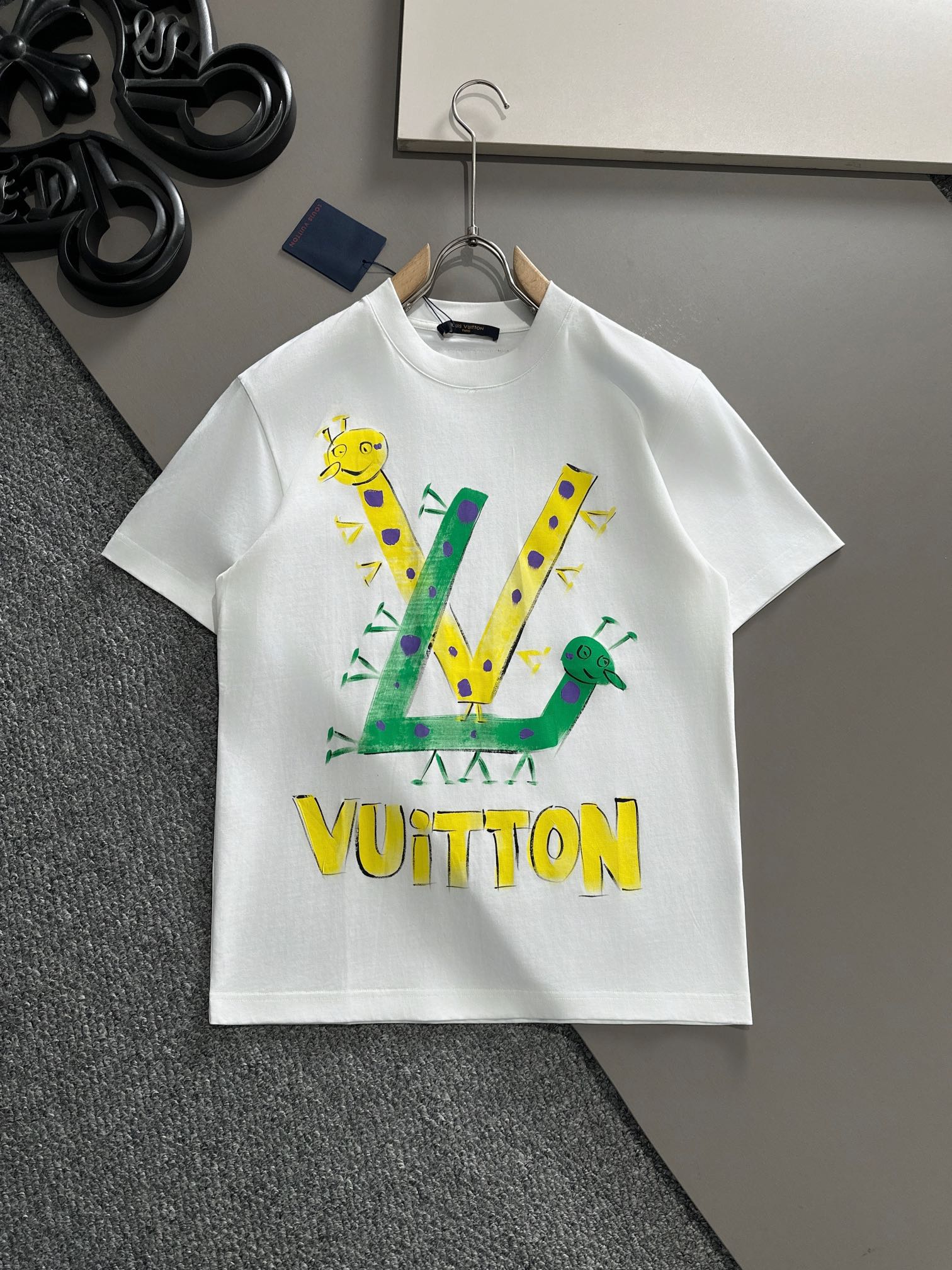 LV 2025ss春夏新款棉质圆领短袖T恤 胸前手绘涂鸦工艺 顶级丝光棉面料定制 标准版型