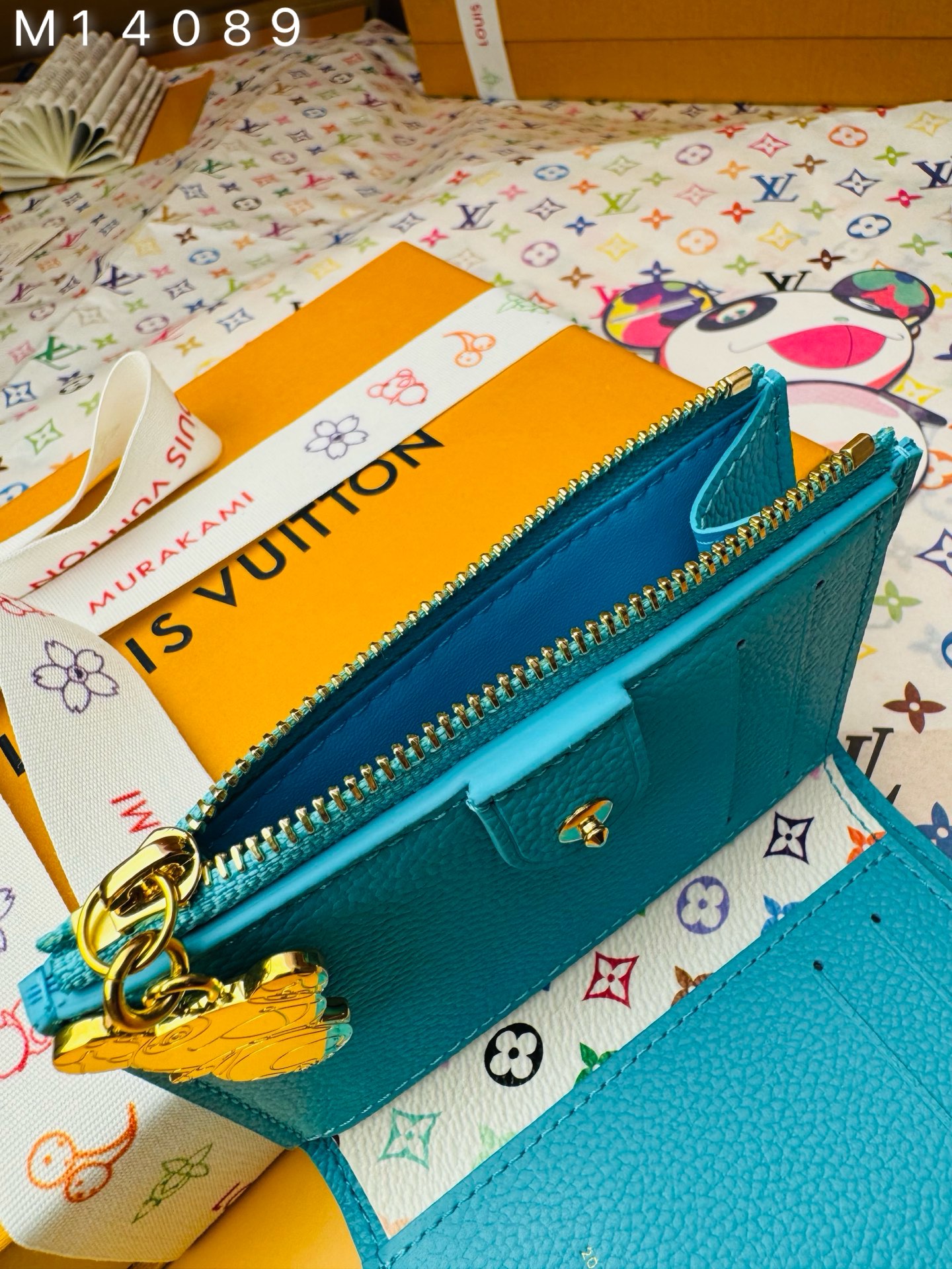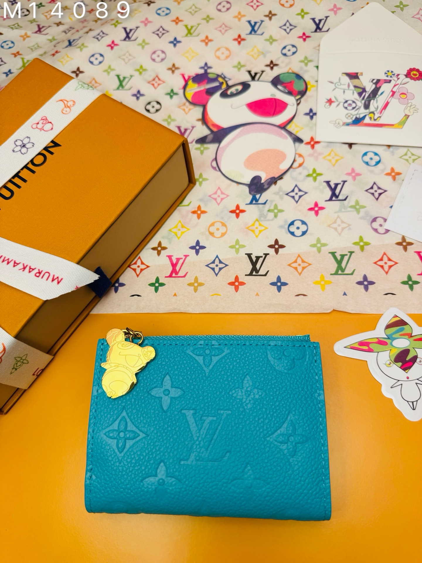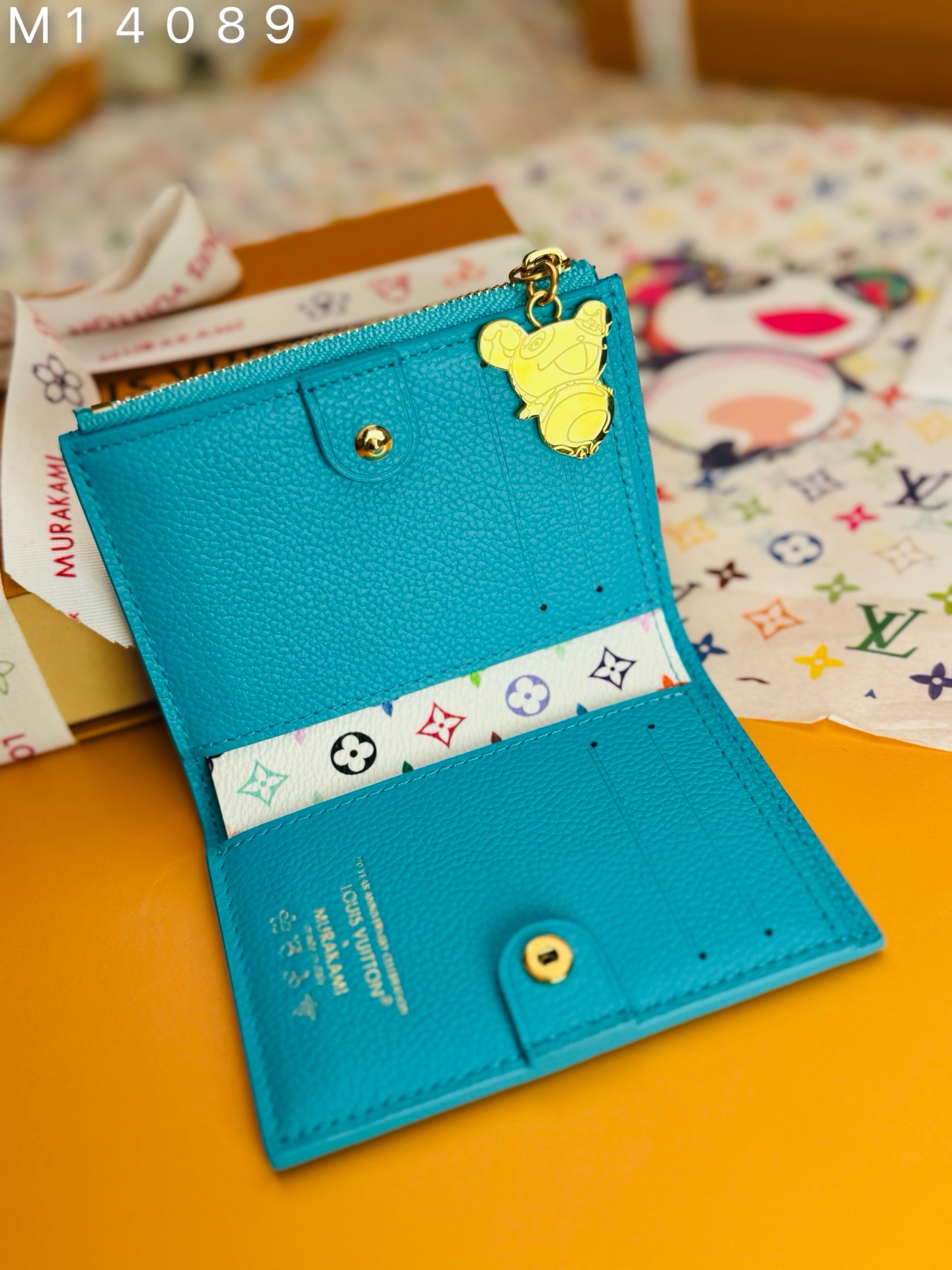 M14089《特級免稅》♻️[官方专版·一級材料·全鋼五金·163芯片·全套包裝]丽莎钱包是日常必需品,采用实用的紧凑设计,配有紧固的硬币口袋、纸币隔层和多个卡槽。它由路易威登优雅的Monogram Empreinte皮革制成,采用路易威登x村上隆系列中清新的季节性色调,内部还点缀着多彩的Monogram图案。金色熊猫形状的拉链头为拉链增添了一抹活力。9×11.5×1.5cm