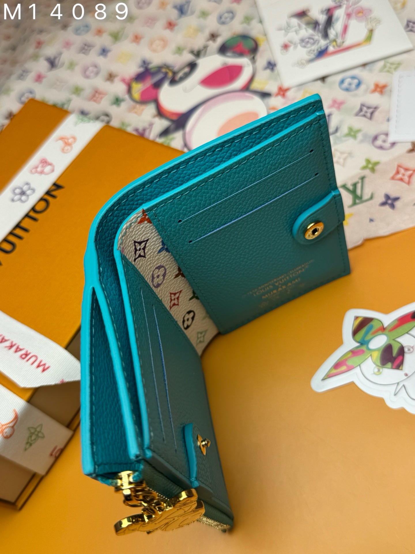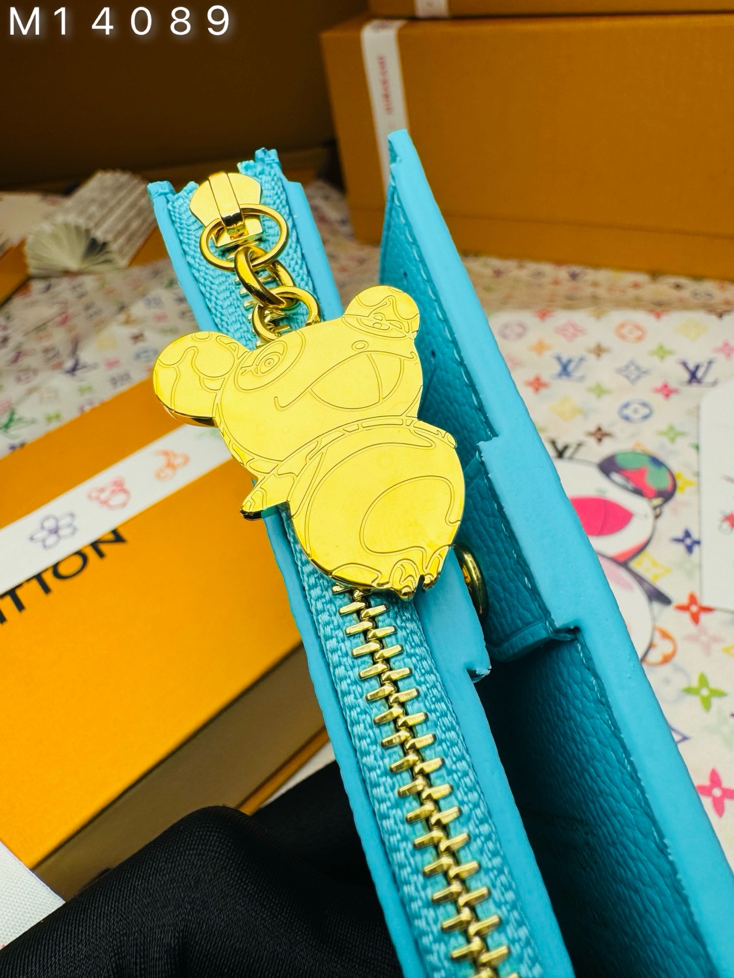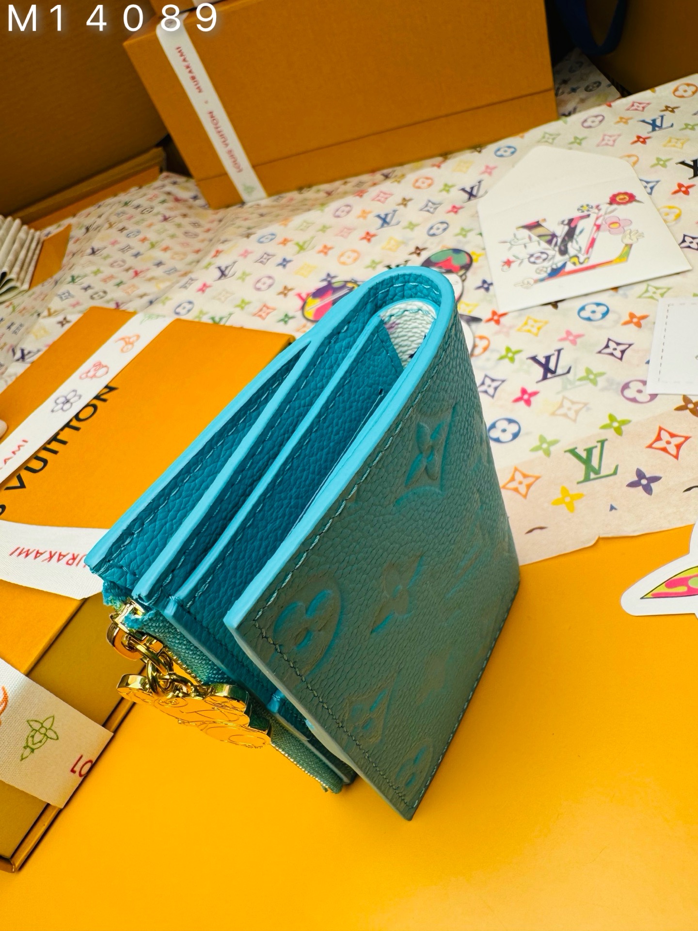 M14089《特級免稅》♻️[官方专版·一級材料·全鋼五金·163芯片·全套包裝]丽莎钱包是日常必需品,采用实用的紧凑设计,配有紧固的硬币口袋、纸币隔层和多个卡槽。它由路易威登优雅的Monogram Empreinte皮革制成,采用路易威登x村上隆系列中清新的季节性色调,内部还点缀着多彩的Monogram图案。金色熊猫形状的拉链头为拉链增添了一抹活力。9×11.5×1.5cm