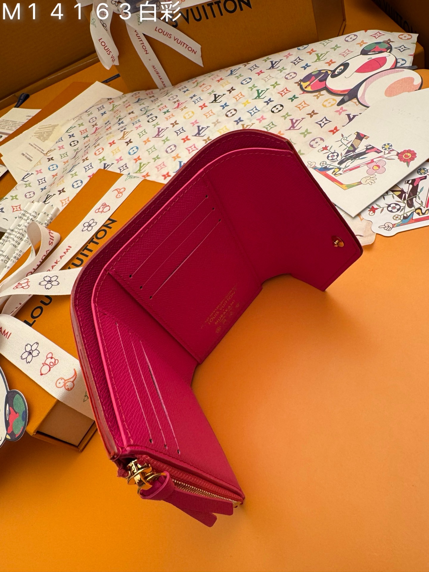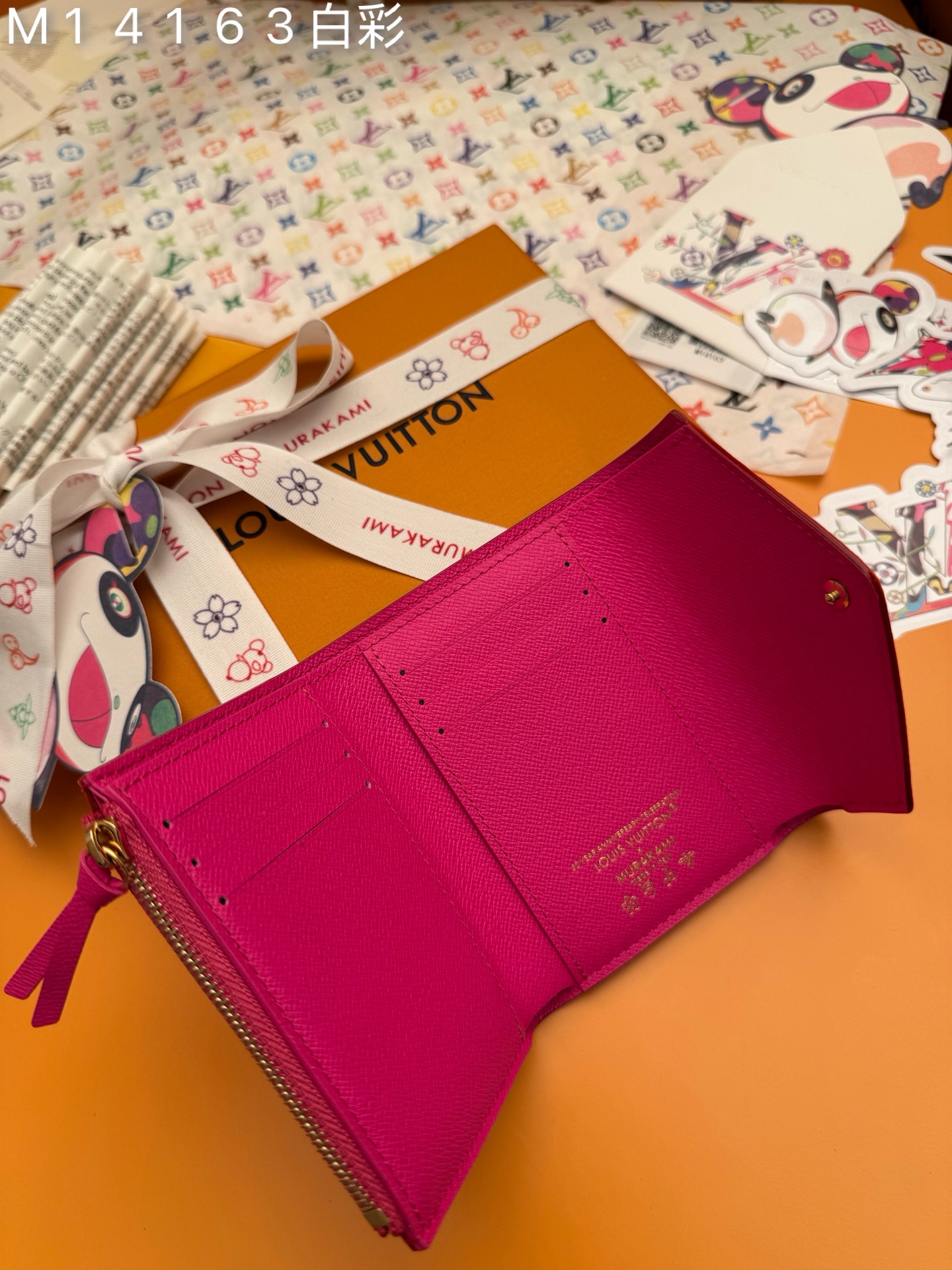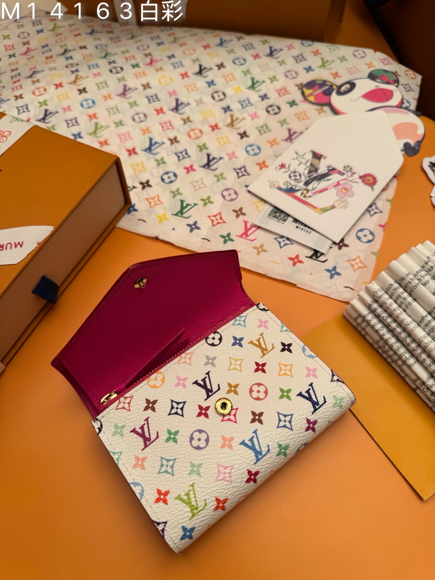 M14163白彩 《特級免稅》♻️ [官方专版·一級材料·全鋼五金·163芯片·全套包裝] 新品L Victorine 钱包,这款紧凑的Victorine钱包采用了路易威登与村上隆联名系列重新推出的充满活力的多色Monogram图案,用这位日本艺术家的招牌彩虹色焕新了品牌的标志性标志。它由涂布帆布制成,内衬精细的牛皮,配有银色金属硬件。一个拉链口袋可以存放硬币,而内部的多个隔层可以整理钞票和卡片。12×9.5×2.5cm