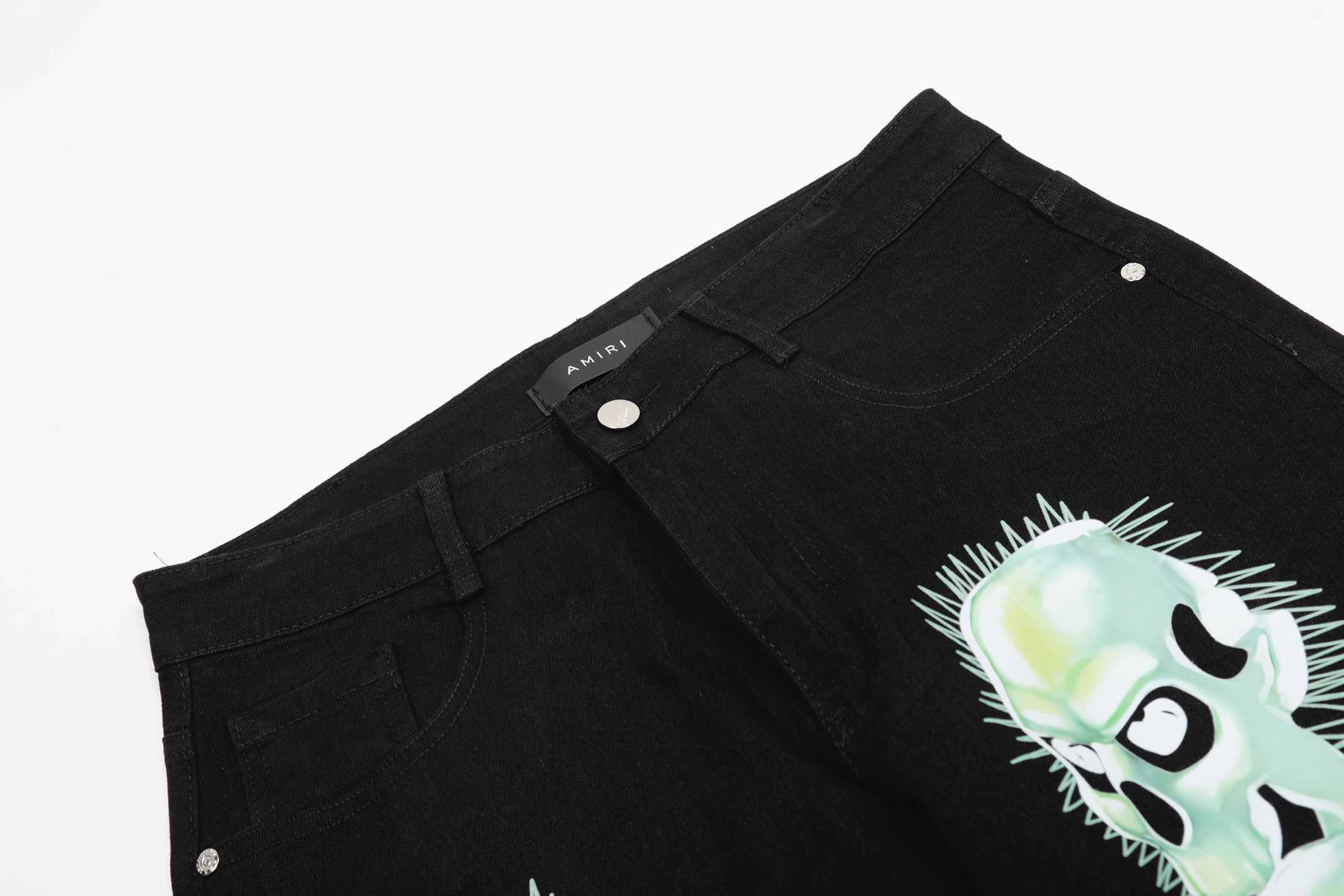 #M23 Amiri满印骷髅☠️印花小脚牛仔裤修身小脚牛仔裤