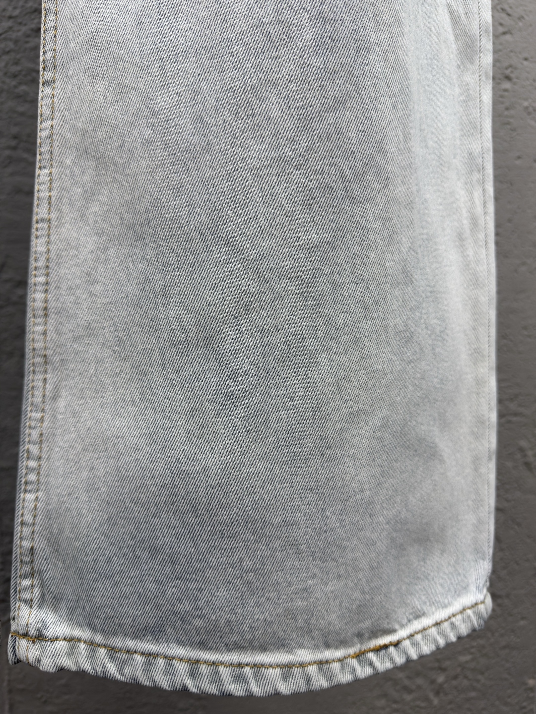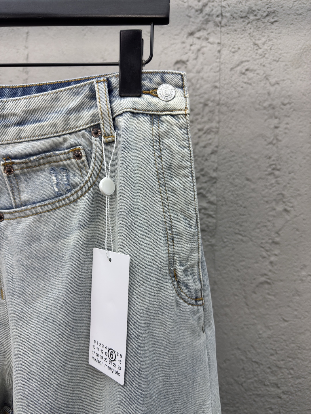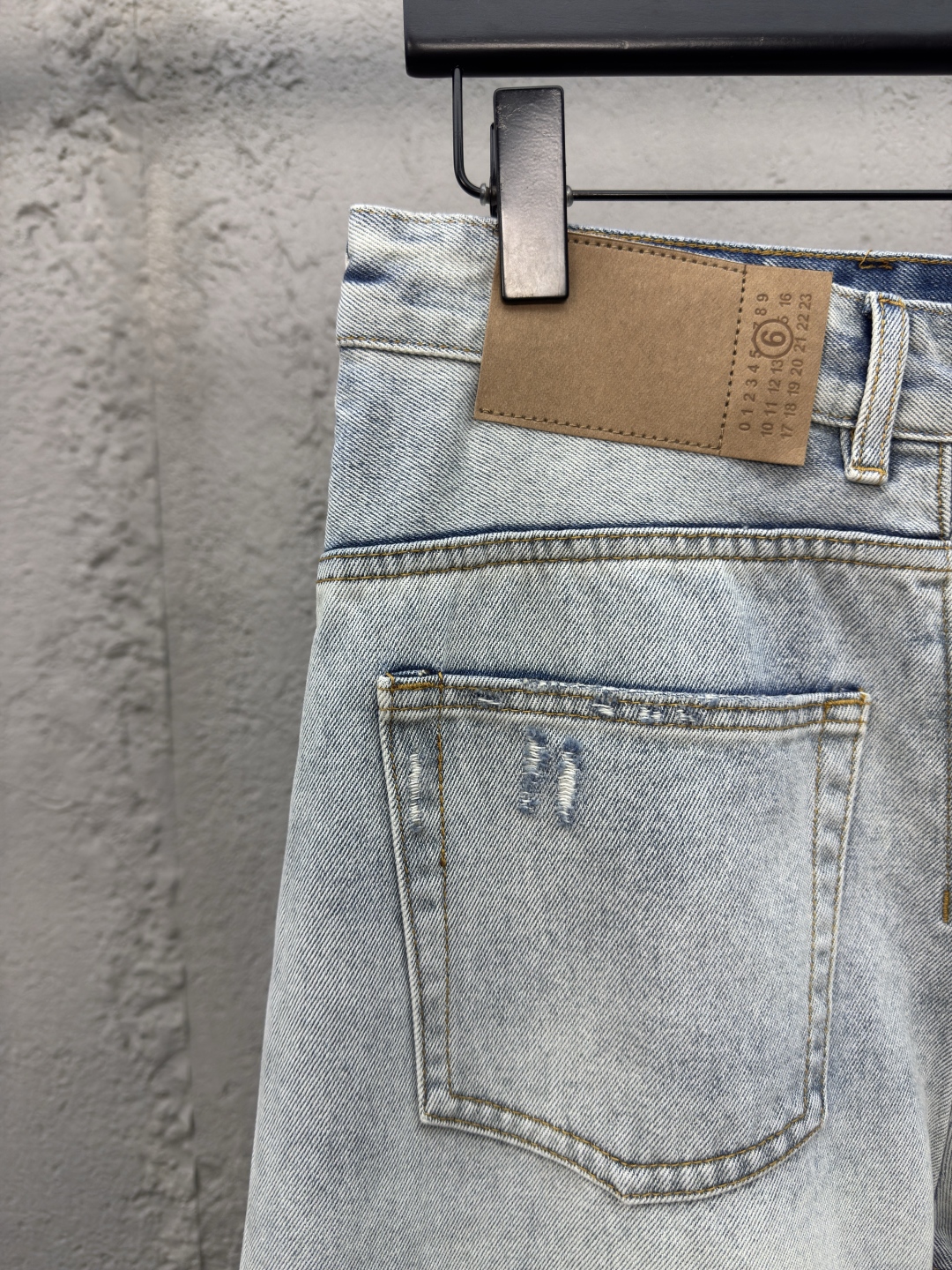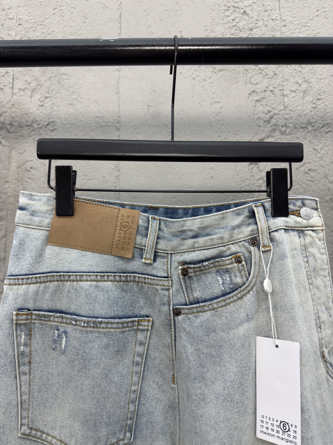 工艺说明:定制纹韵牛仔粗斜棉缎 擦压皱猫须技术和枪画猫须技术结合 优先在特定区域进行手工擦制 以达到自然的皱纹效果 再用特定的工具绘制出猫须形状的纹理 破洞处采用烂边吊烂技术 通过物理磨损在边缘部分进行摩擦来实现自然烂边效果 通过高温蒸汽和磨砂纸的结合 去除纤维毛羽和色差 使牛仔裤呈现出独特的破洞和磨损效果,整体走线平直细腻,面料舒适柔软,颜色一致无色差 能与同款搭配营造时尚造型,驾驭各种场合,定制辅料,三标齐全,男女同款!