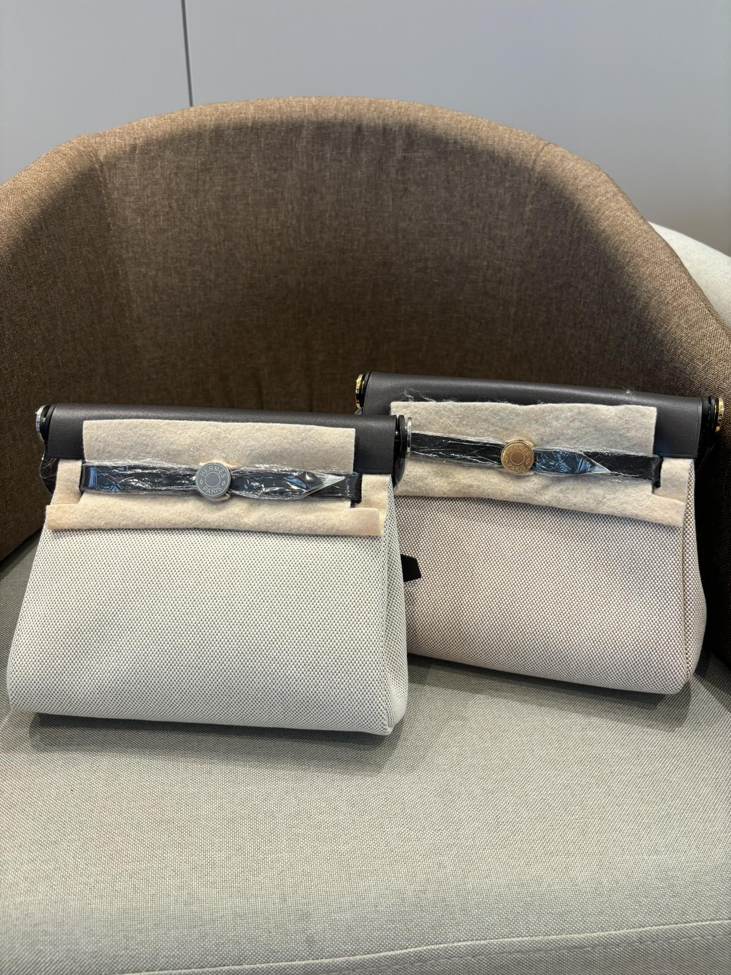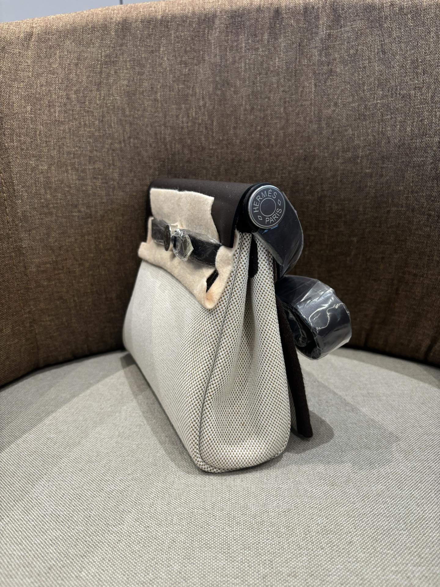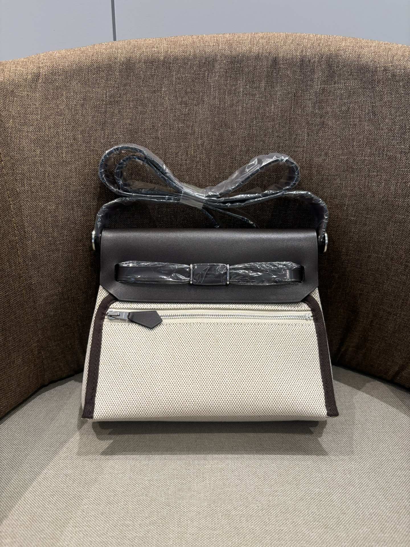 Mini herbag 断货王 2025黑马 进口帆布 进口树膏皮 全钢五金 随手拍摄 米白拼乌木色