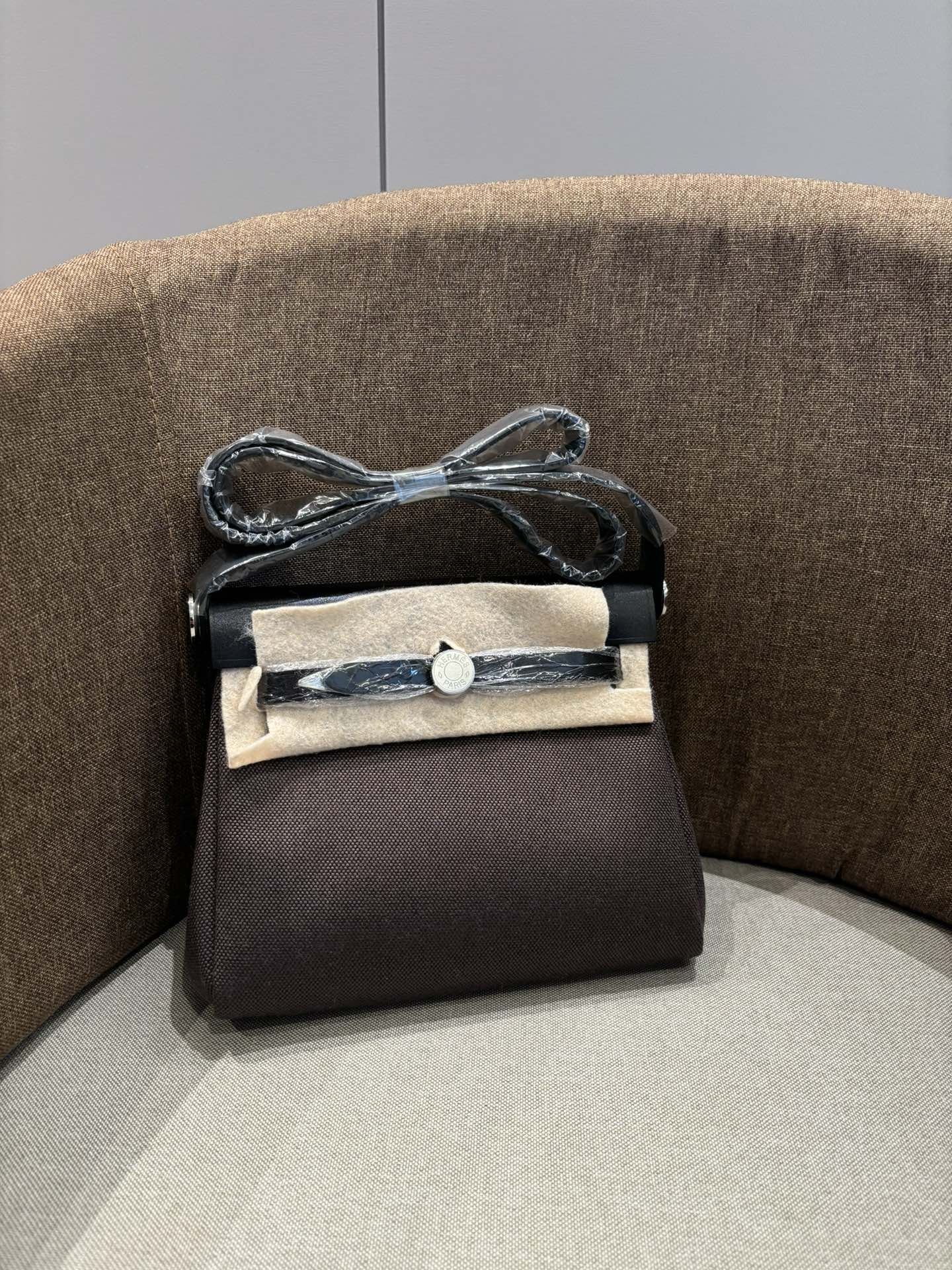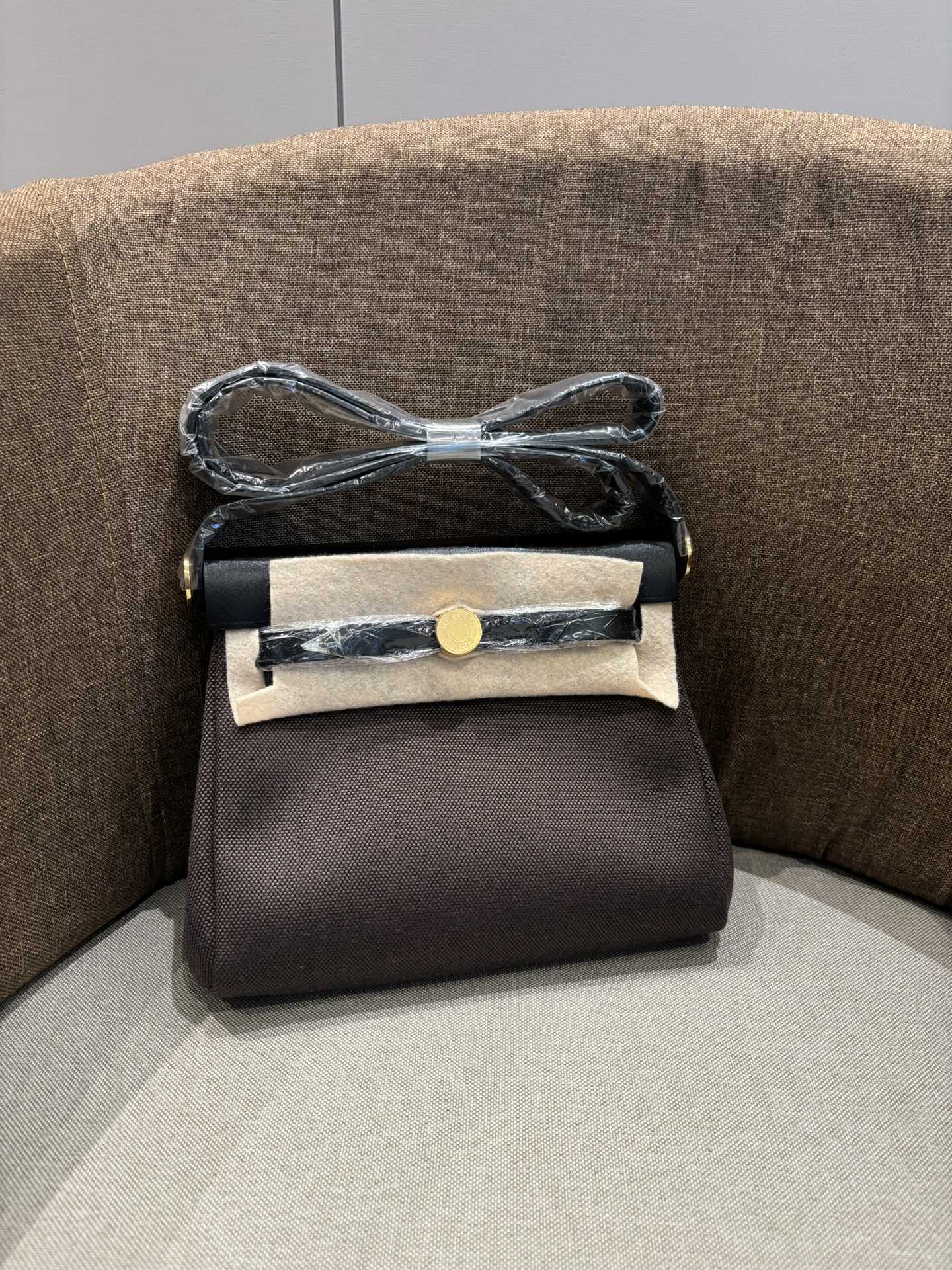 Mini herbag 断货王 2025黑马 进口帆布 进口树膏皮 全钢五金 随手拍摄 乌木色拼黑色
