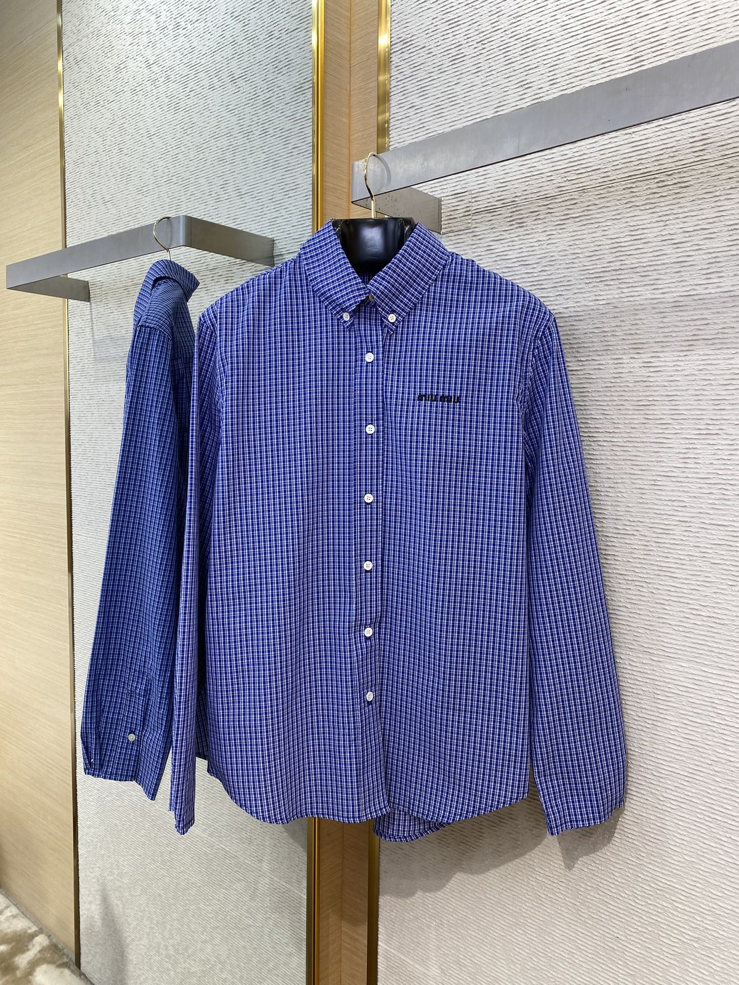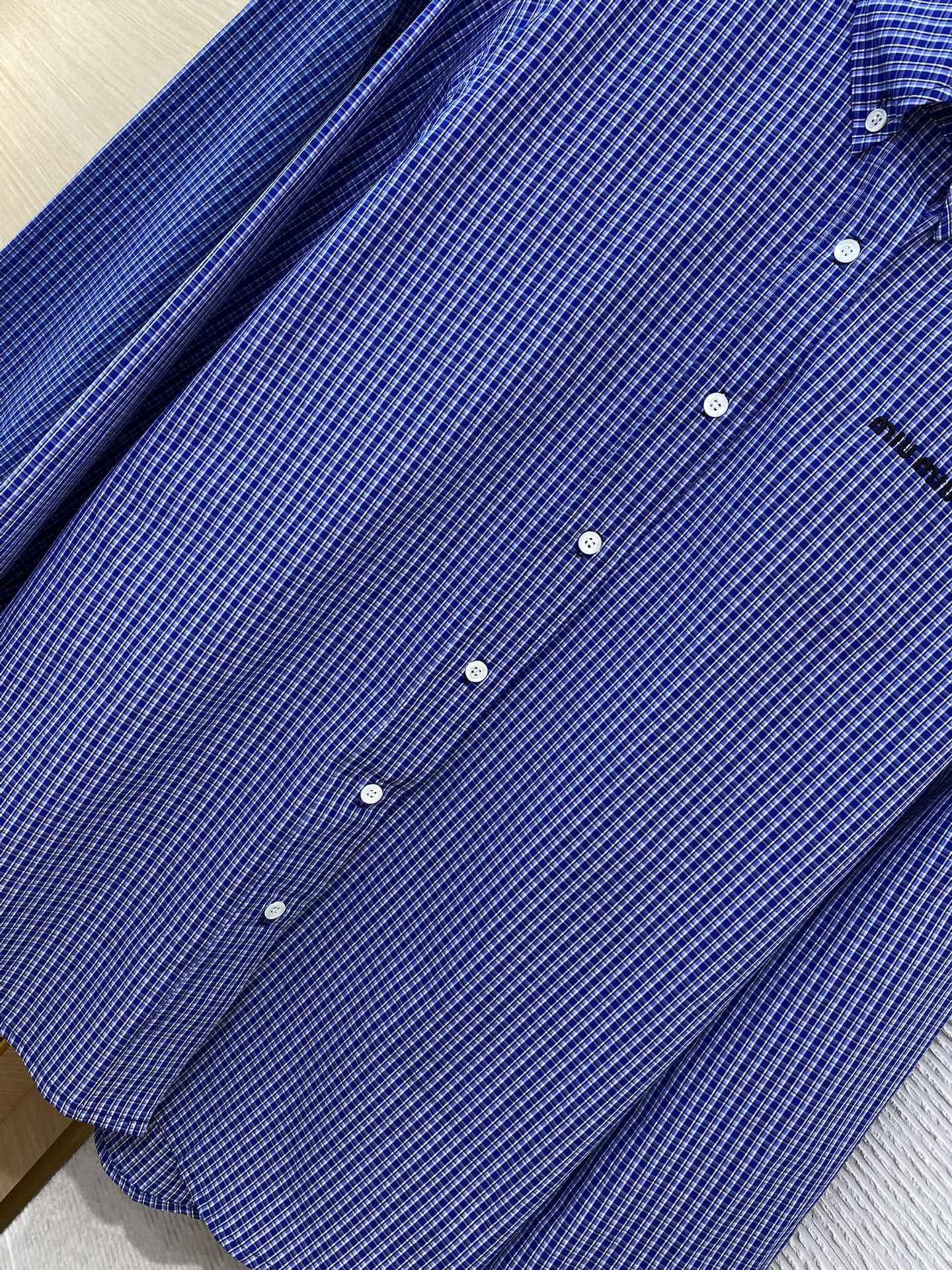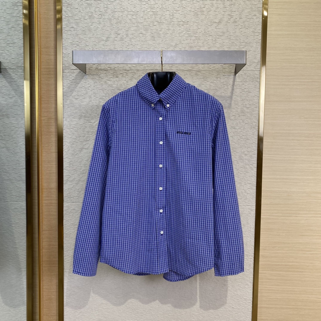 MIUMIU缪缪徽标格纹长袖衬衫