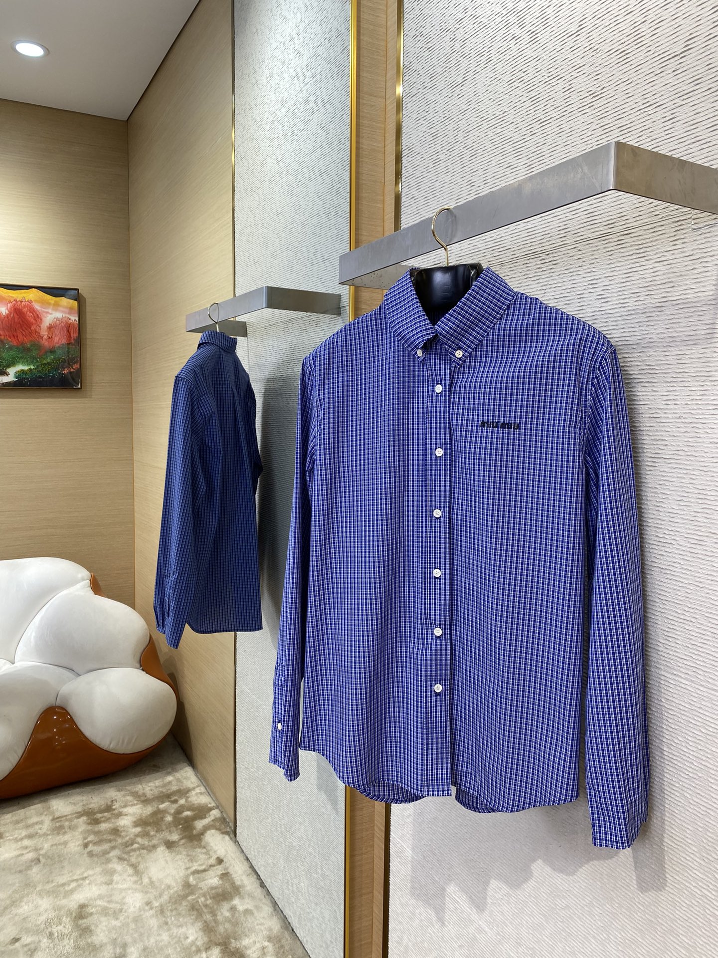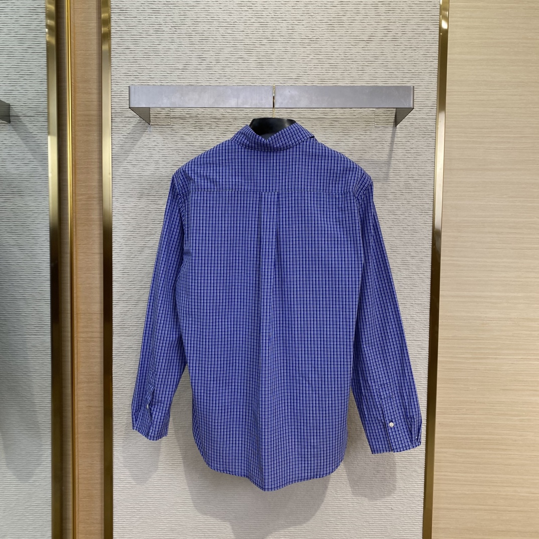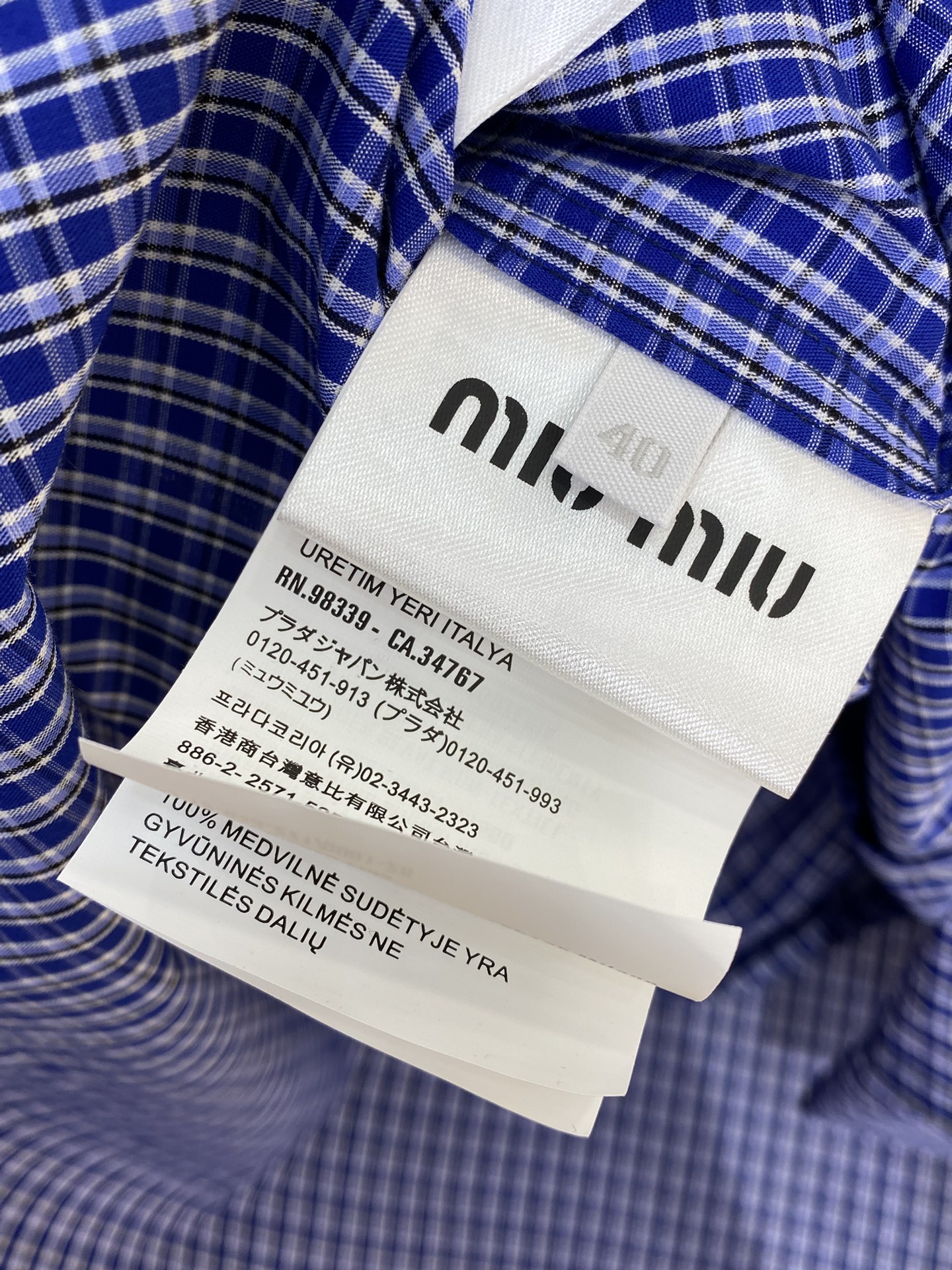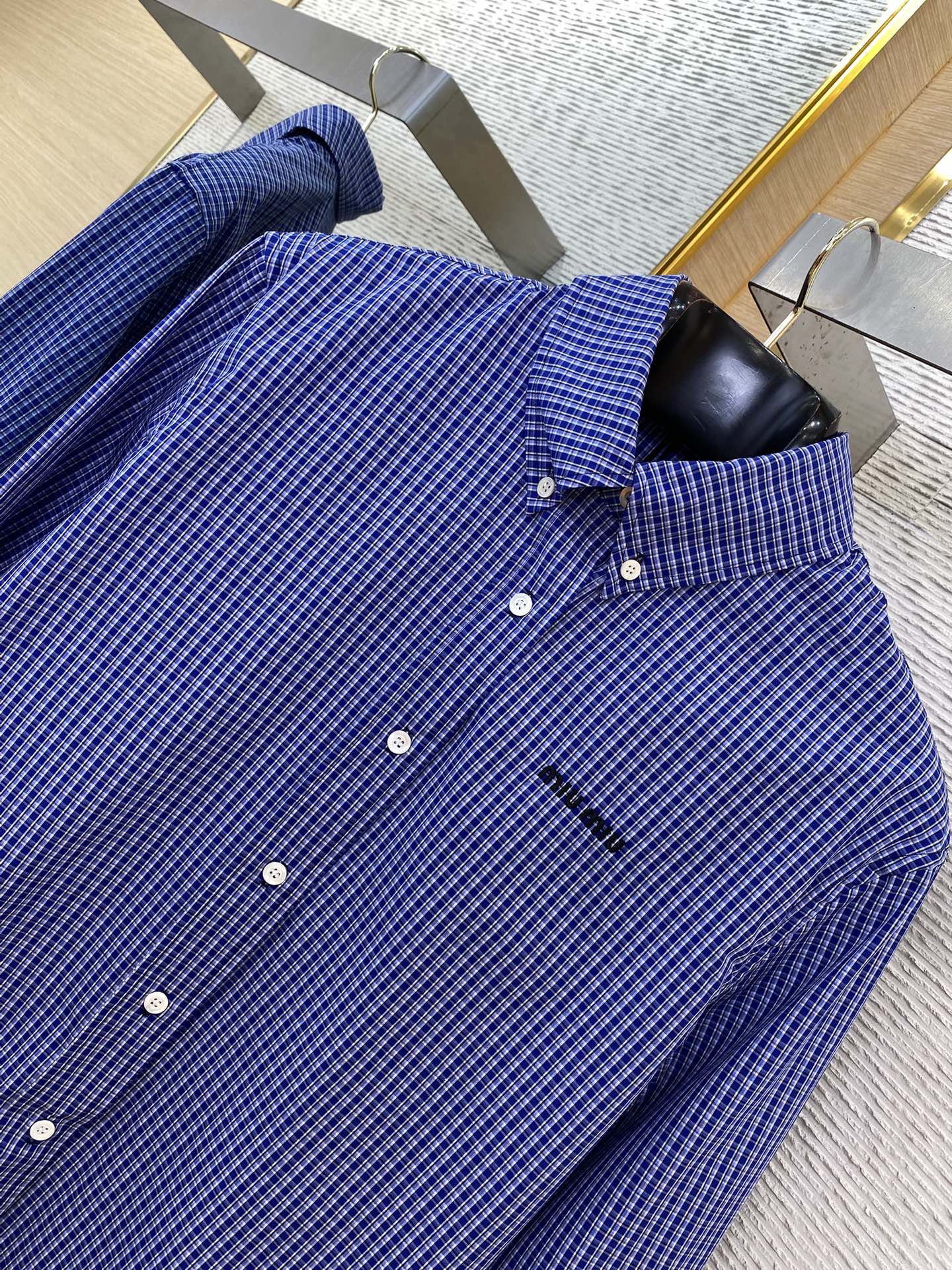 MIUMIU缪缪徽标格纹长袖衬衫
