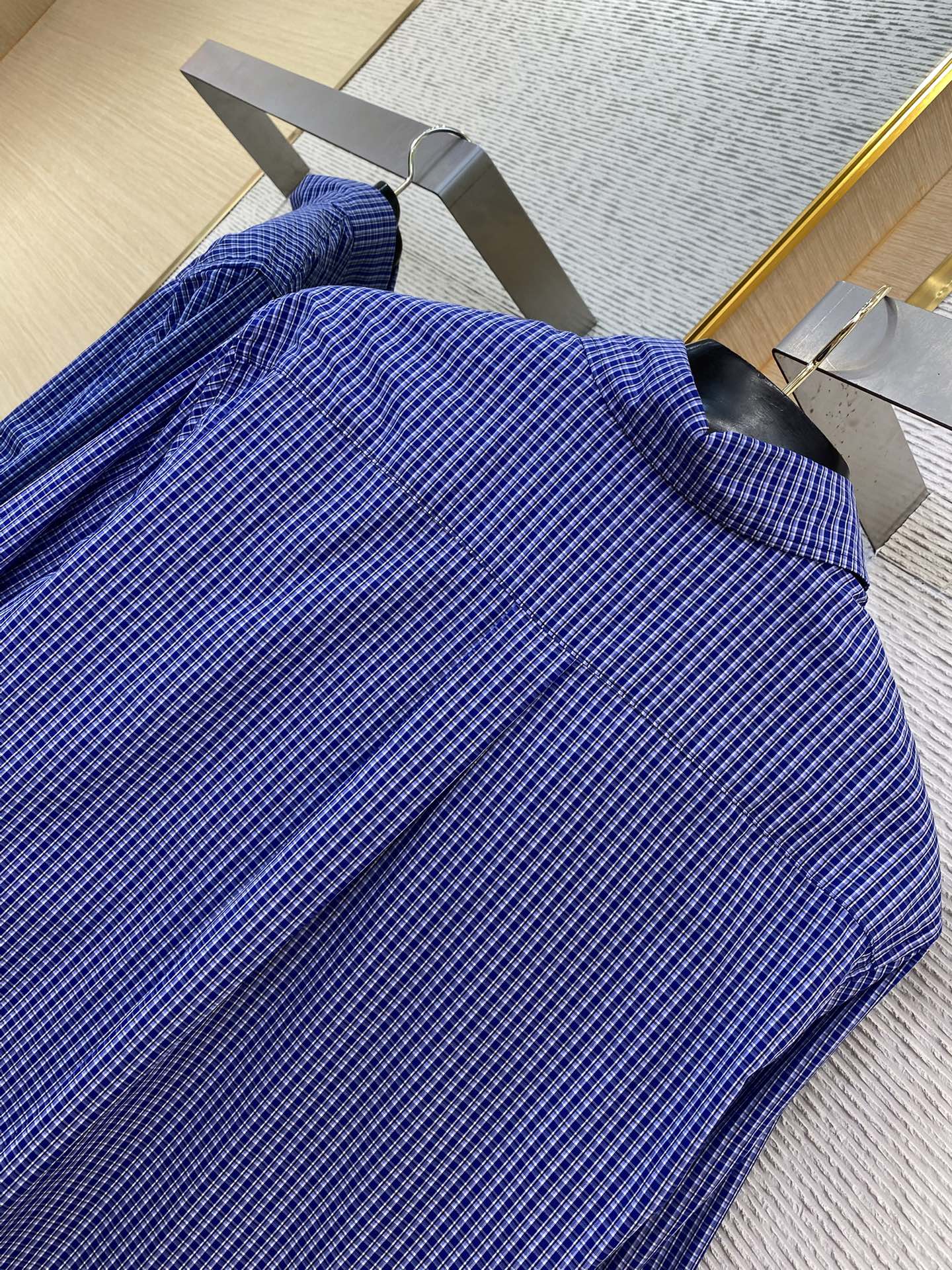 YB购入打版,采用定制 支条纹棉质面料,面料手感柔软顺滑,触摸起来非常舒适,具有较高的品质感。采用了格纹的图案,带来了独特的视觉效果,也与彰显的简约风格相呼应,饰以品牌刺绣徽标,增添了标志性元素。采用进口裁剪设备,利用红外线光线在面料表面进行对格裁剪。其工艺精准度高、图案裁剪精、灵活性强且费工费时。区别市场版本,能与多类型服饰搭配营造时尚造型,定制辅料,三标齐全,男女同款!